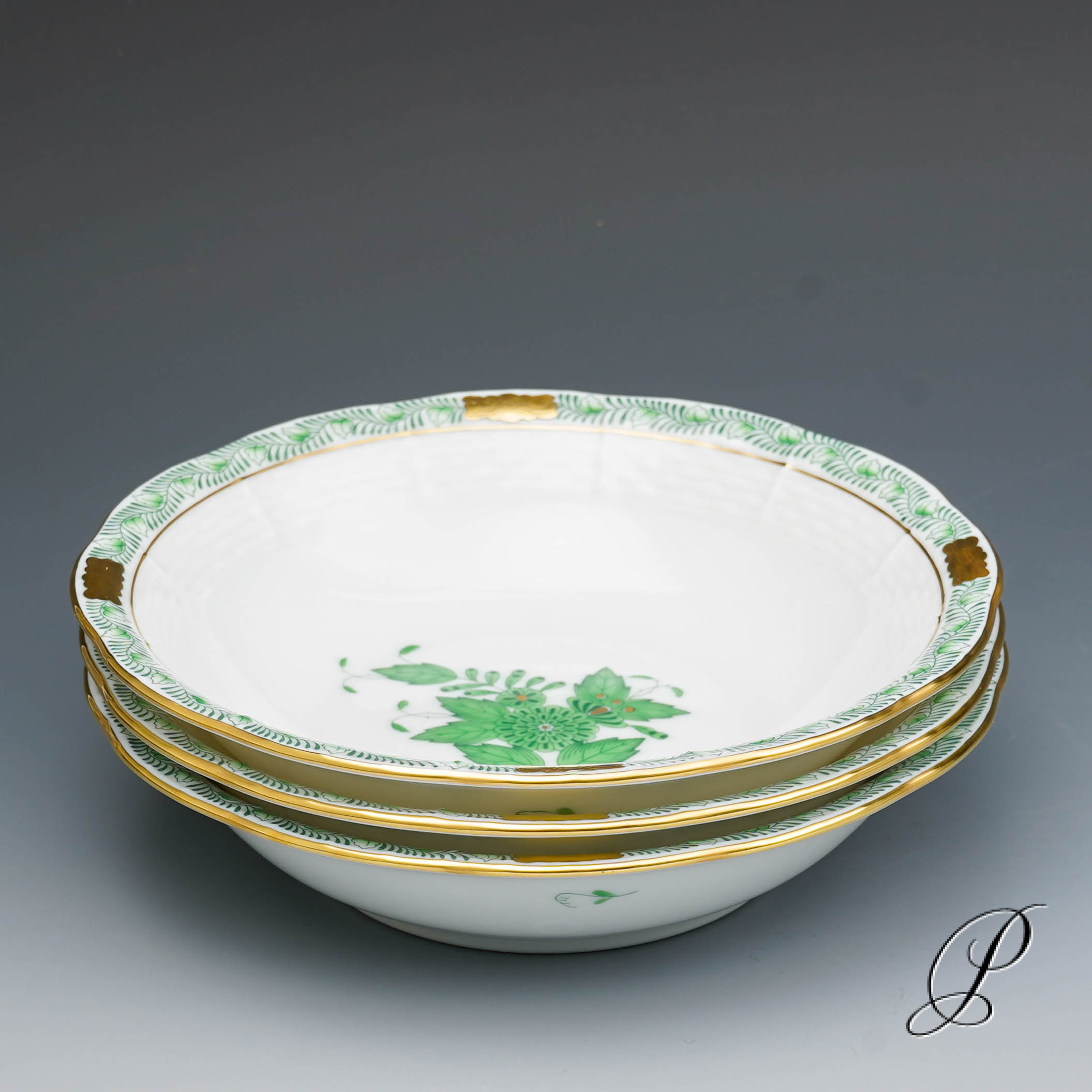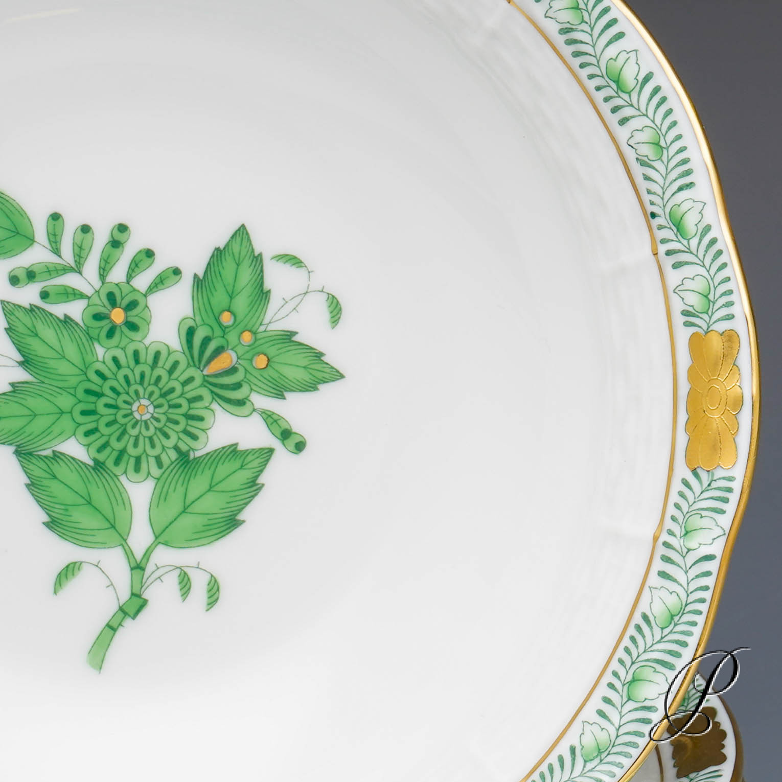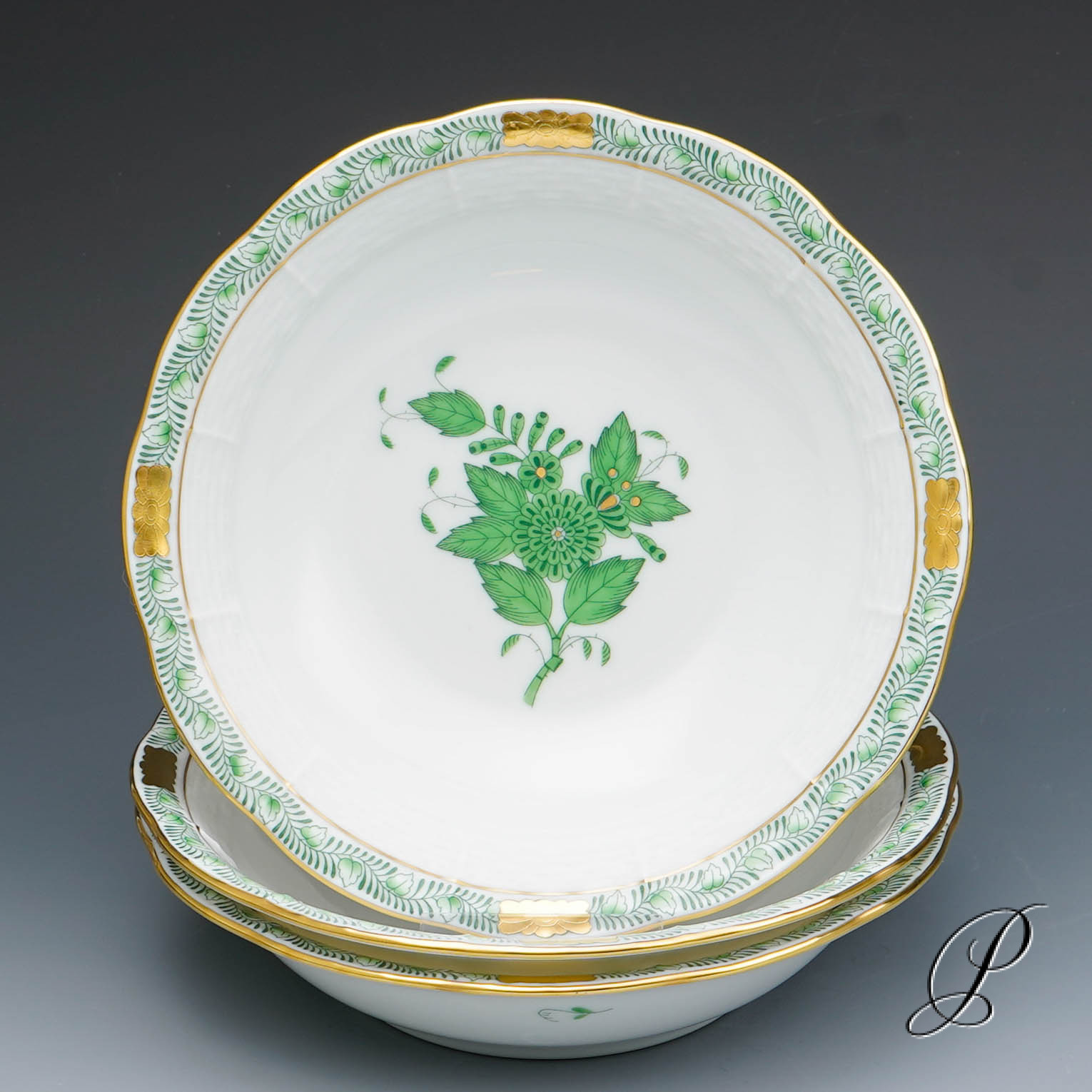 Das Dekor Apponyi gibt es in verschiedenen Farbvarianten. Der Name verbindet sich mit dem Grafen Albert Apponyi, der dieses Motiv in der Herend Manufaktur bestellte. Das Dekor wurde in Anlehnung an das fernöstliche Motiv „Indischer Blumenkorb“ entworfen. Eine stilisierte Pfingstrose in Konturmalerei welche von 6 Streumotiven und einer Girlande aus stilisierten Blättern umgeben ist.