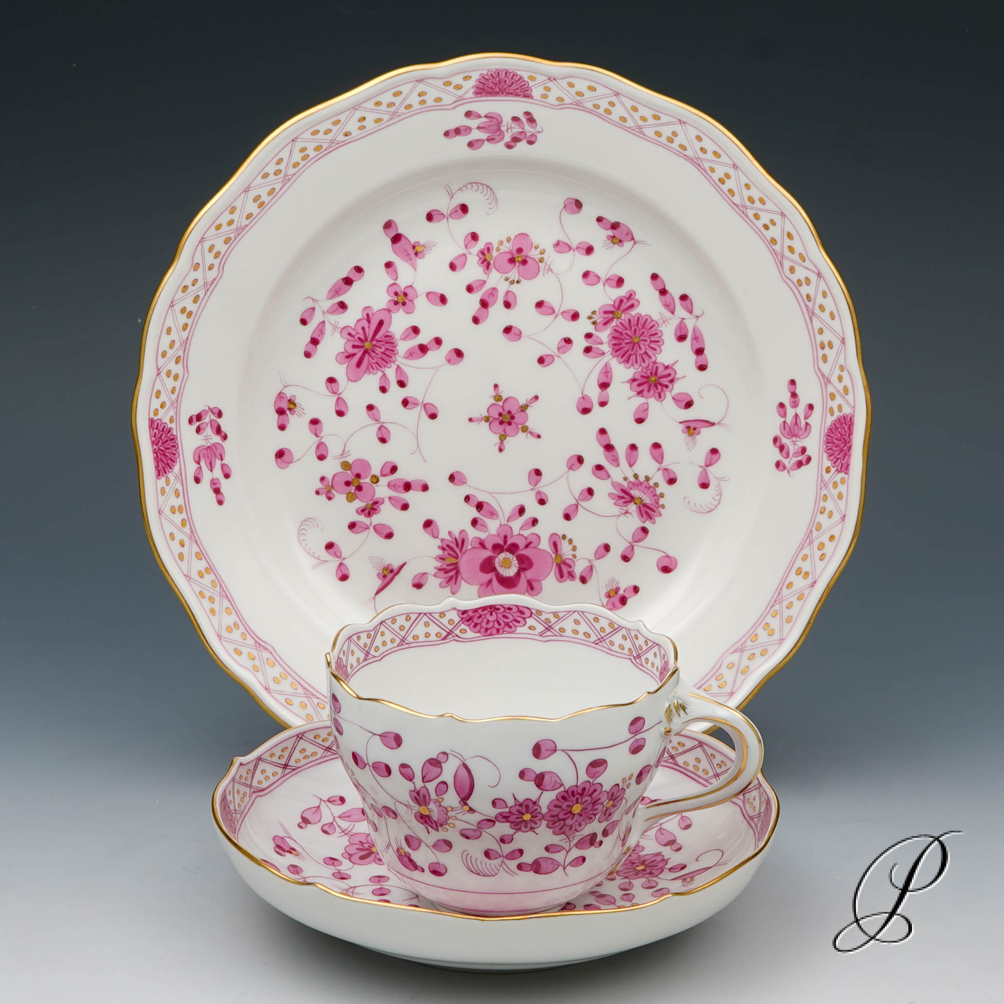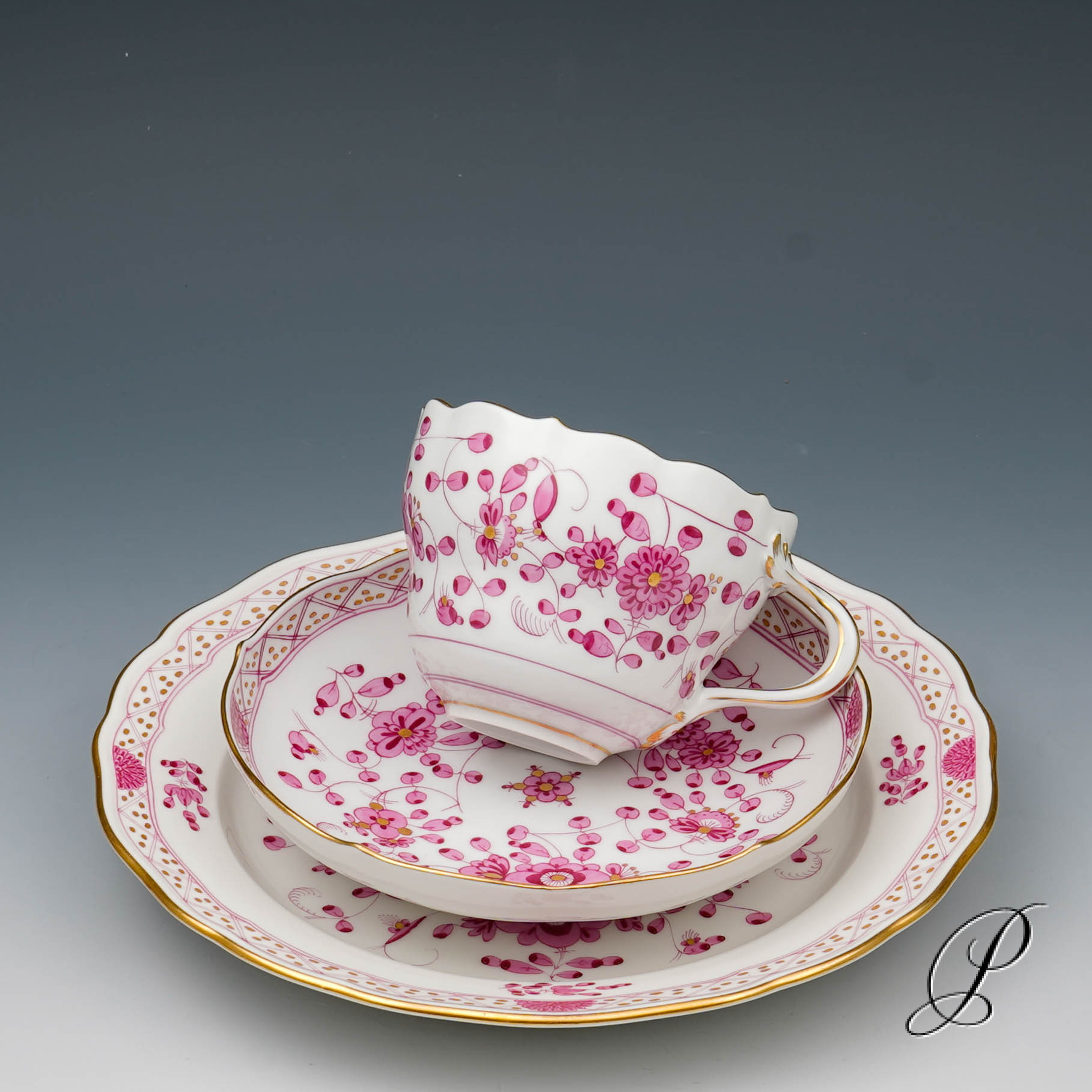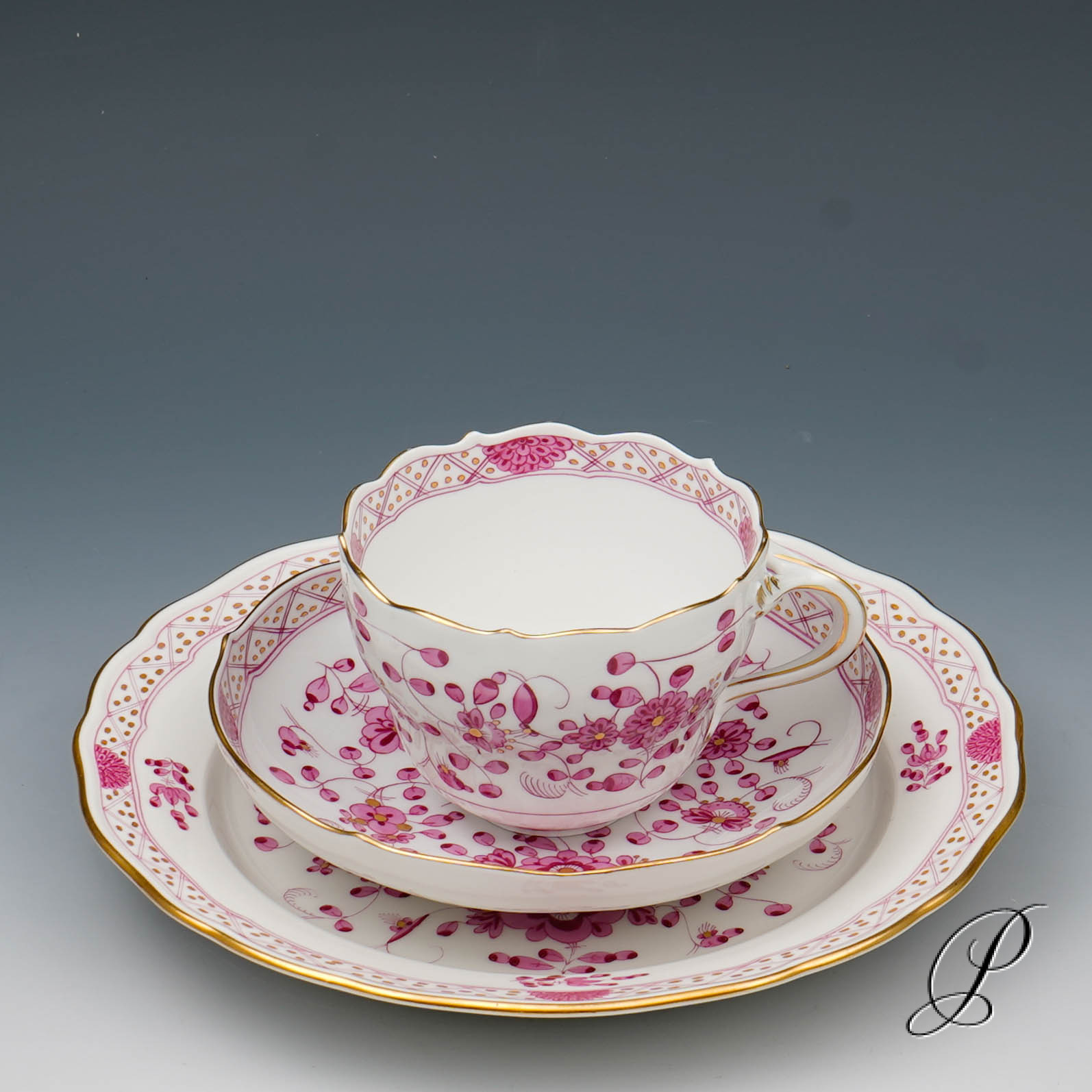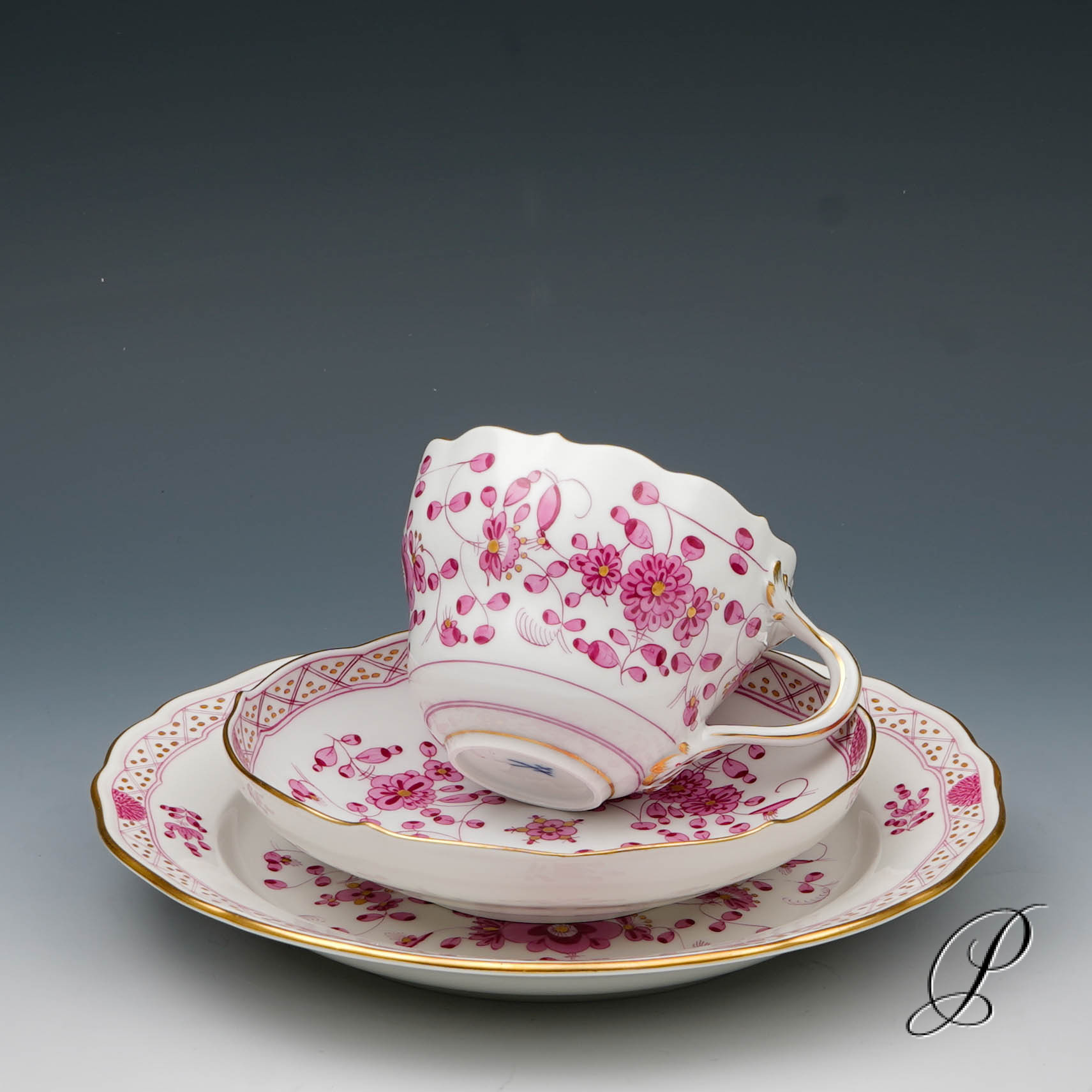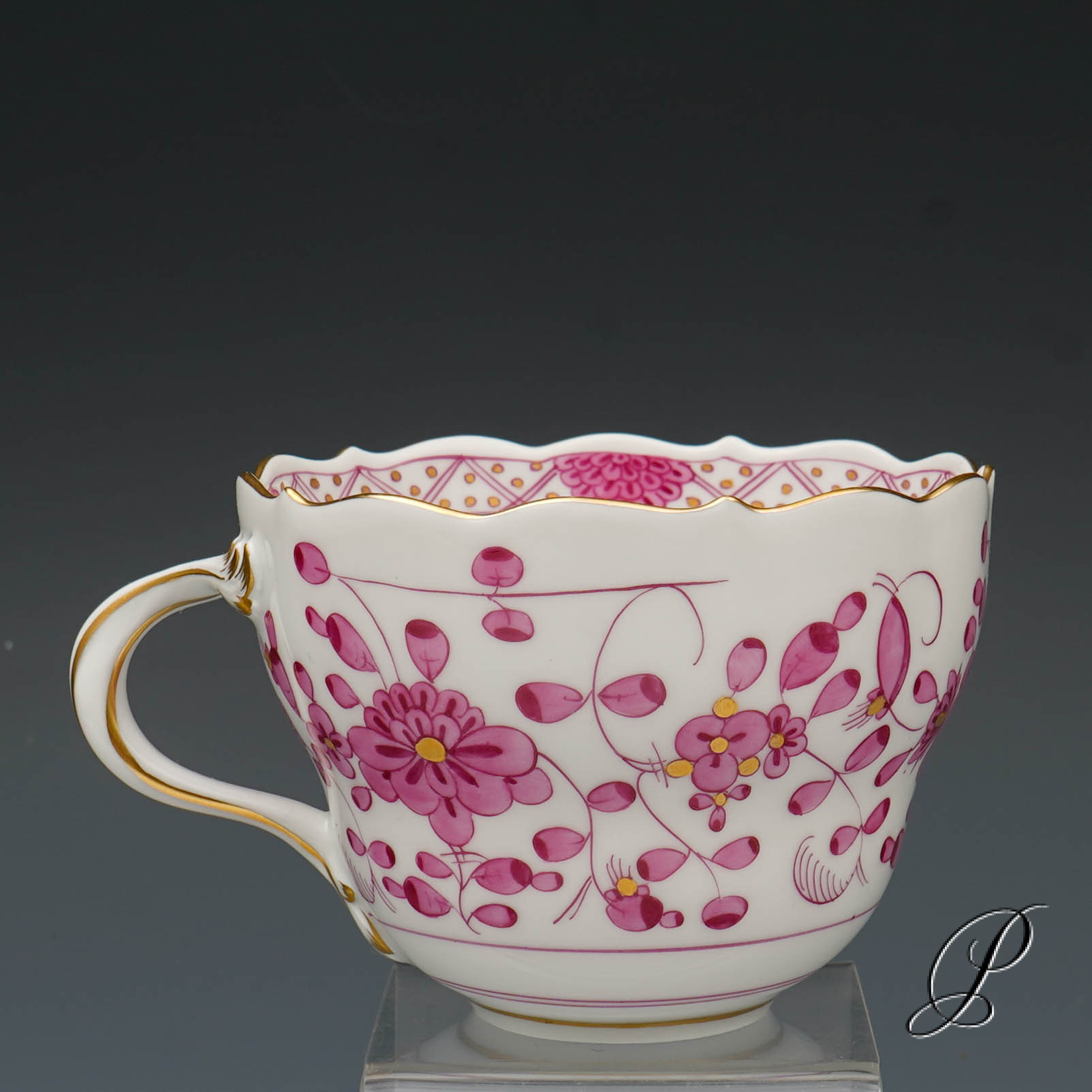 Entdecken Sie ein exquisites Kaffeegedeck von Meissen, handgefertigt und meisterhaft handbemalt im traditionellen Dekor „Reiche Indische Malerei purpur“.