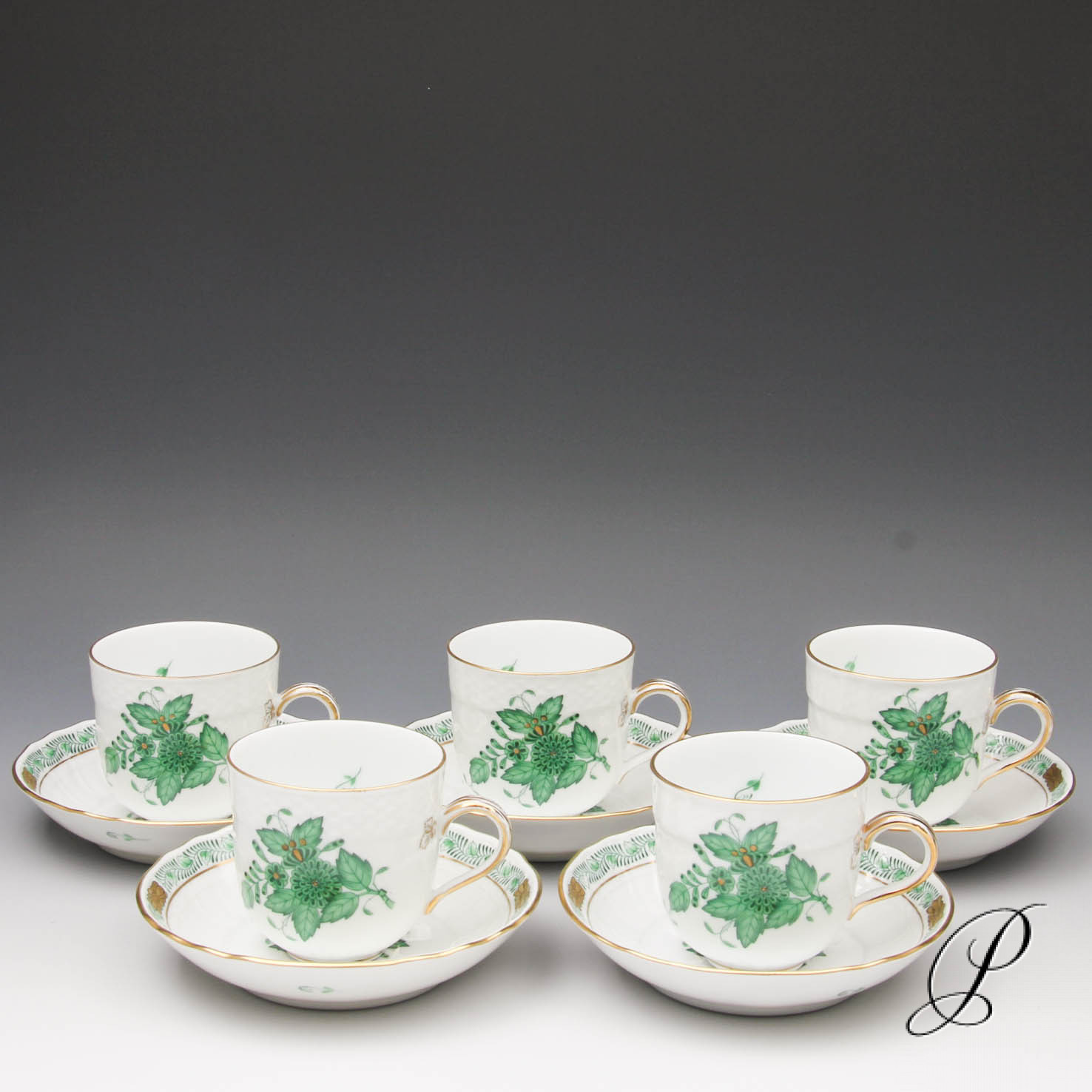 Angeboten werden 5 Mokkagedecke aus Herend Porzellan.