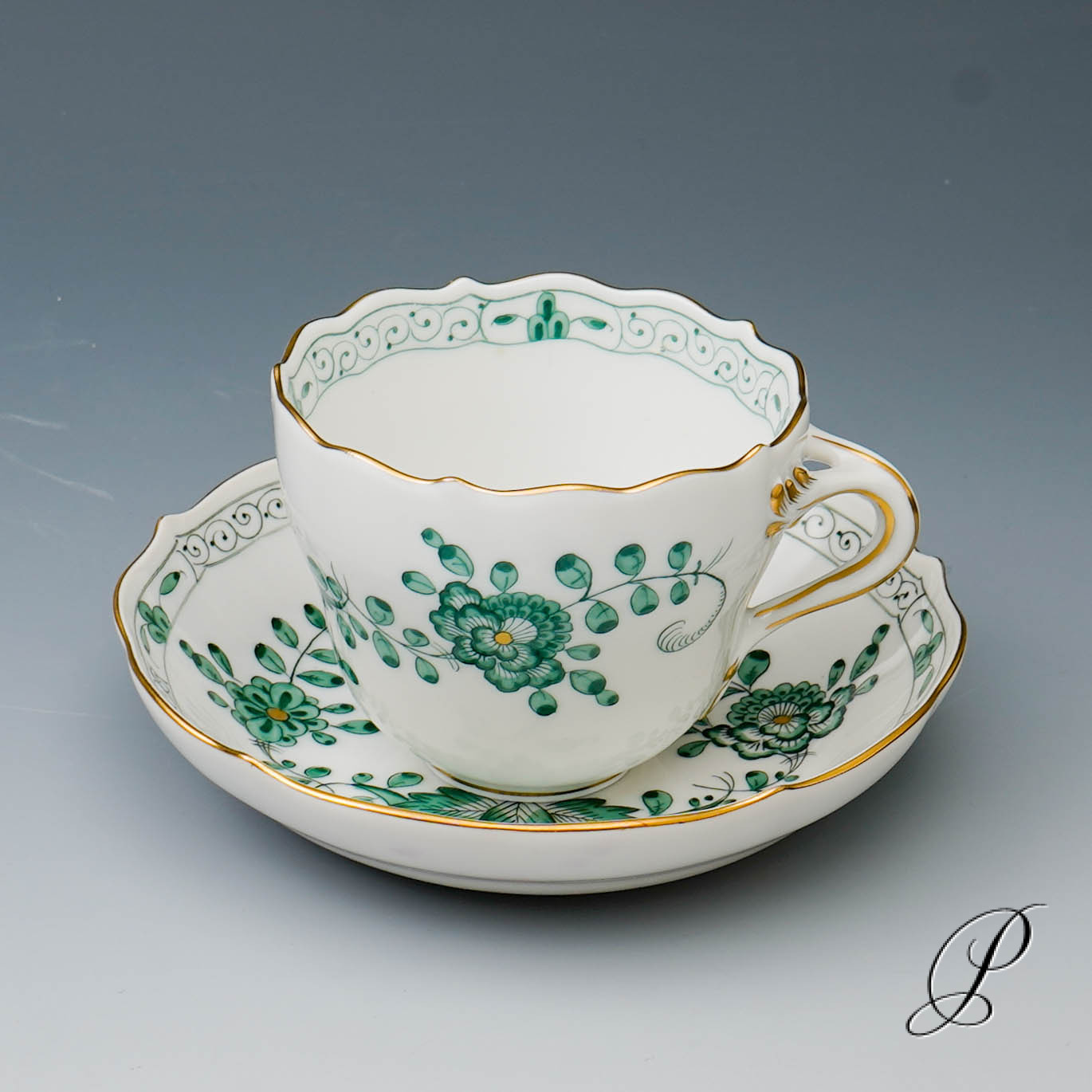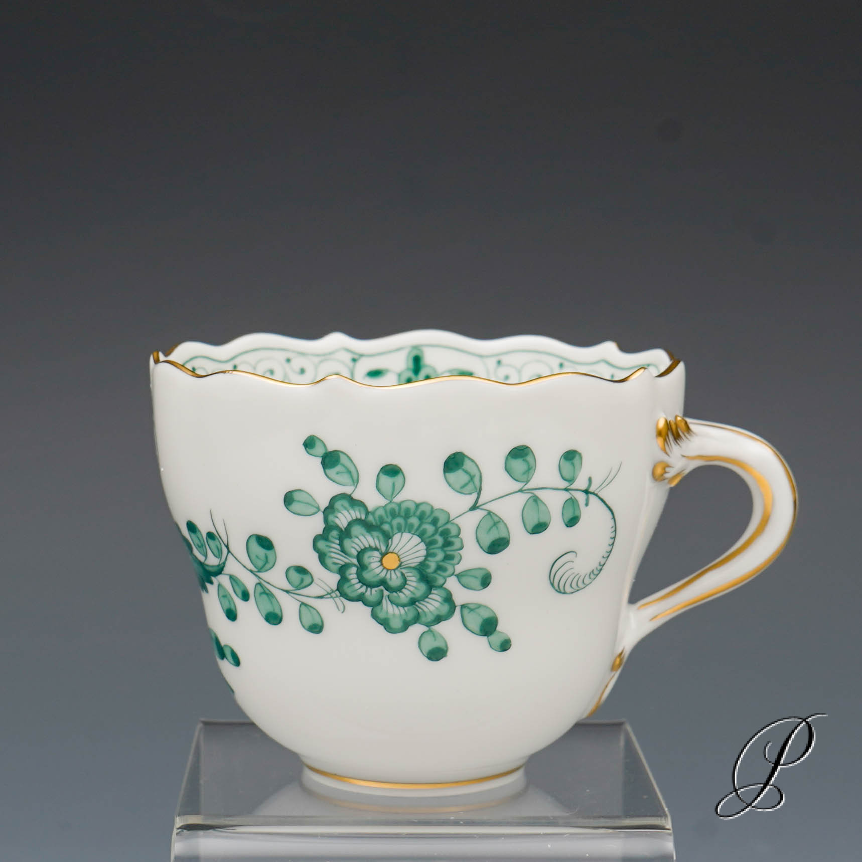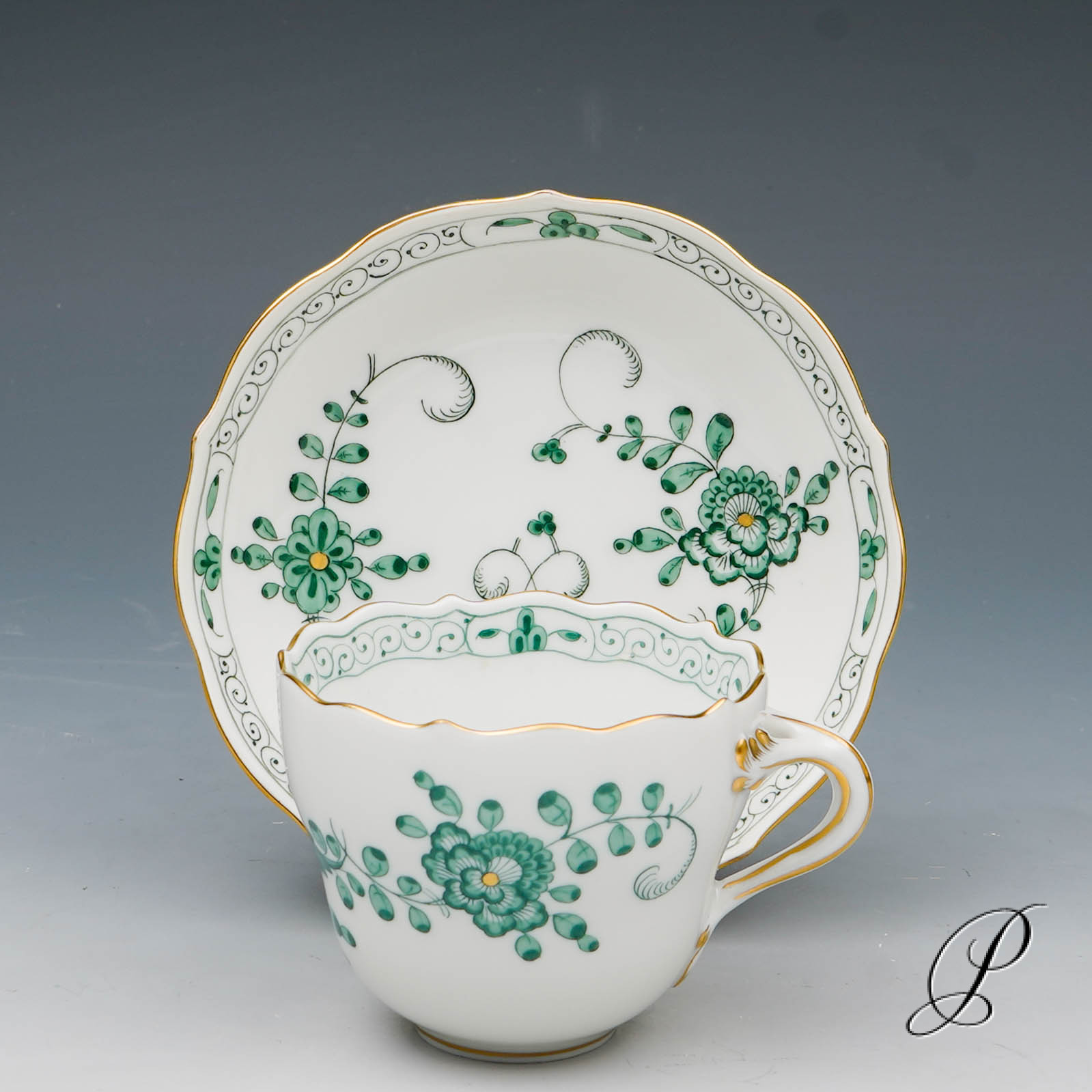 Dekor: Indische Malerei2, mit Kante, grün, Goldpunkte und Goldrand. Aktuelle Dekornummer 340310.
