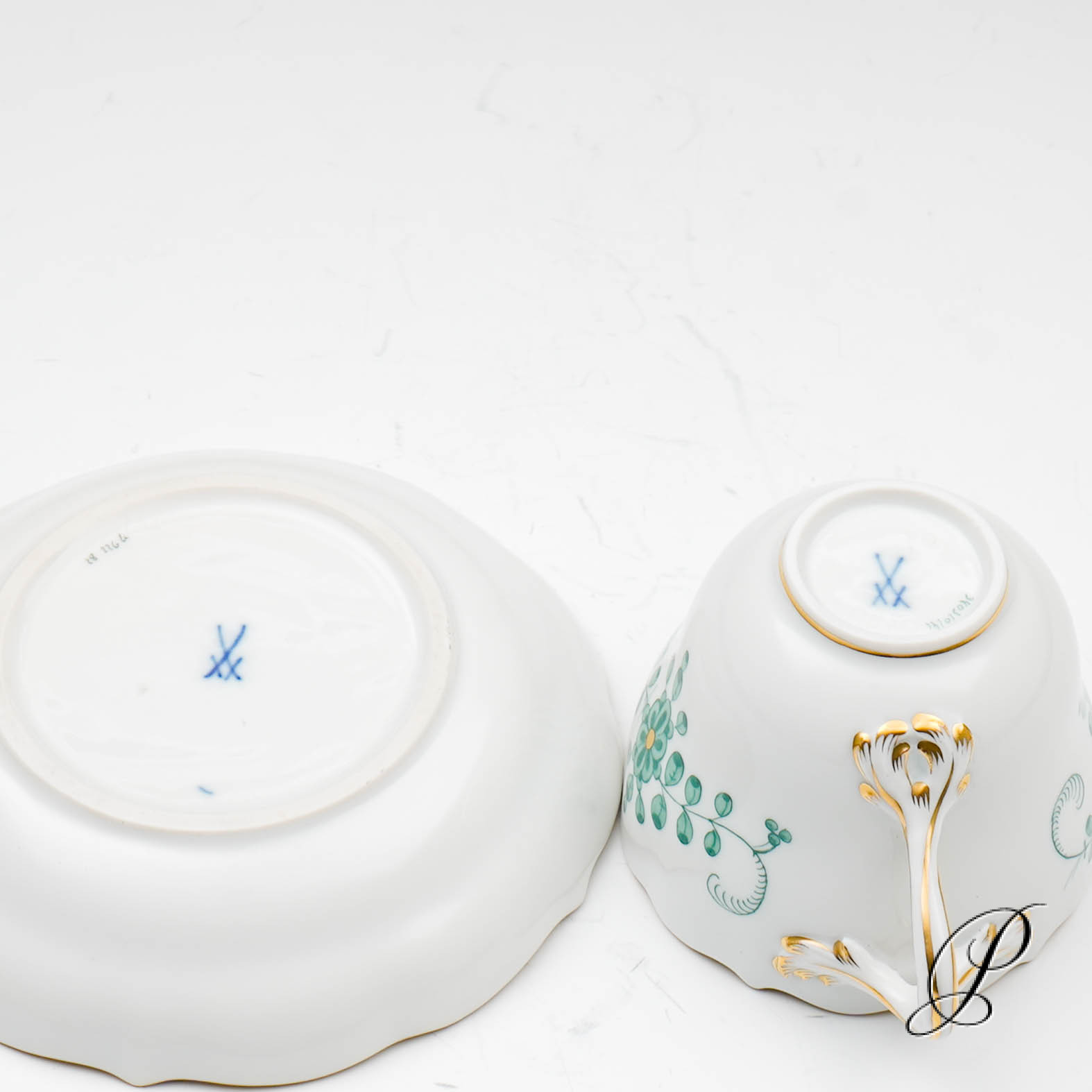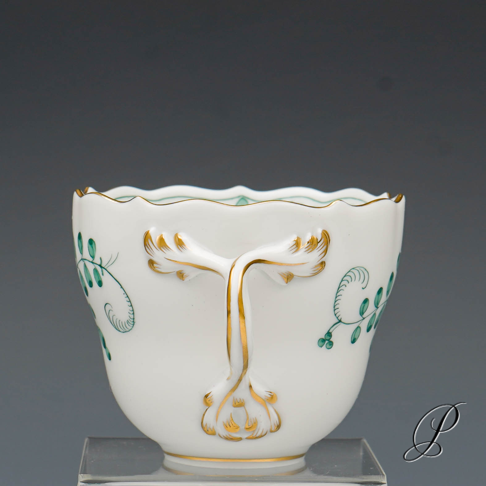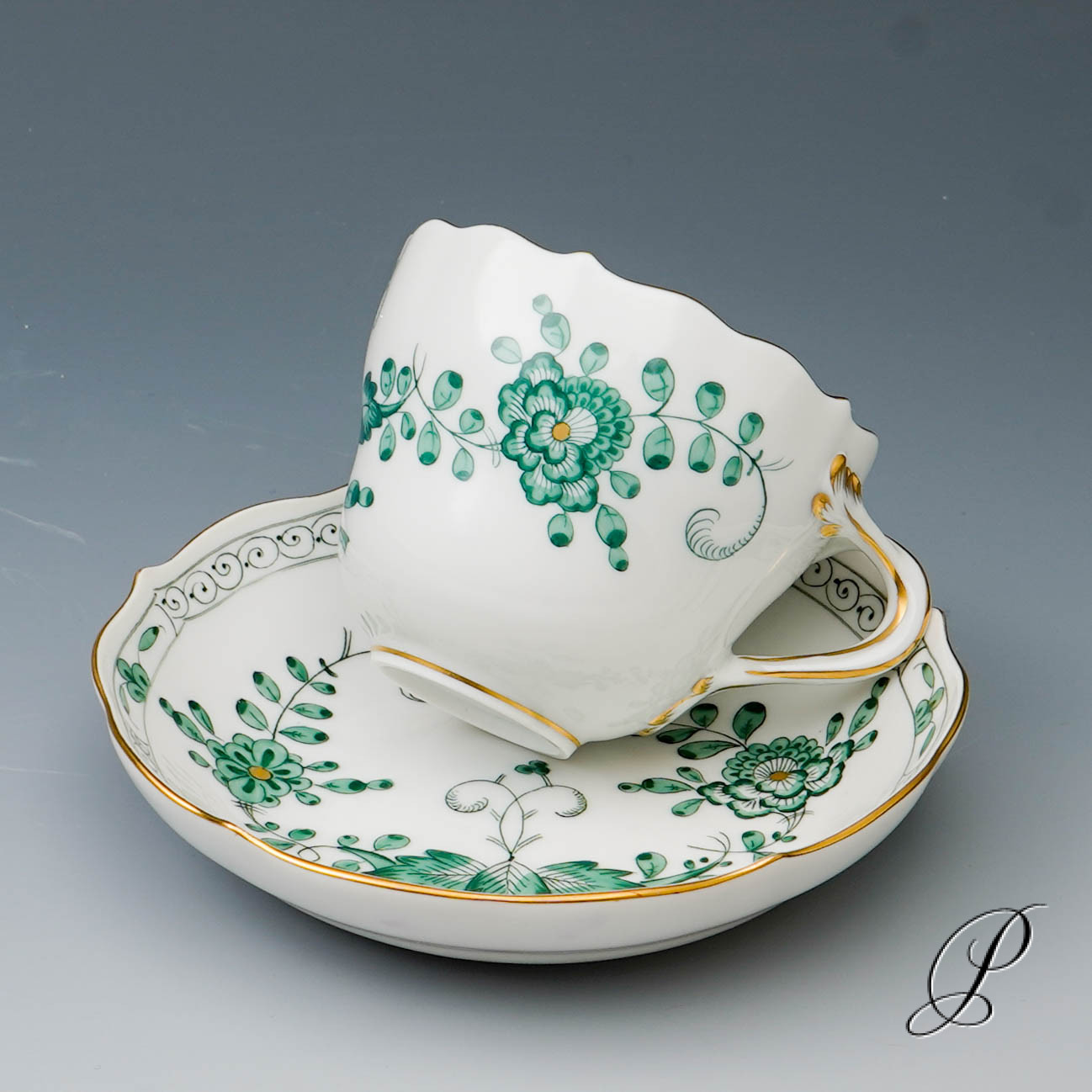 Dekor: Indische Malerei2, mit Kante, grün, Goldpunkte und Goldrand. Aktuelle Dekornummer 340310.