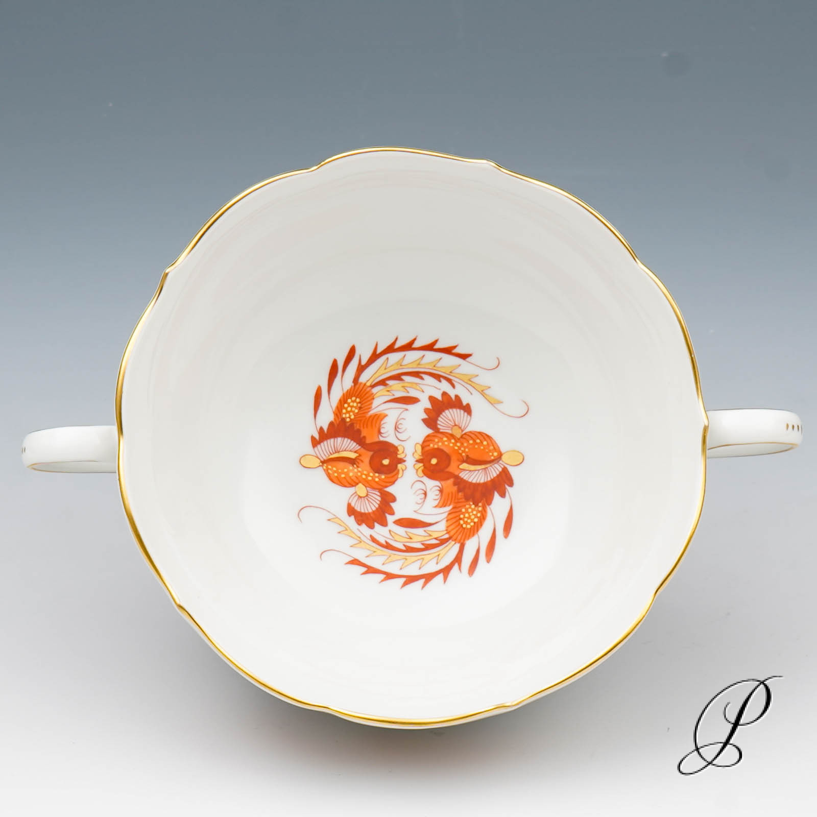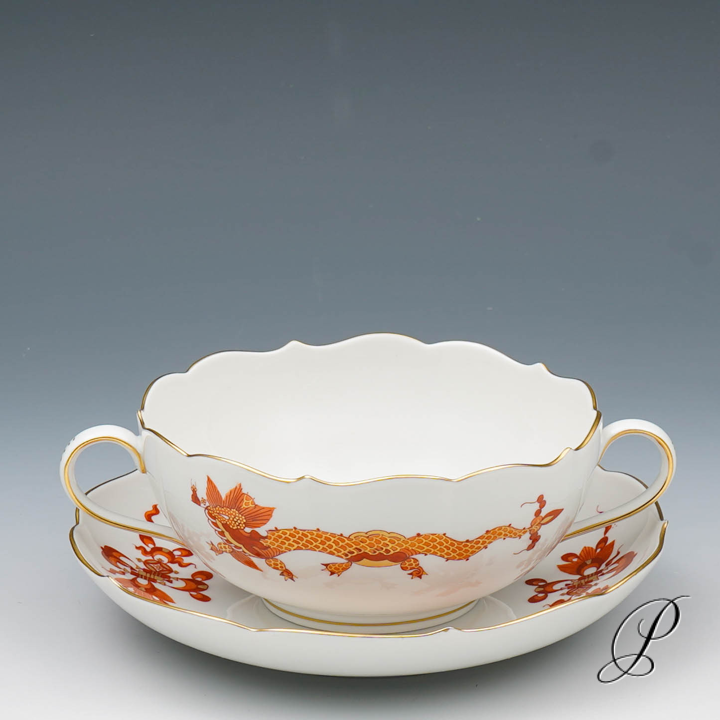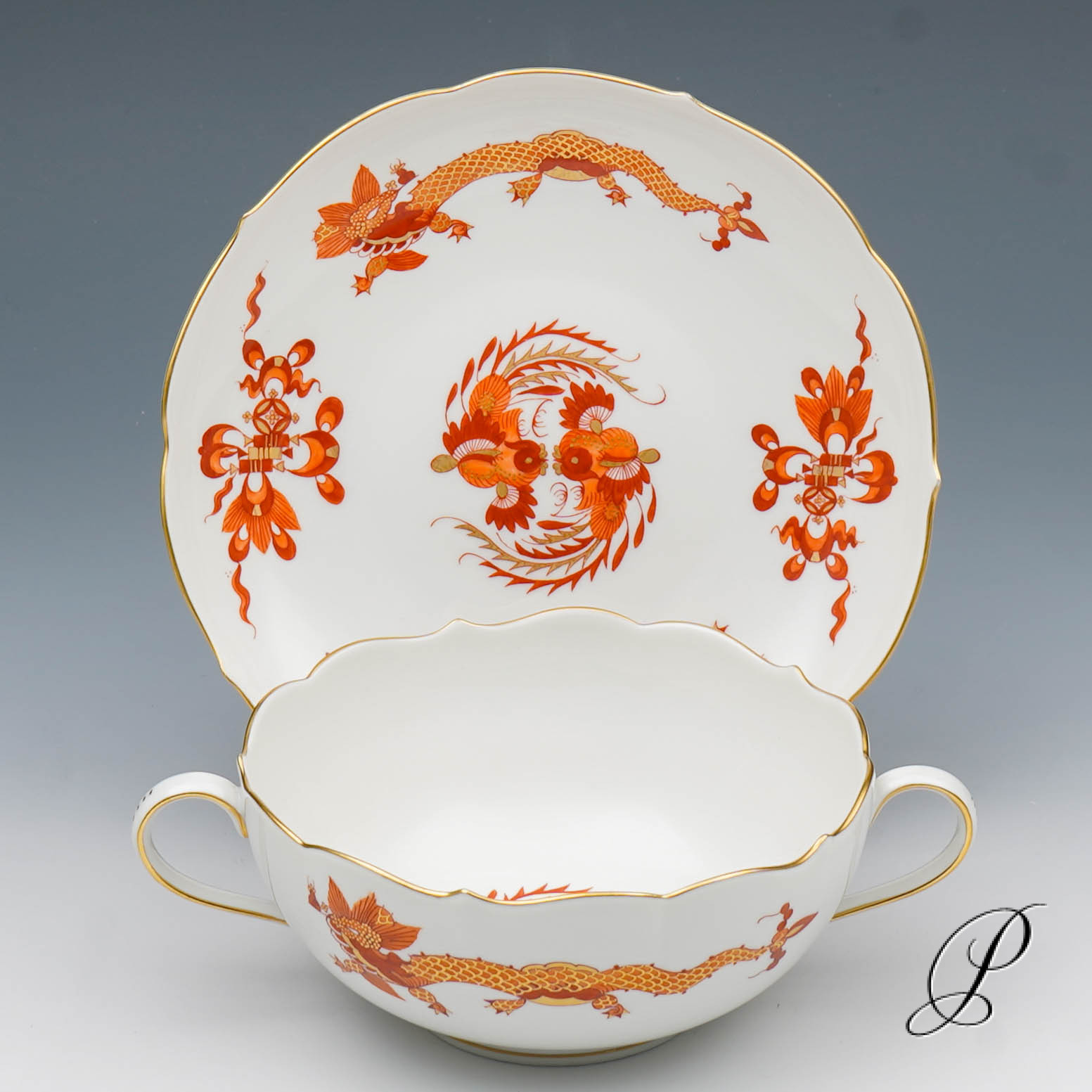 Dekor: Reicher Drache Rot, goldschattiert, Goldrand.