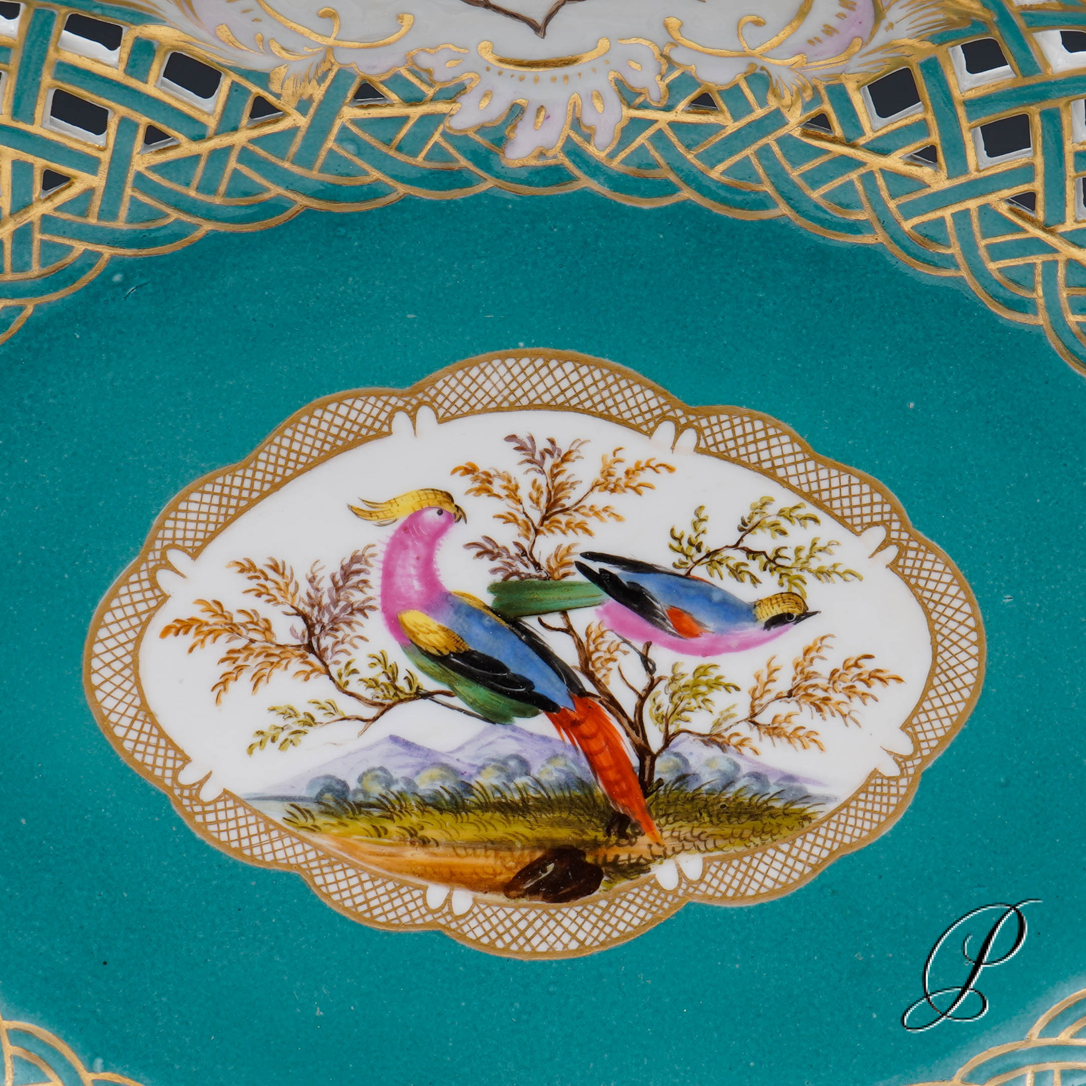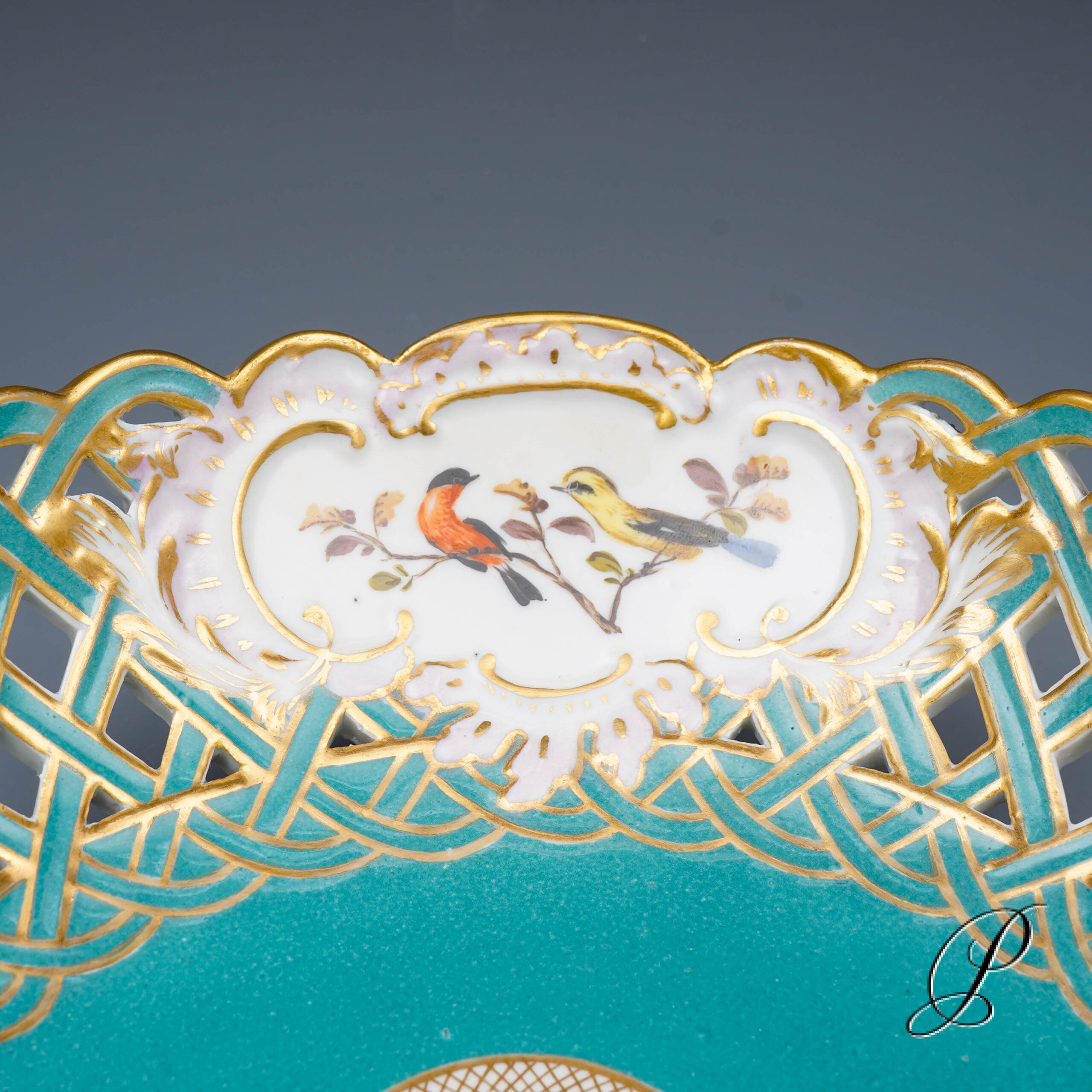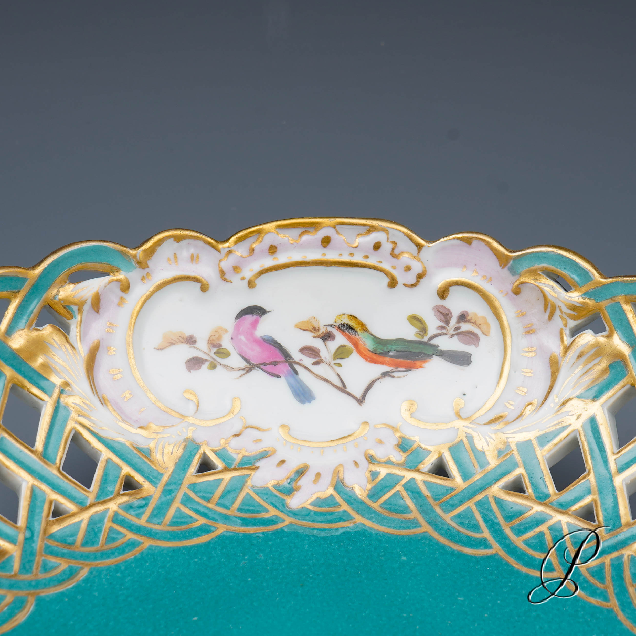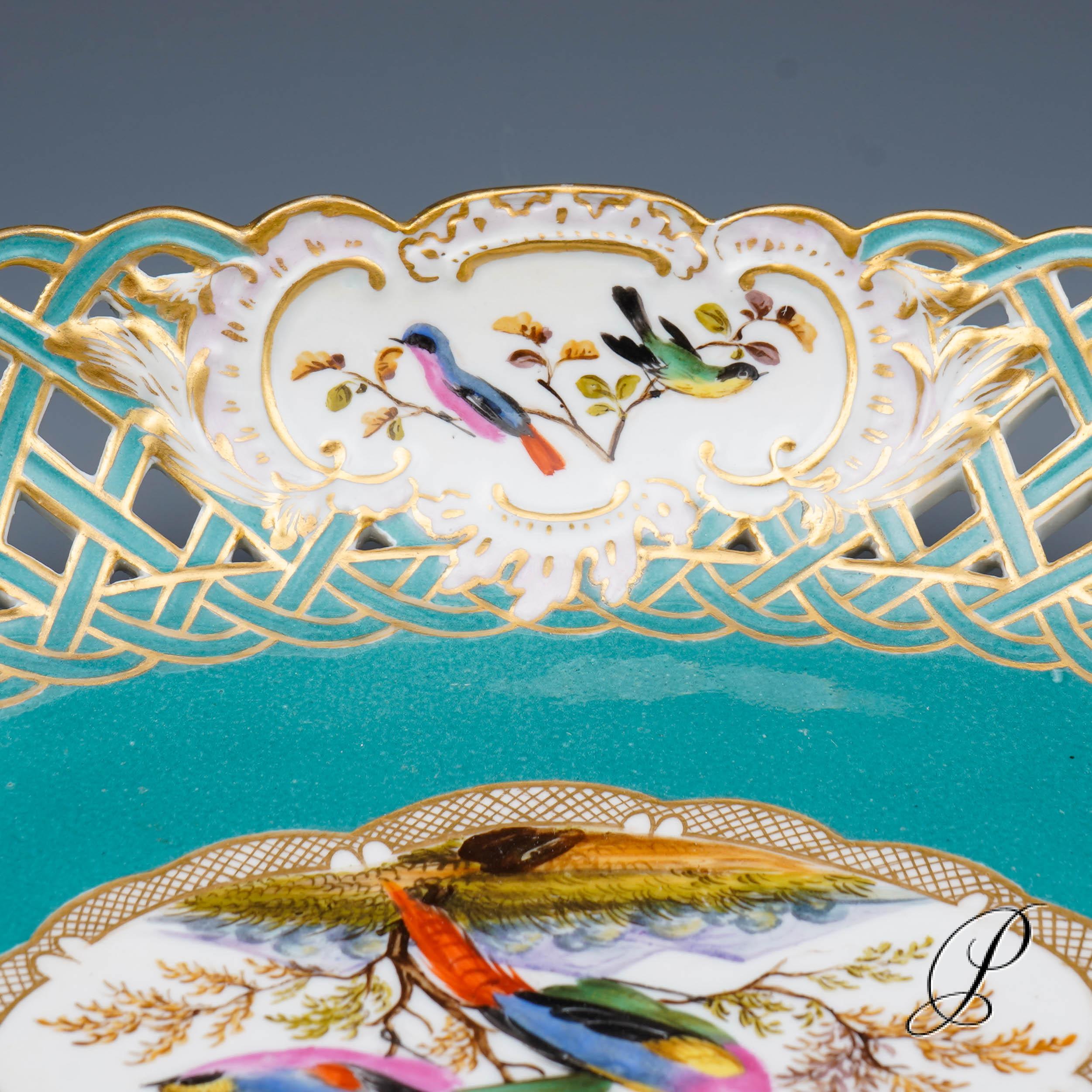 Traumhaft schöne Vogelmalerei eingehüllt in einen Türkis farbenen Fond. Nicht zu vergessen die wundervolle Vergoldung.