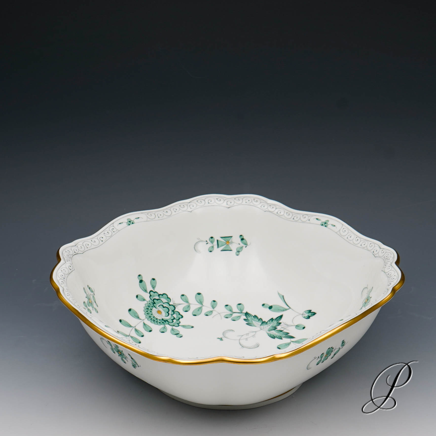 Dekor: Indische Malerei2 mit Kante, grün, Goldpunkte und Goldrand. Dekornummer: 340310.