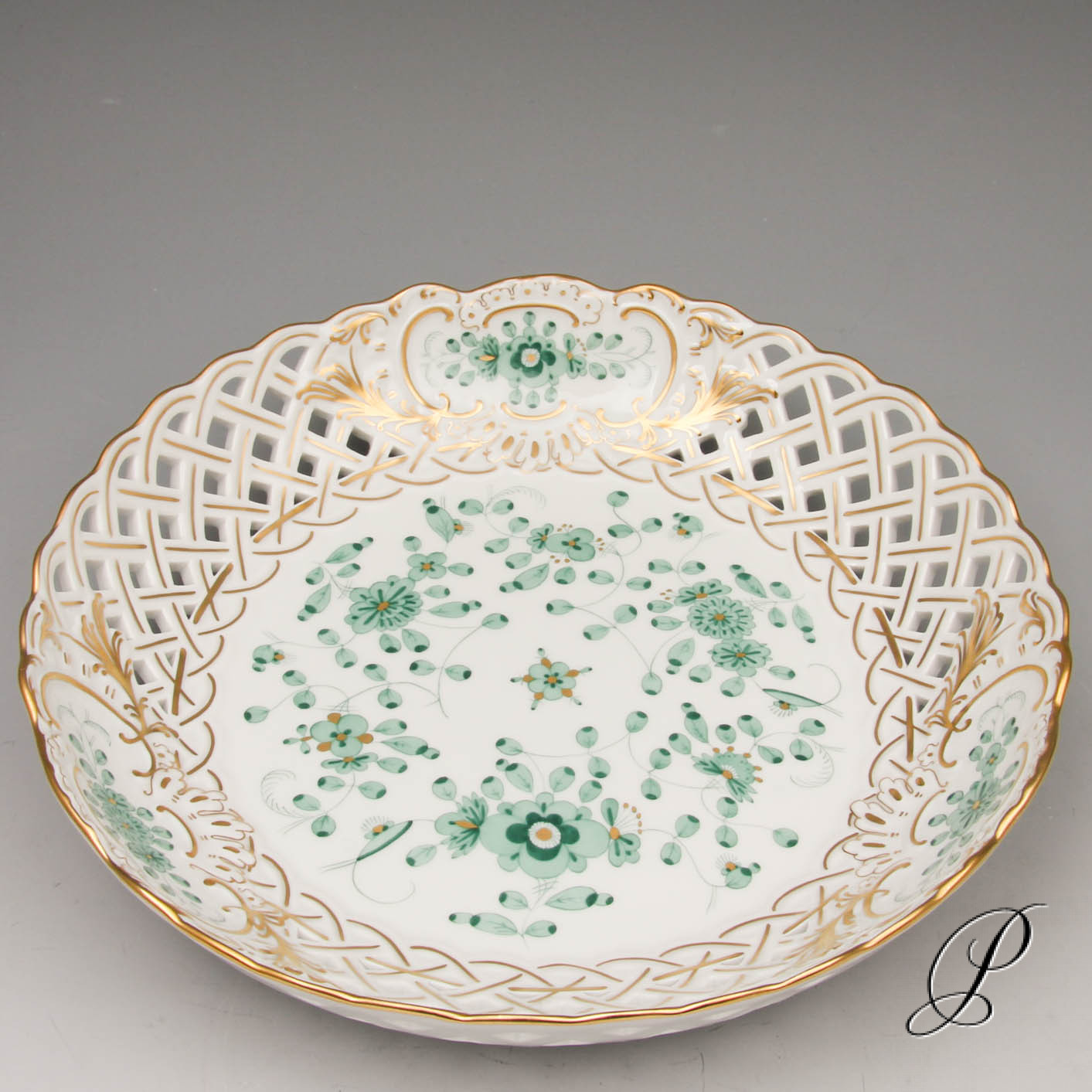 Eine Durchbruchschale Meissen im Dekor reiche Indische Malerei.
