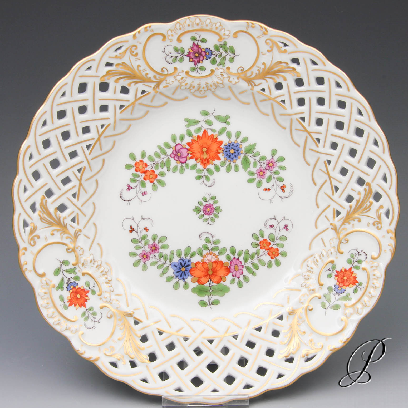 Angeboten wird ein Durchbruchteller aus Meissner Porzellan.
