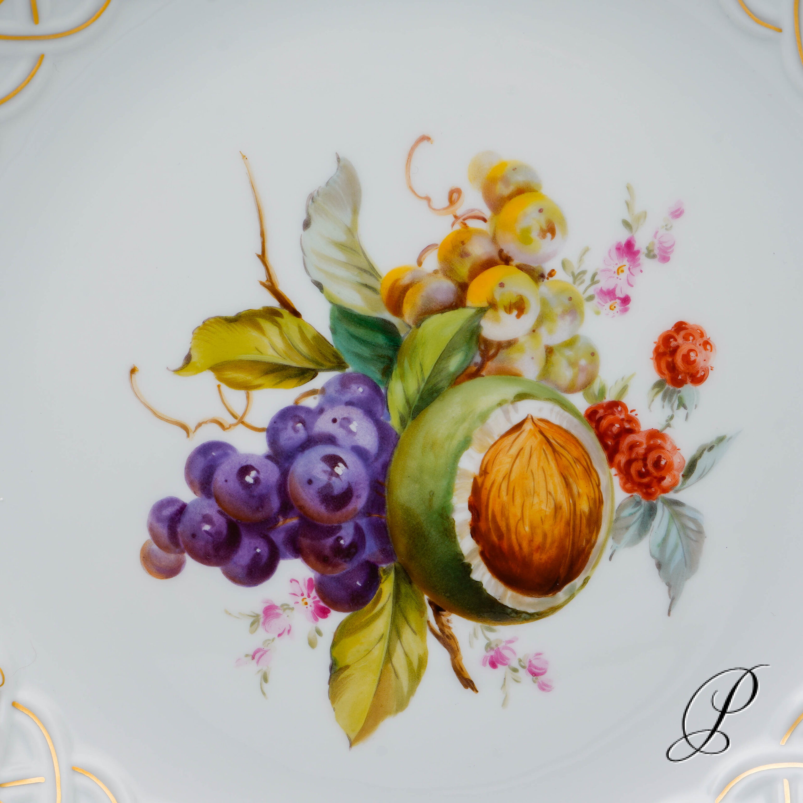 Dekor: Obstmalerei mit Ziervergoldung. Dekornummer 241012.