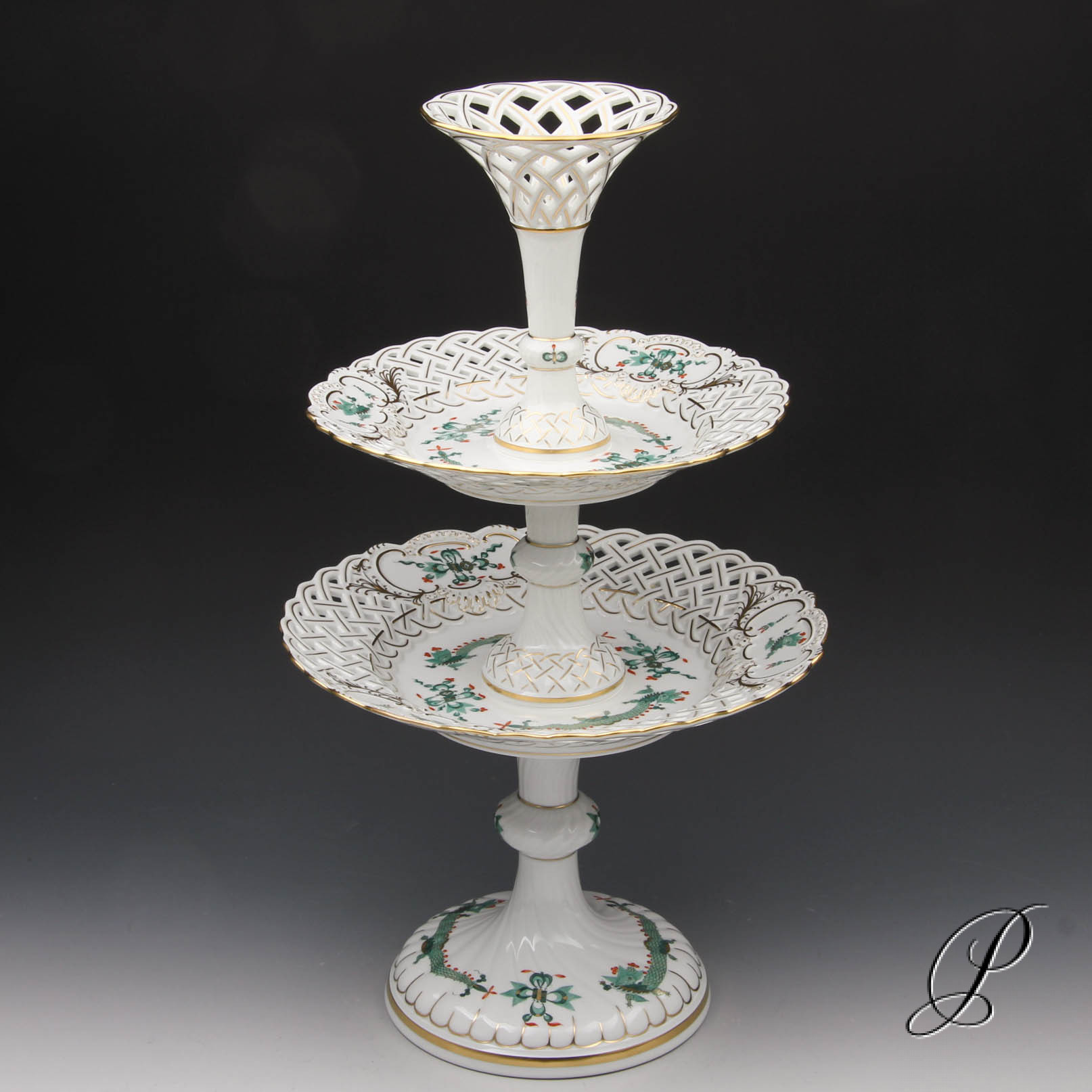 Angeboten wird ein riesiger Tafelaufsatz – Etagere aus Meissner Porzellan.
