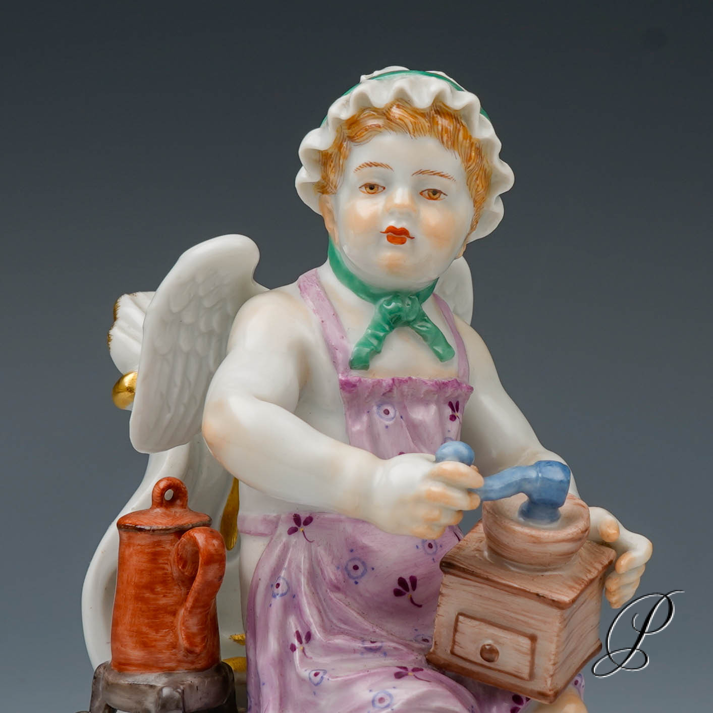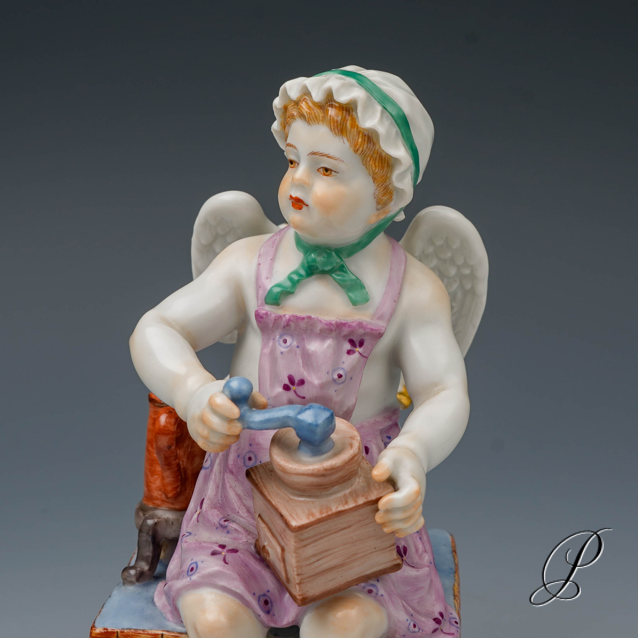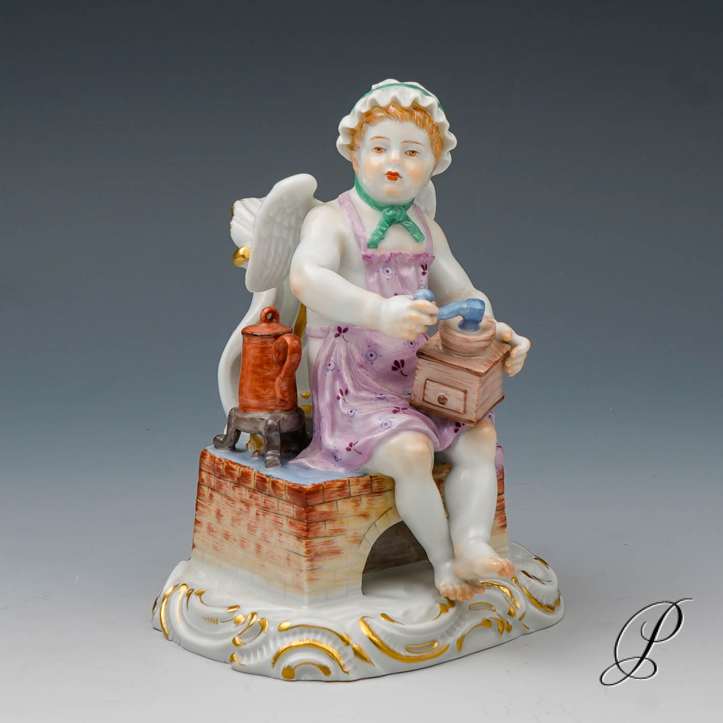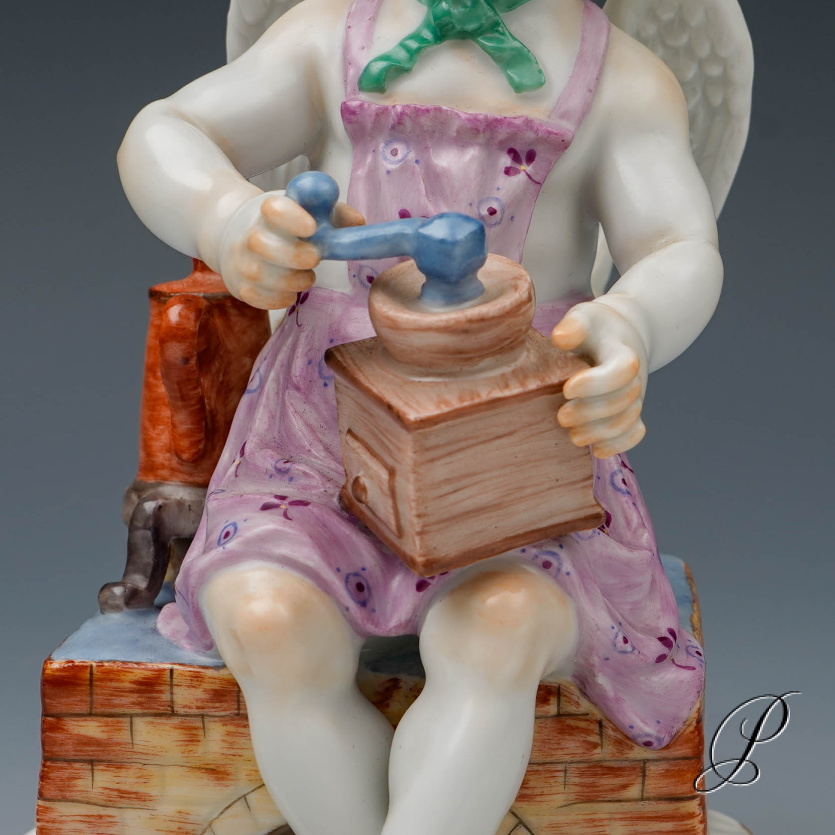 In der Darstellung „Amorette als Köchin“ mit Kaffeemühle.