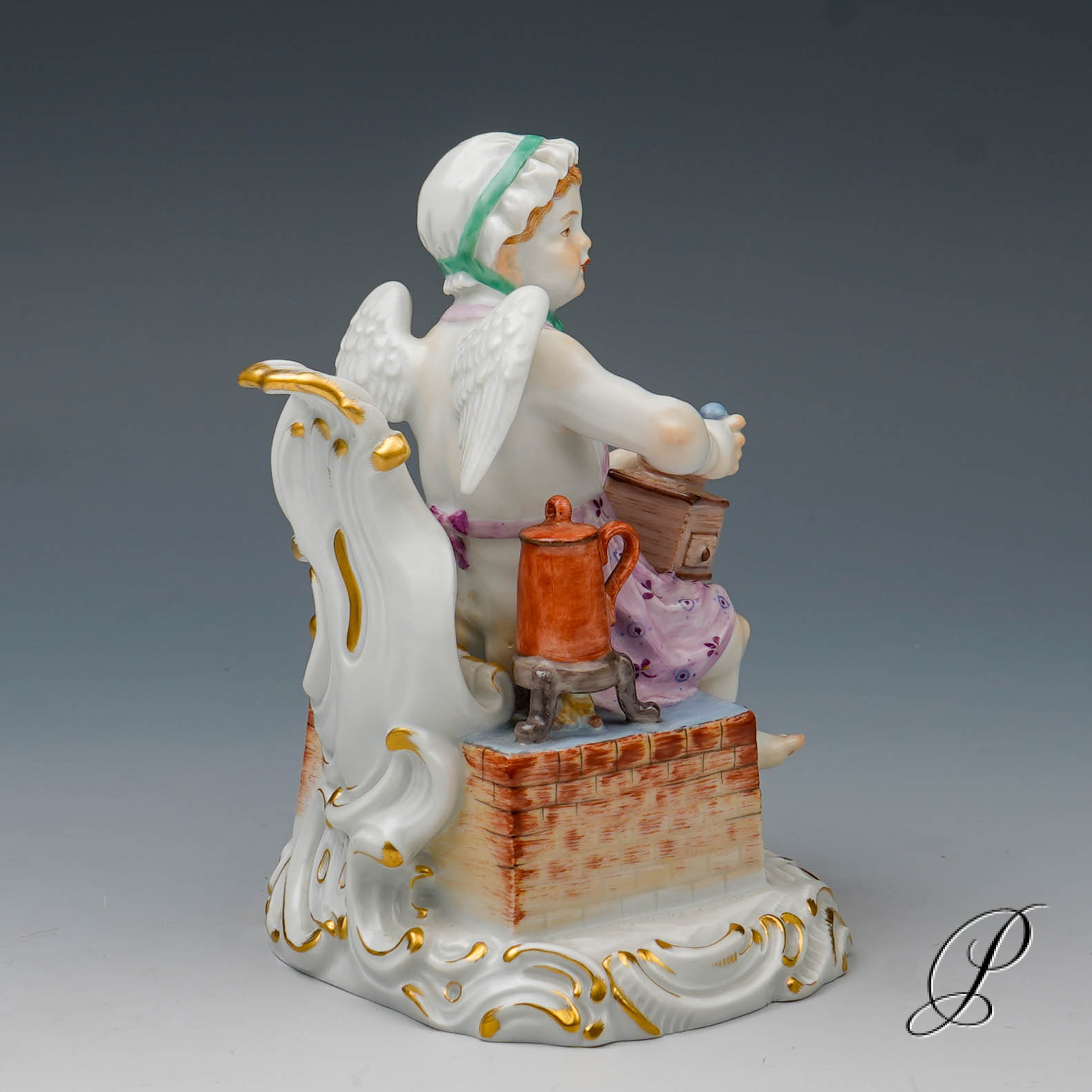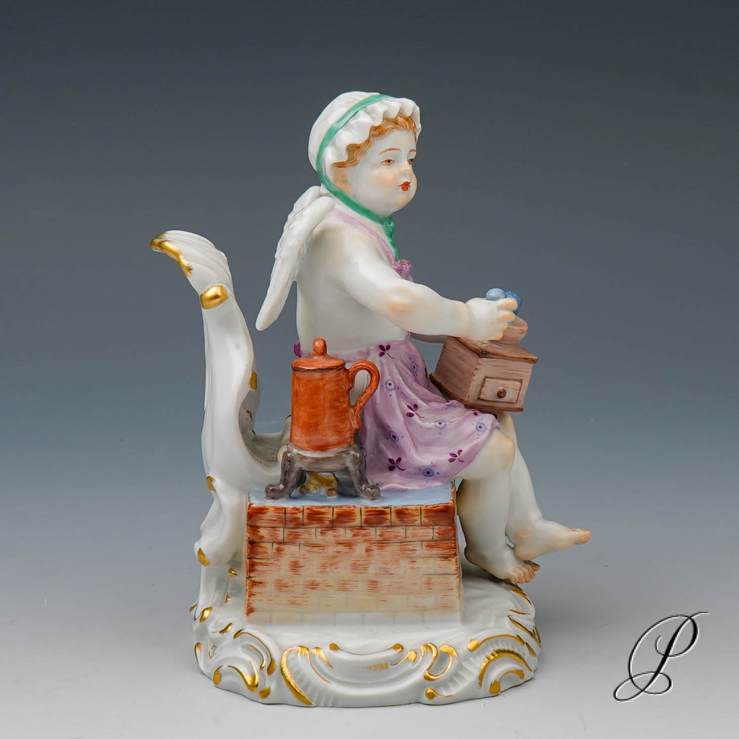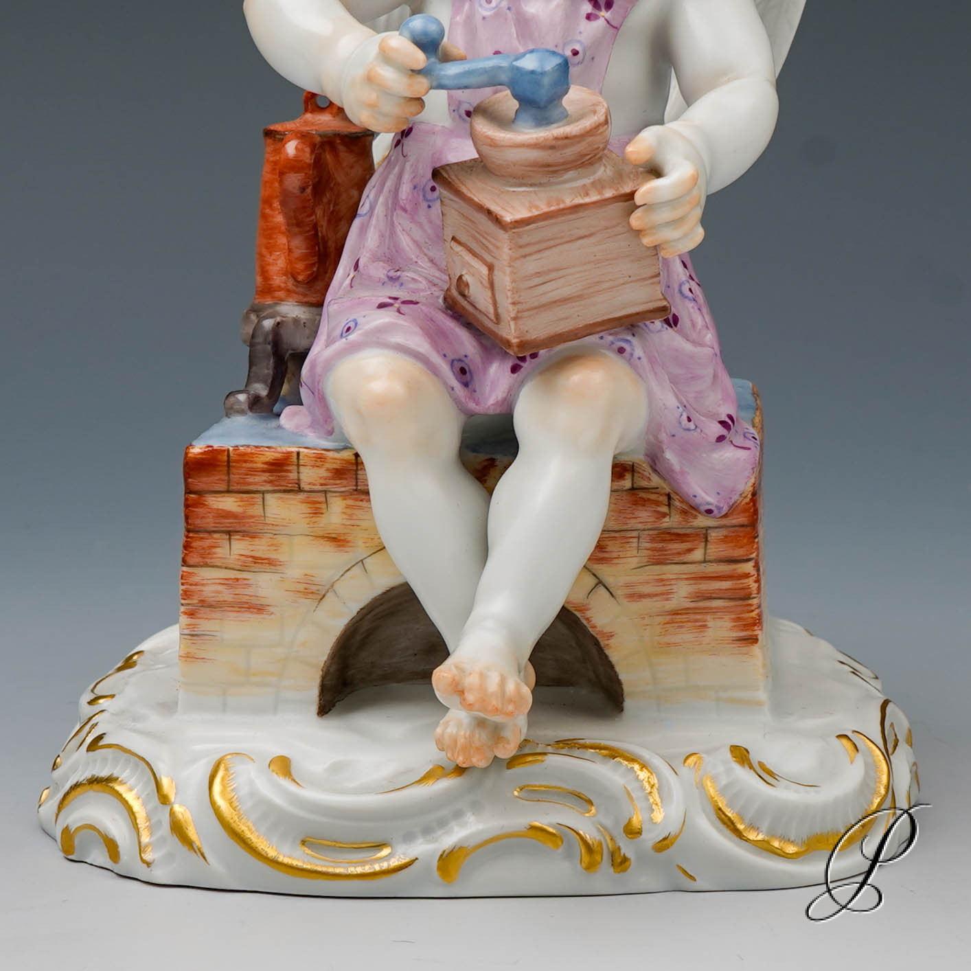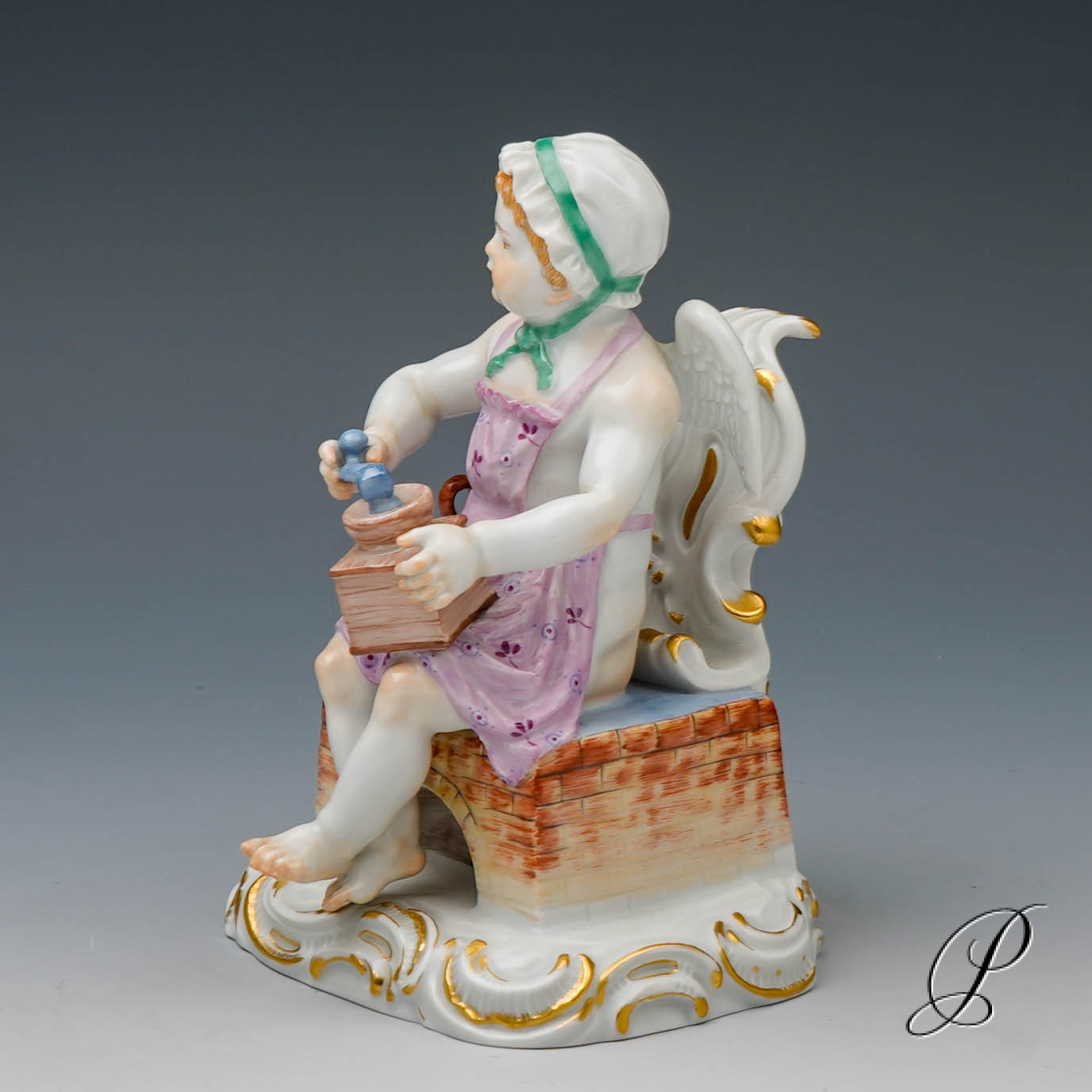 In der Darstellung „Amorette als Köchin“ mit Kaffeemühle.