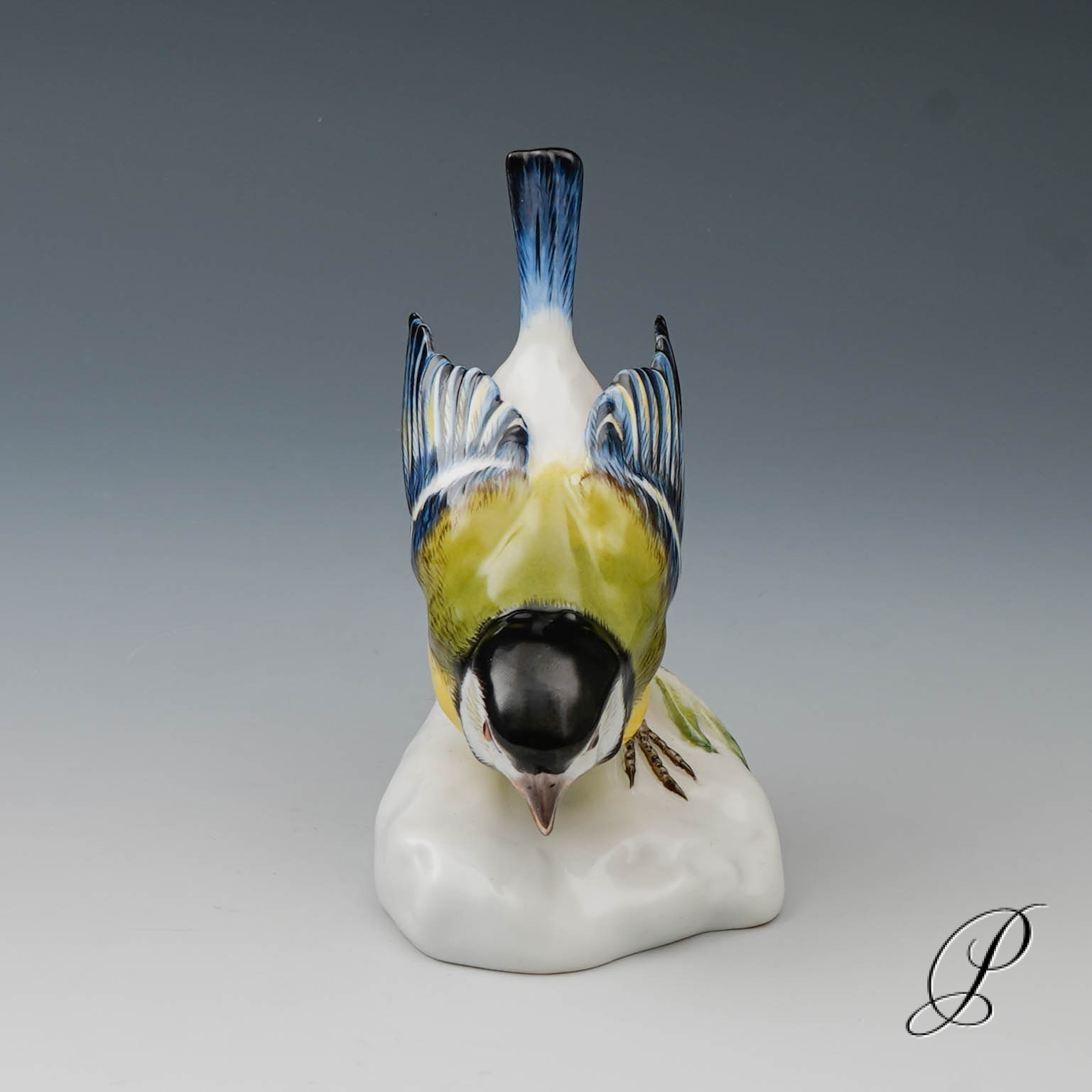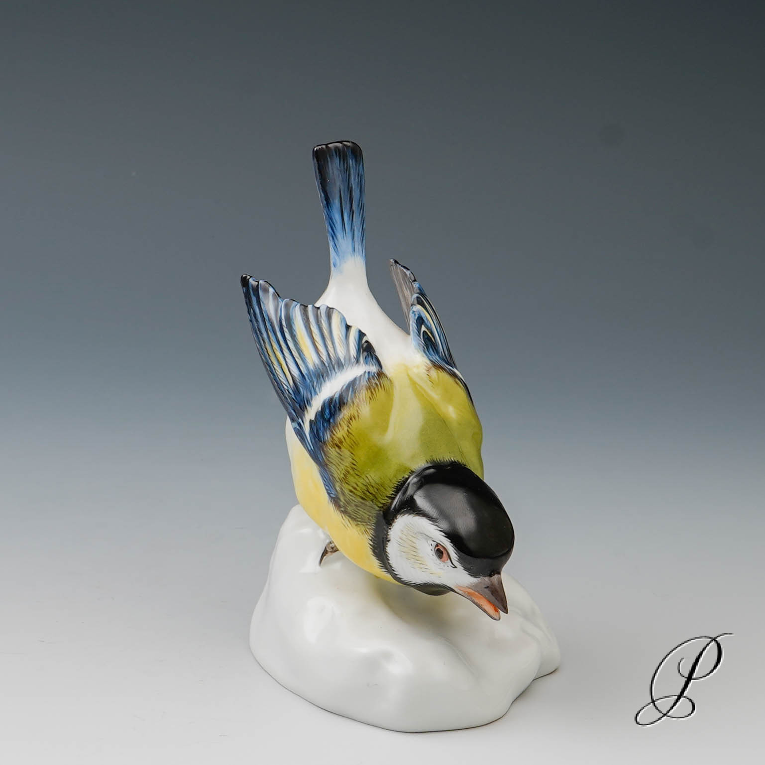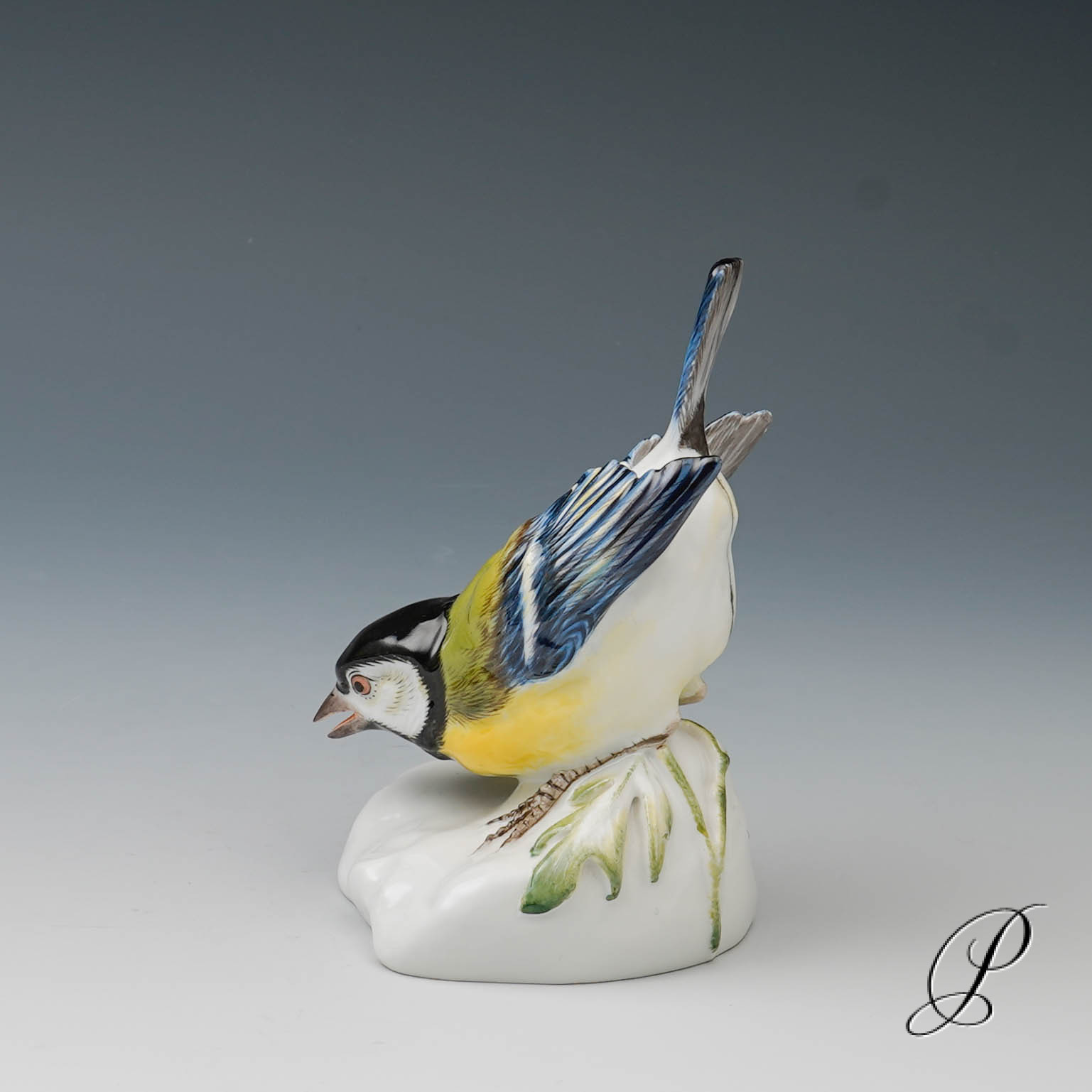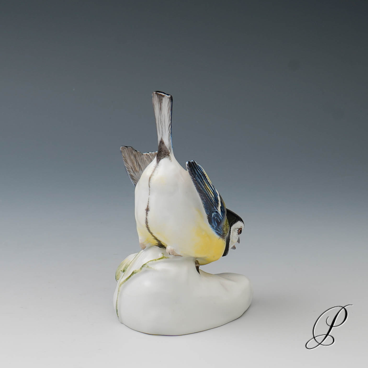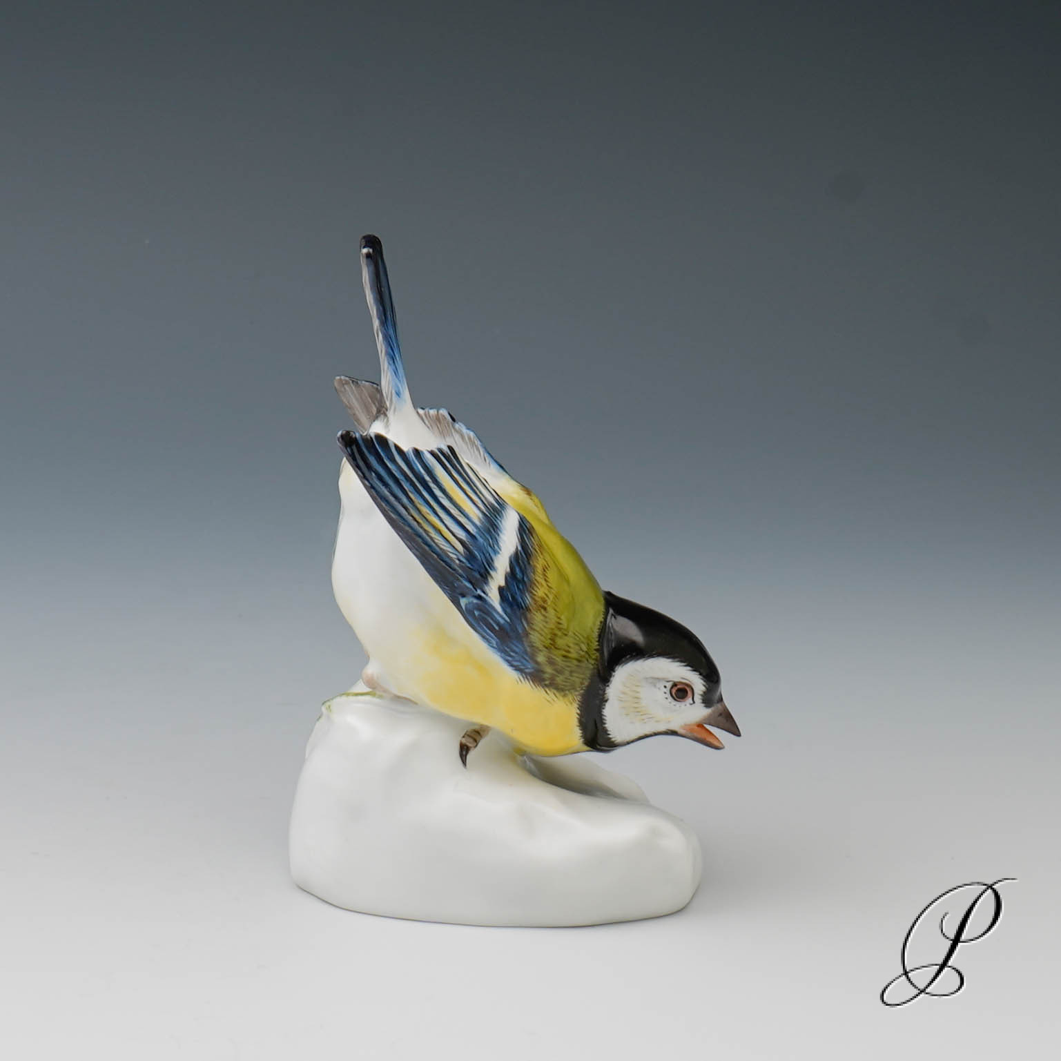 Hier eine Kohlmeise auf Natursteinsockel aus der Porzellanmanufaktur in Meissen.