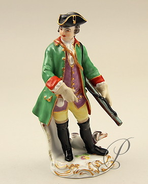 Angeboten wird eine Jägerfigur aus Meissner Porzellan.