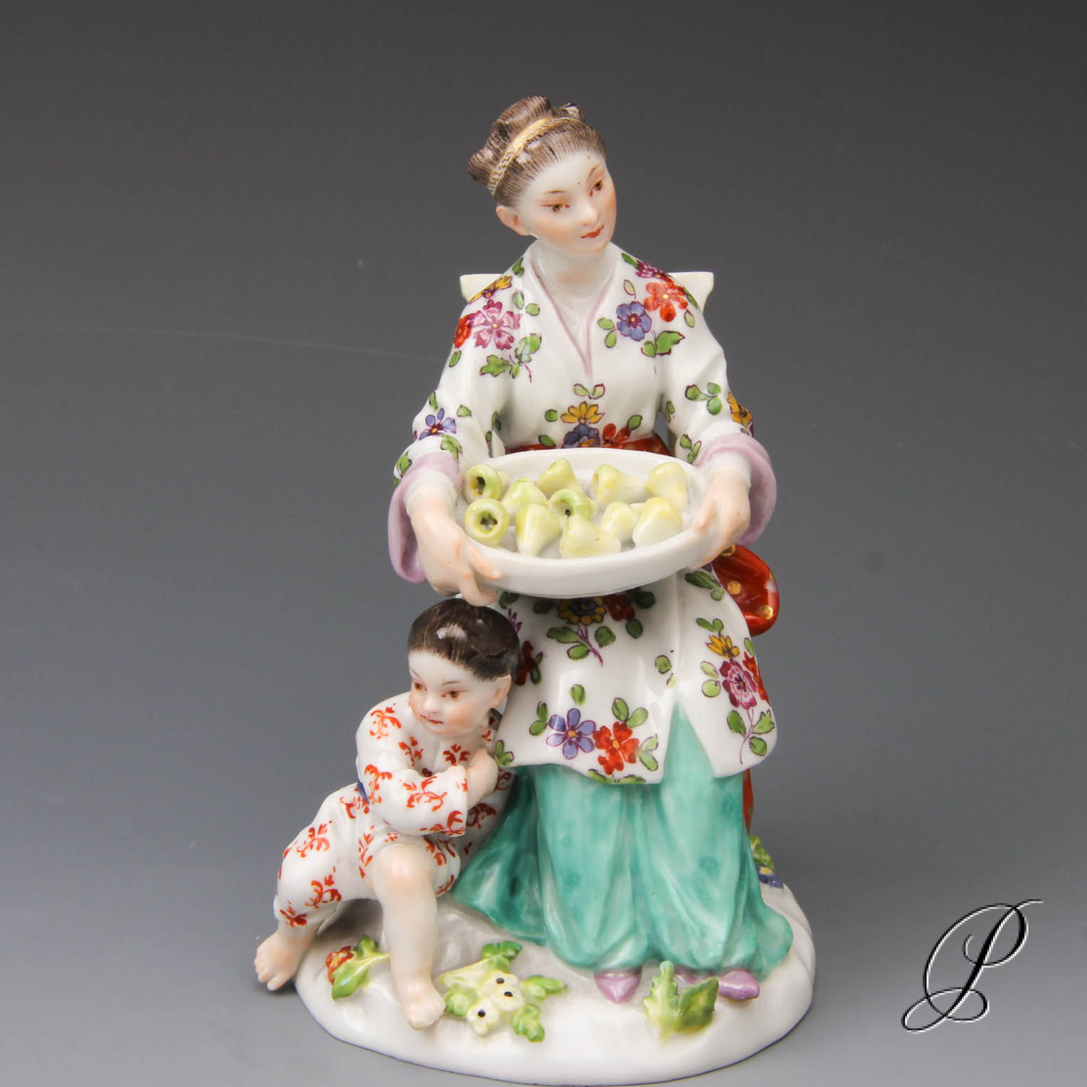 Um 1750 begannen Kaendler, Reinicke und Meyer von der Meißner Porzellanmanufaktur eine Serie von Japaner-und Chinesengruppen zu modellieren. In aufwendiger Handarbeit geschaffen, gehören die Figuren der Serie“Fremde Völker, zu den reizvollsten Rokokoplastiken in Meissener Porzellan.