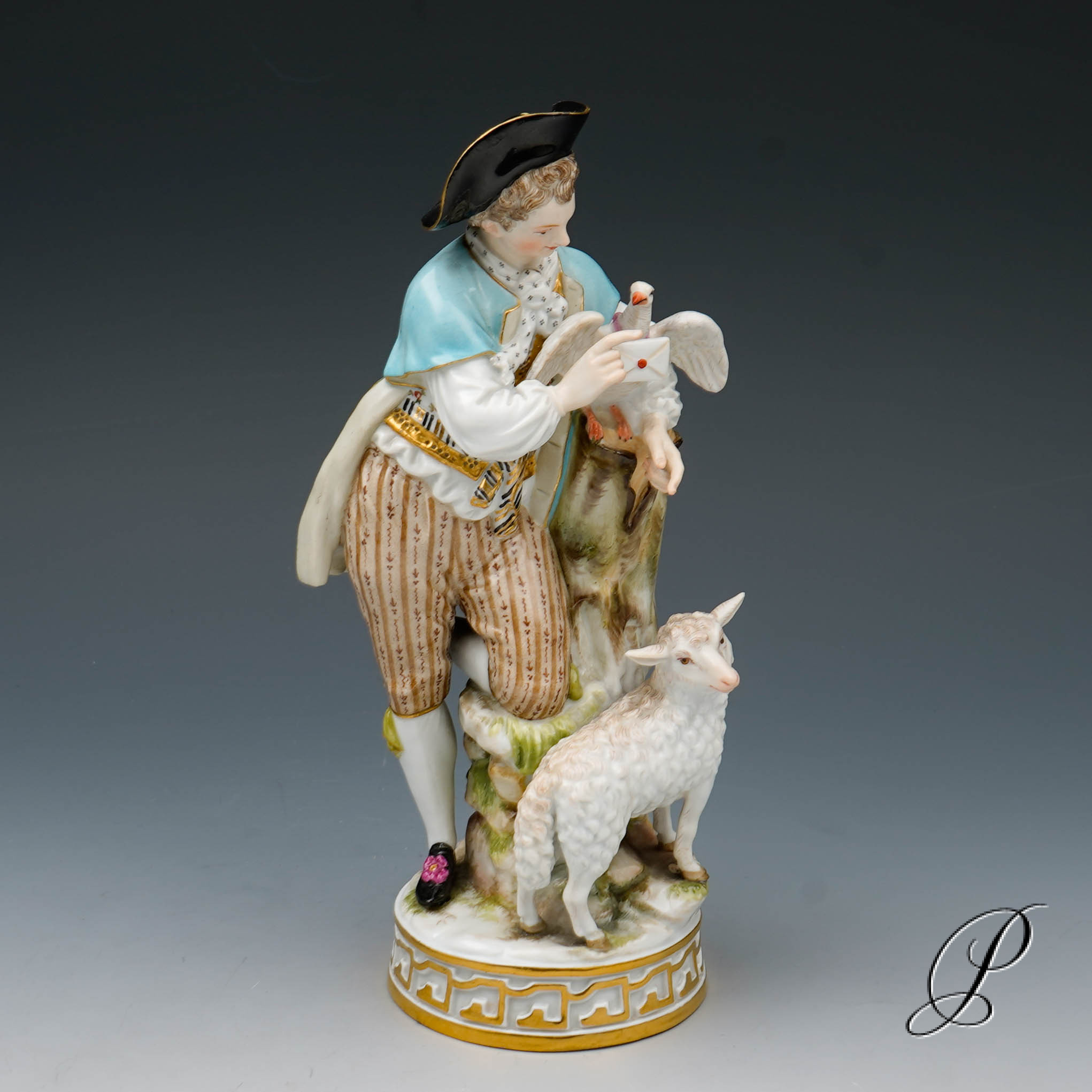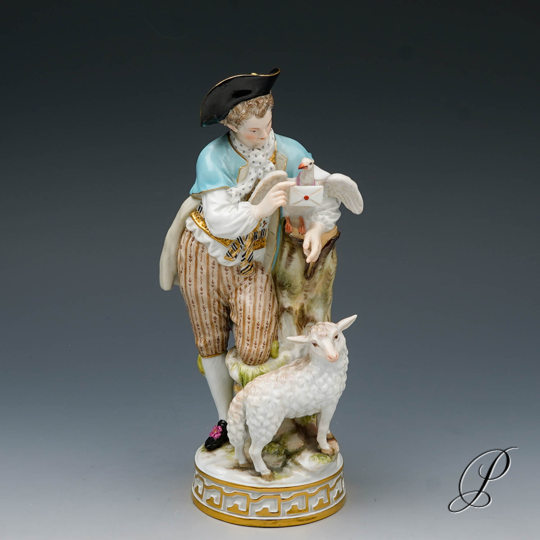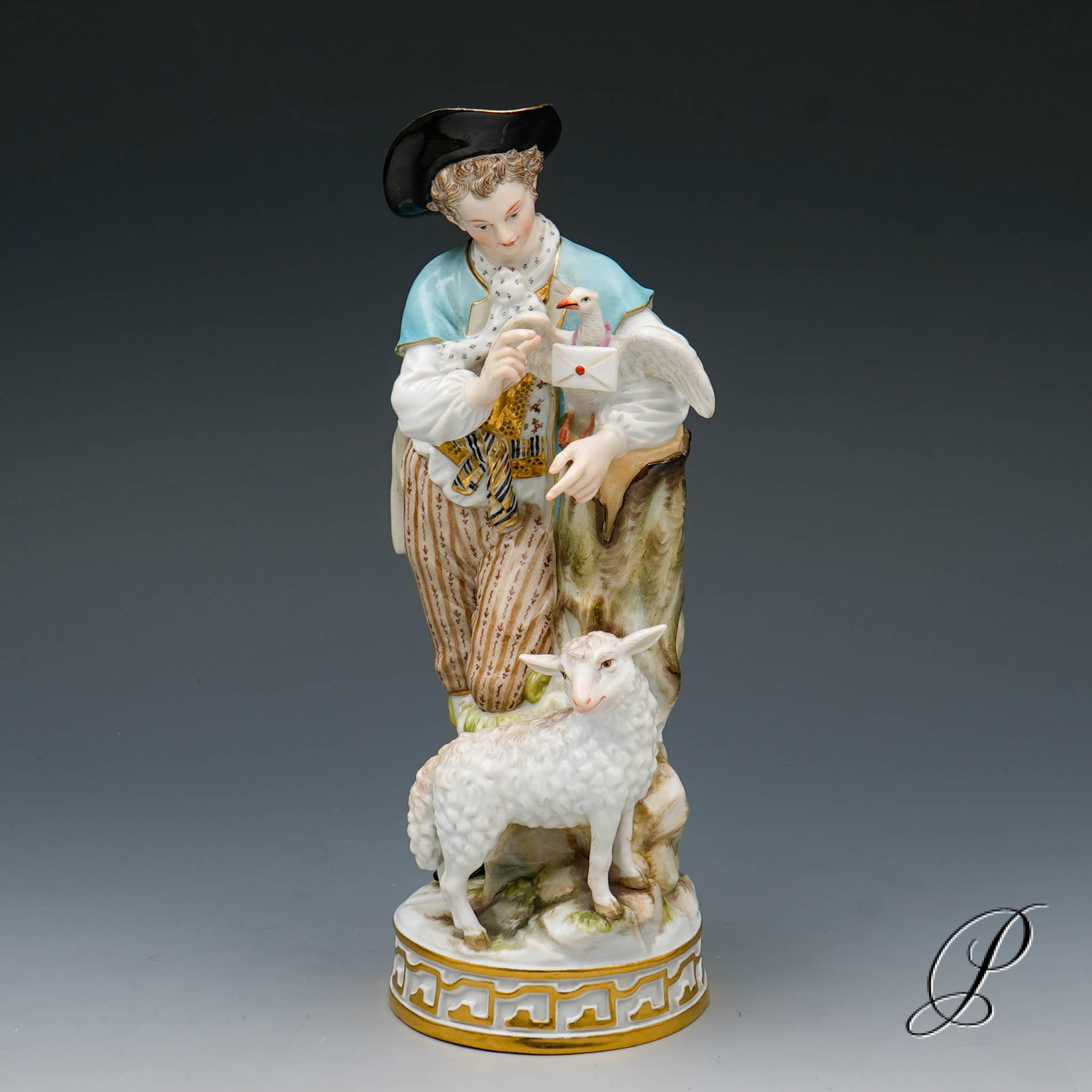 In der Darstellung ein Schäfer mit Lamm und Brieftaube.