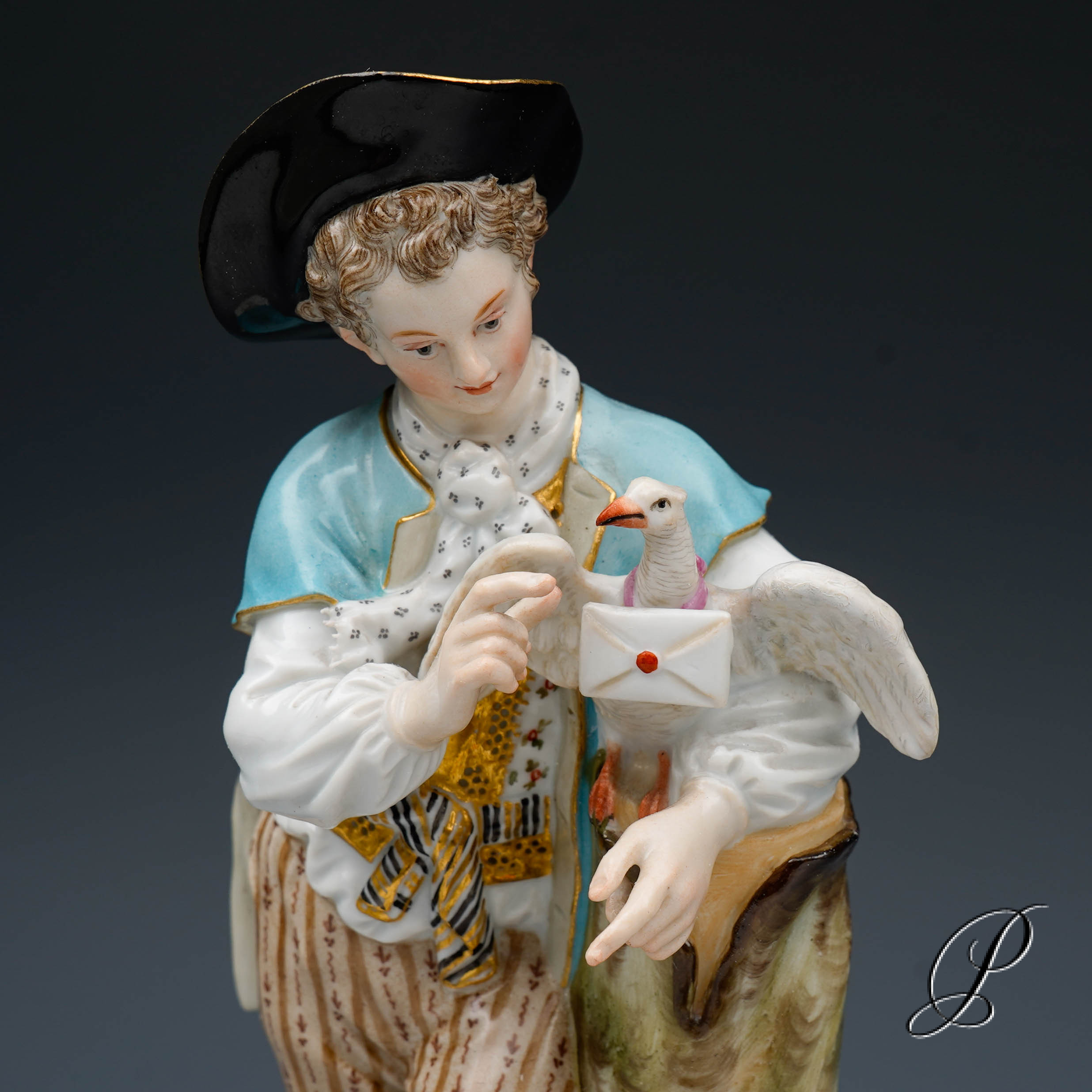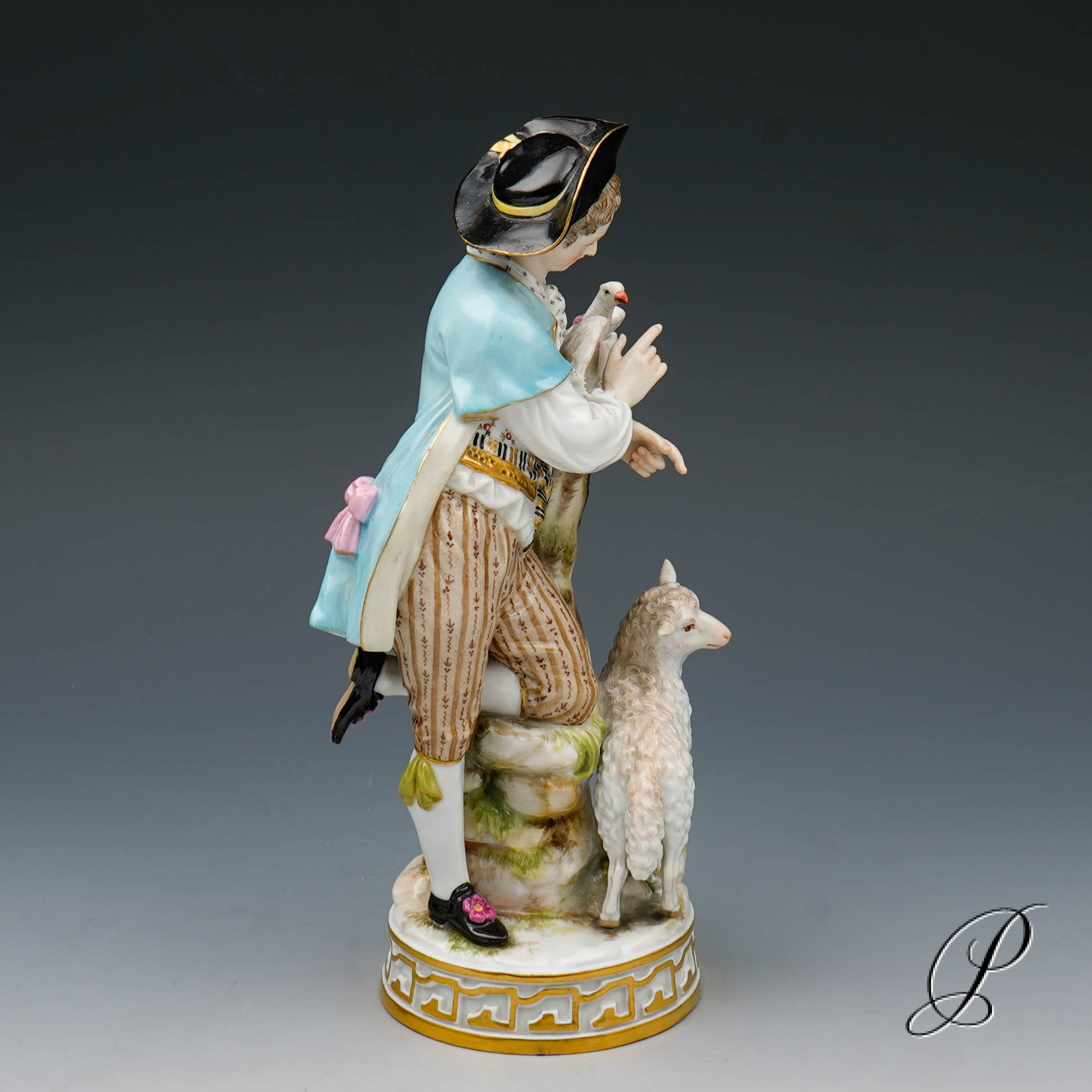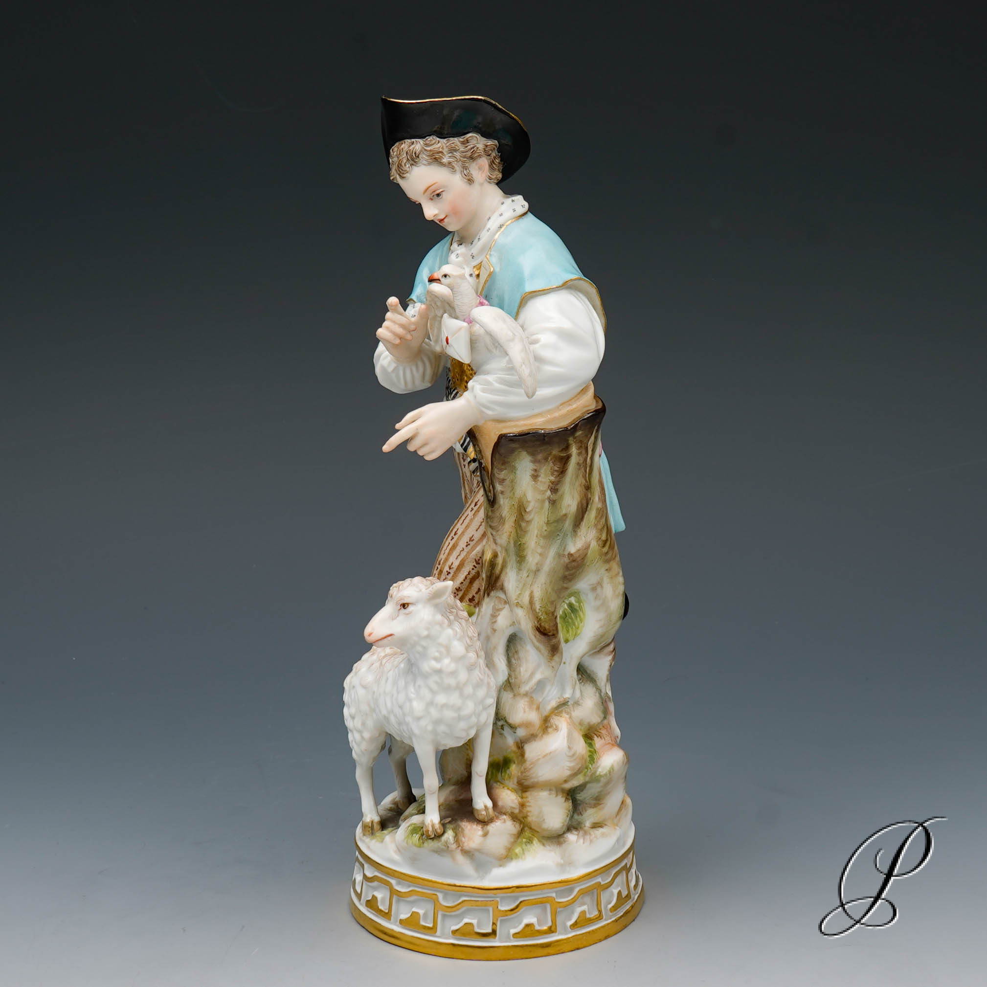 In der Darstellung ein Schäfer mit Lamm und Brieftaube.