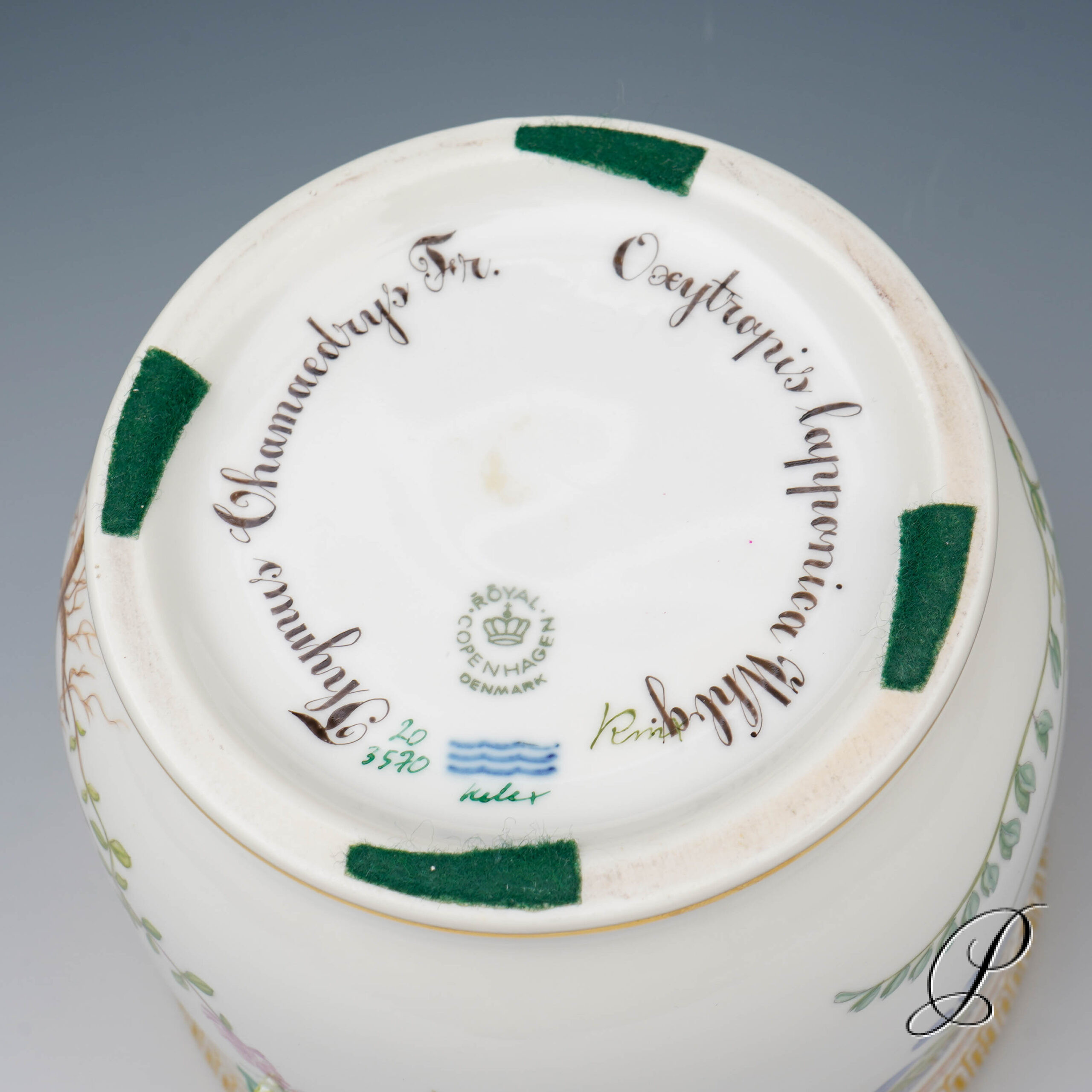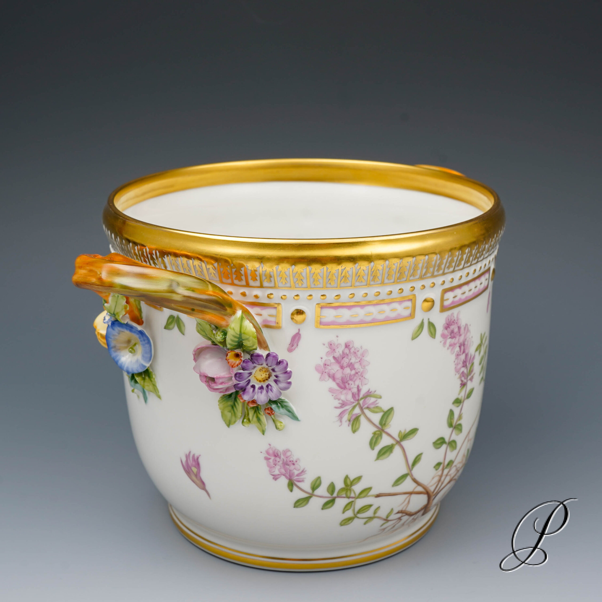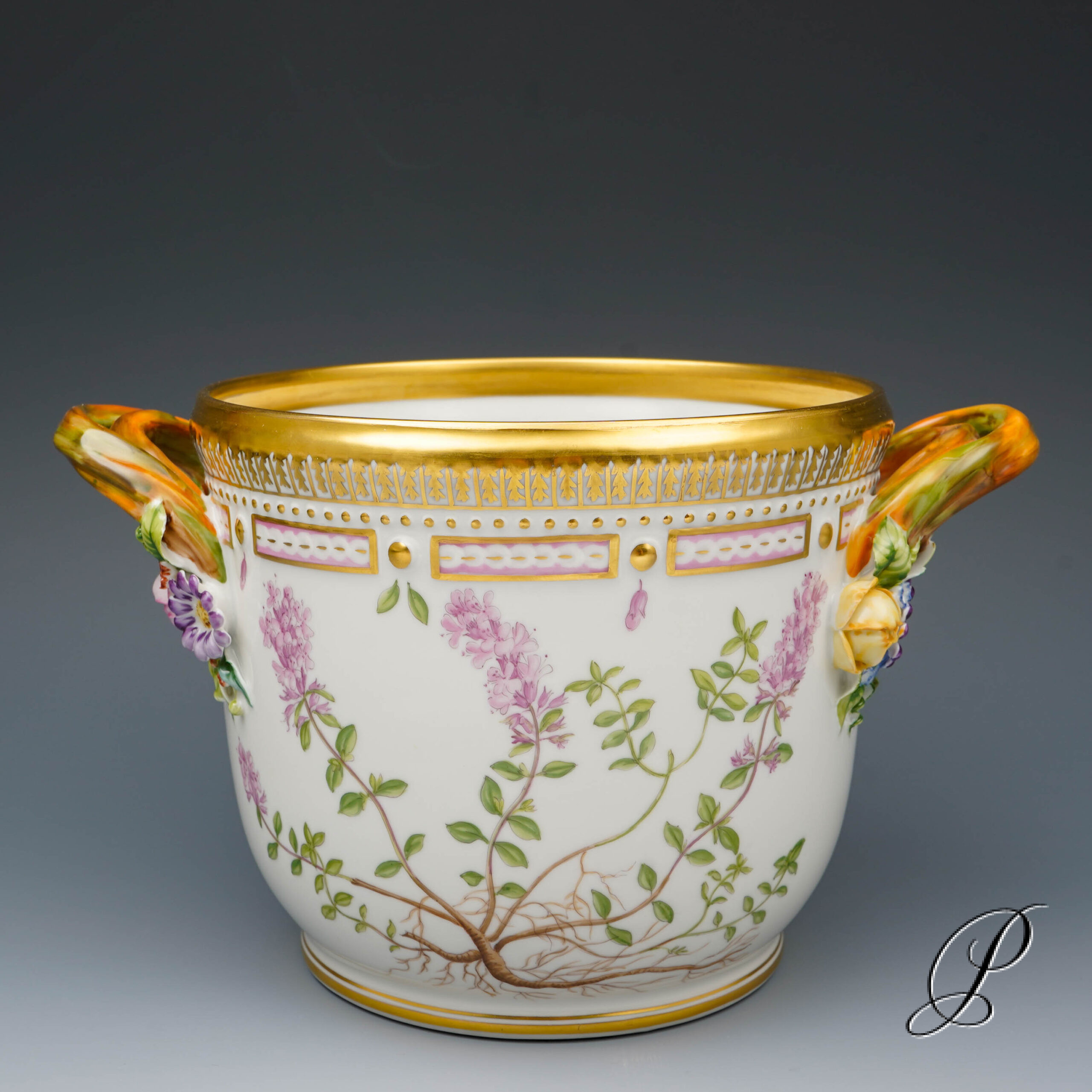 Hier biete ich Ihnen einen Blumentopf von Royal Copenhagen an. Der Blumentopf hat insgesamt eine Höhe von ca. 12,5cm. Der Durchmesser ist ca.14cm. Auf der Unterseite jeweils grüne Stempelmarke mit Krone + 3 blaue Wellenlinien in Unterglasur. Esgibt keinerlei Beschädigungen und das Stück befindet sich in einem super Zustand. Dieses Porzellan wird im dänischen Königshaus benutzt und stellt die Prunkserie von Royal Kopenhagen dar. Es ist eines der teuersten Porzellane der Welt. Ursprünglich wurde es von König Frederik IV. von Dänemark bei der Porzellanmanufaktur Royal Copenhagen in Auftrag gegeben und zwischen 1790 und 1802 ursprünglich als Geschenk für Zarin Katharina II. (1729-1796) von Russland angefertigt. Das Geschirr umfasst 1802 Teile und schmückt noch heute die königliche Galatafel bei besonders festlichen Anlässen.