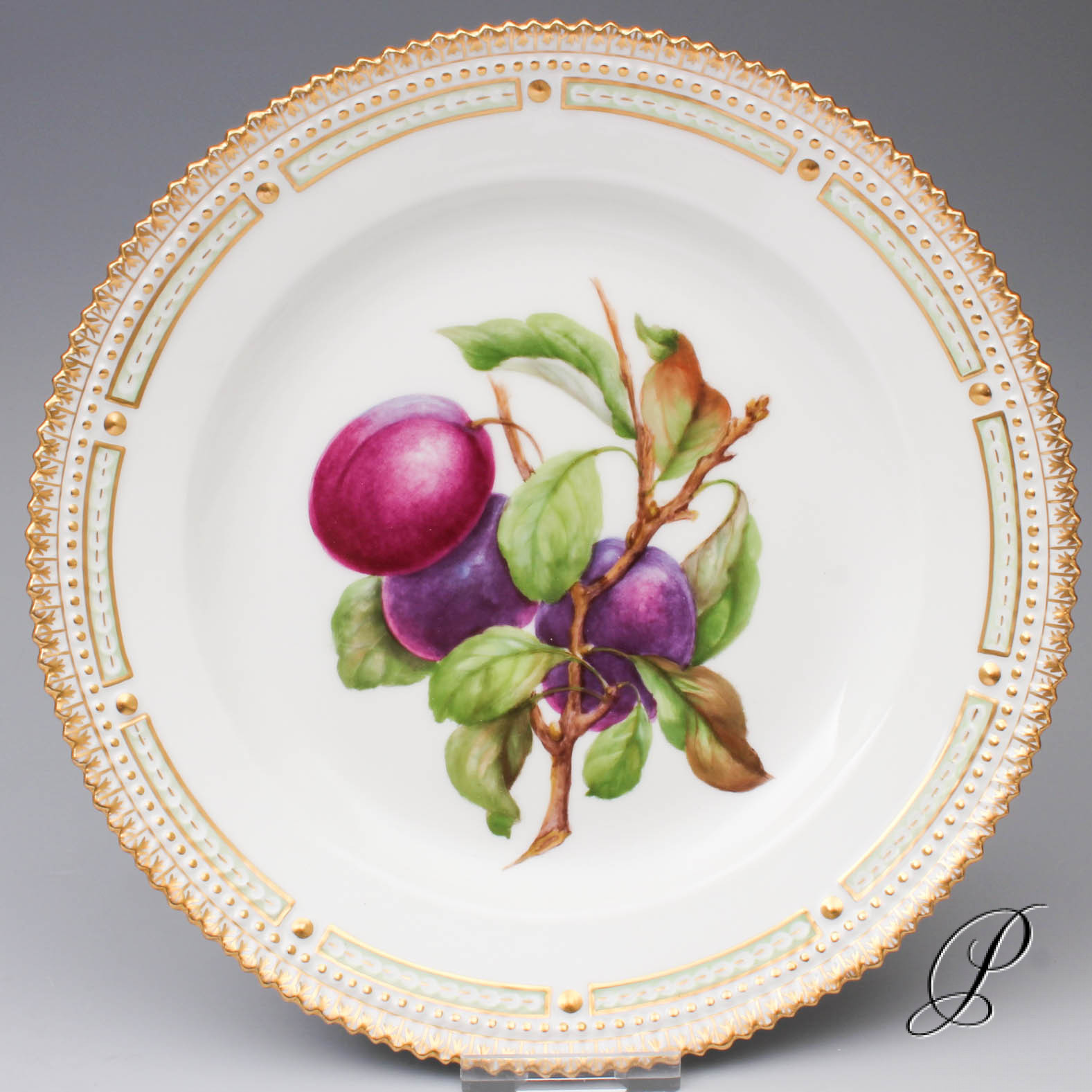 Royal Copenhagen – Flora Danica im Spiegel bemalt mit Obstmalerei – Pflaumen.