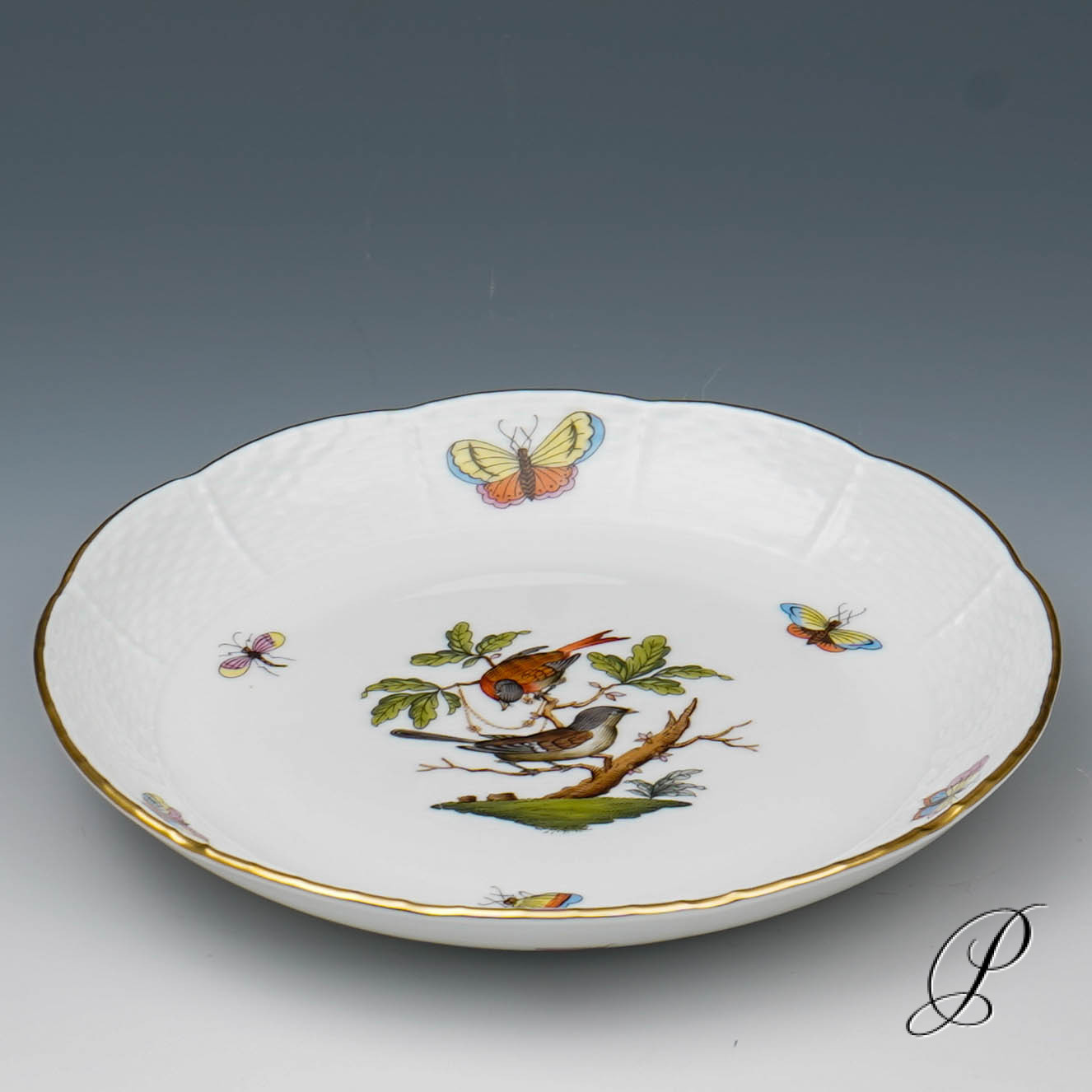 Das Dekor Rothschild strahlt Glück und Harmonie aus. Es beschwört die Stimmung des Frühlingserwachens der Natur herauf. Das Dekor ist mit naturalistisch und farbenprächtig gefiederten Vogelpaaren und Schmetterlingen verziert.