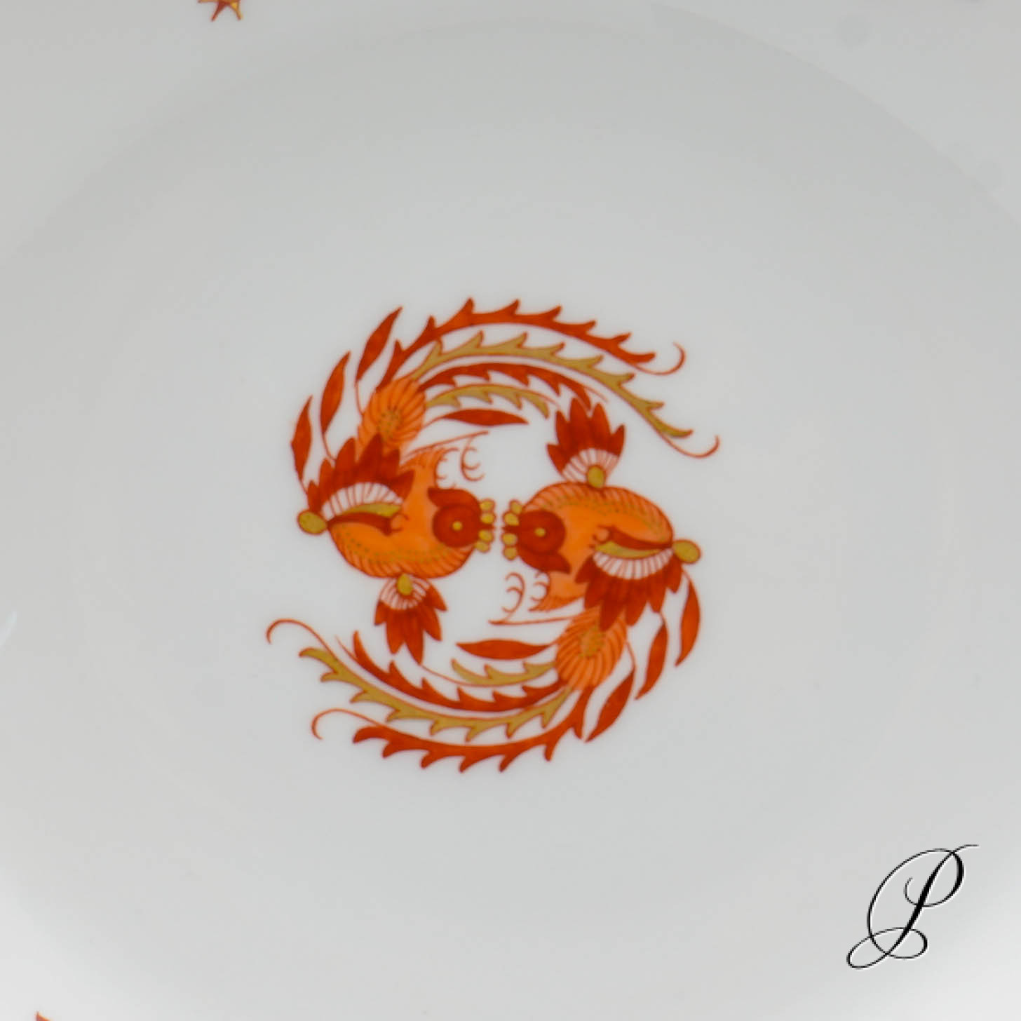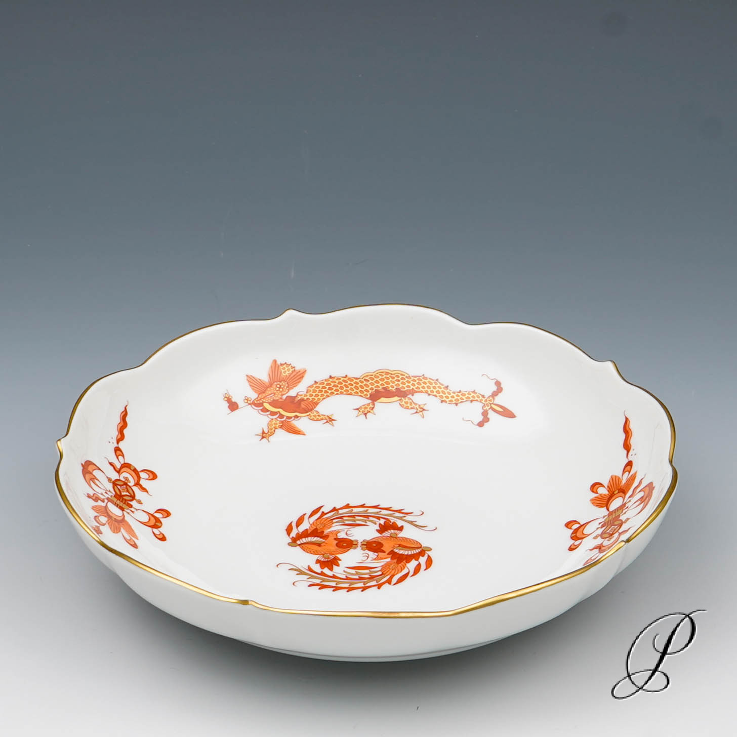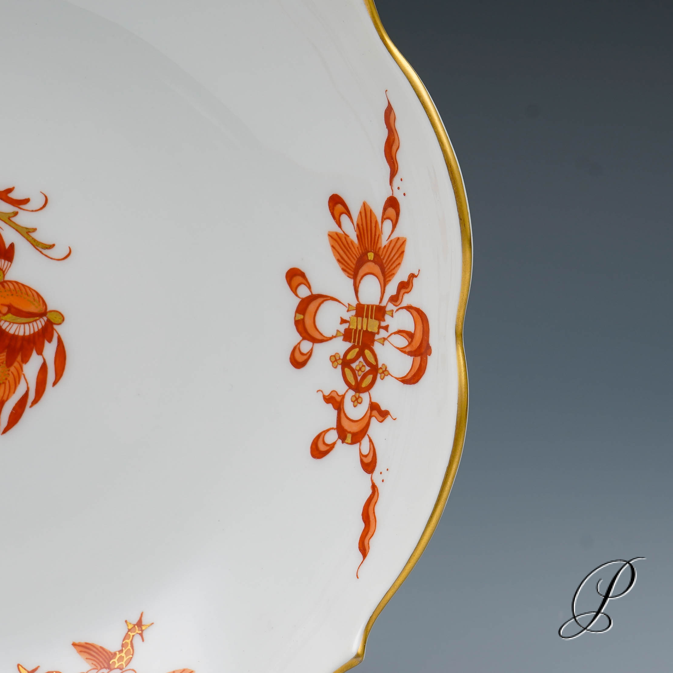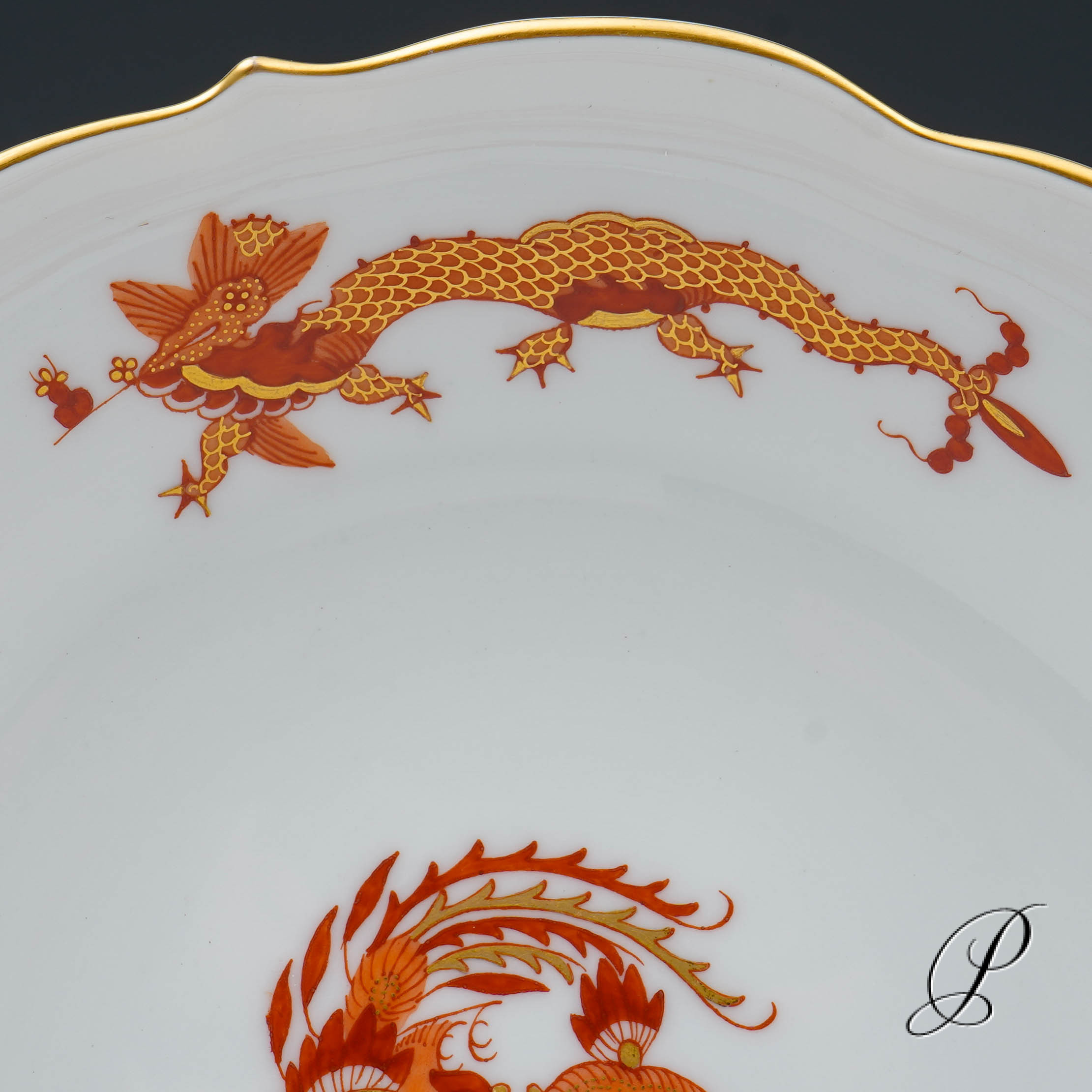 Dekor: reicher Drache rot, goldschattiert und Goldrand.