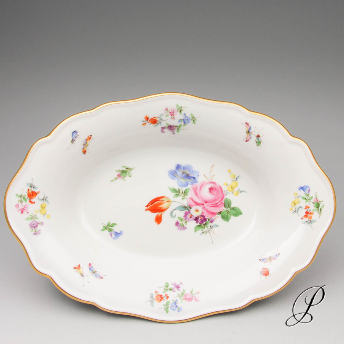 Dekor Blumen und Insekten bunt mit Goldrand. Dekornummer 220110.