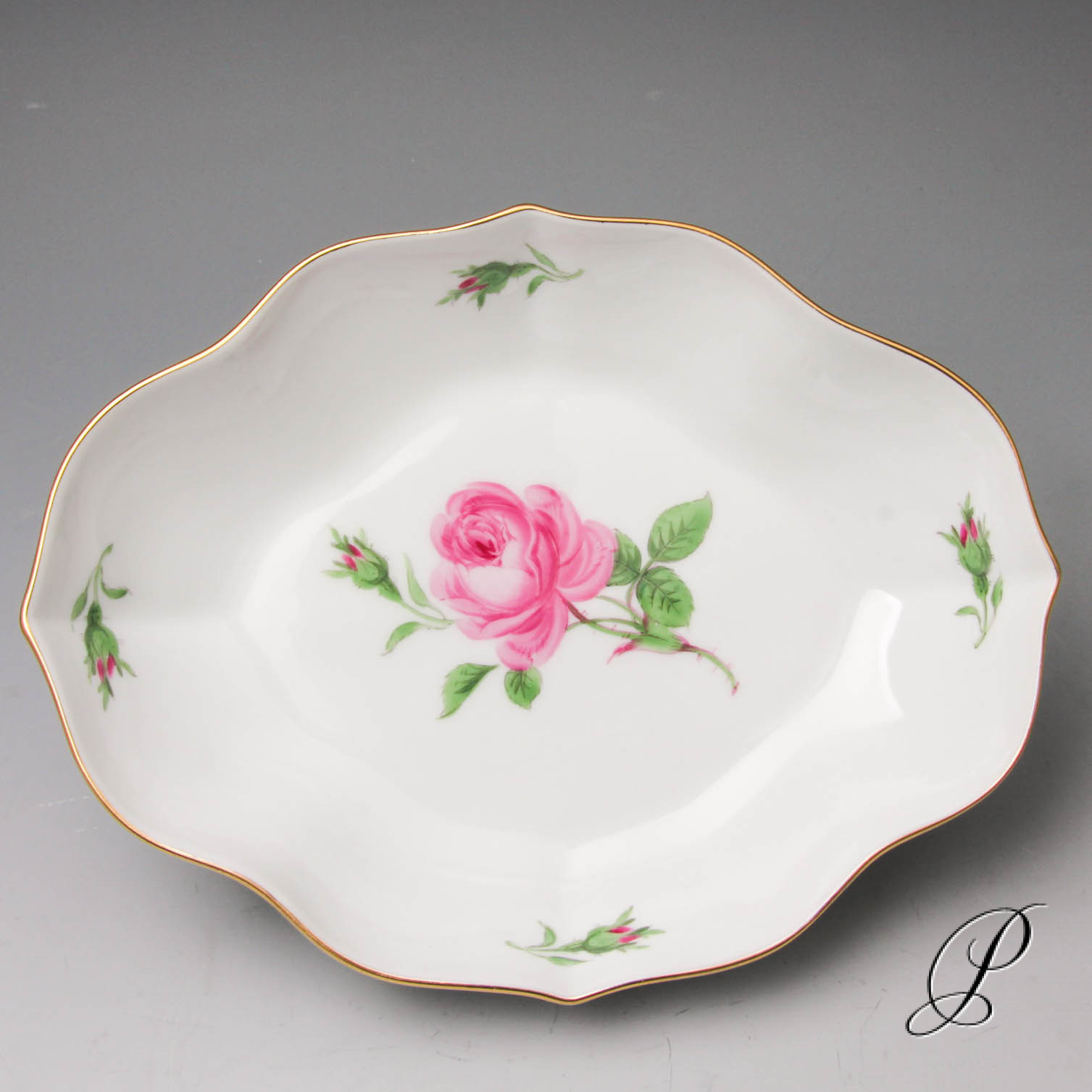Seit dem Altertum gilt die Rote Rose als Symbol von Liebe und Freude. Im christlichen verkörpert die Rose Unschuld und Reinheit. Auch die Farben der Rosen haben Ihre Symbolik. So steht das Purpur-Rot für Würde, Warheit und Gerechtigkeit. Das Gelb hingegen für Güte und Glaube. Das Meissener Dekor Rote Rose entstand im 19 Jahrhundert zur Biedermeierzeit und seit dem ersten Erscheinen erfreut es sich großer Beliebtheit. Mit nur einer Farbe kann der Maler durch unterschiedlich starkes auf Auftragen die Farbintensität der Rosenblüte beeinflussen.