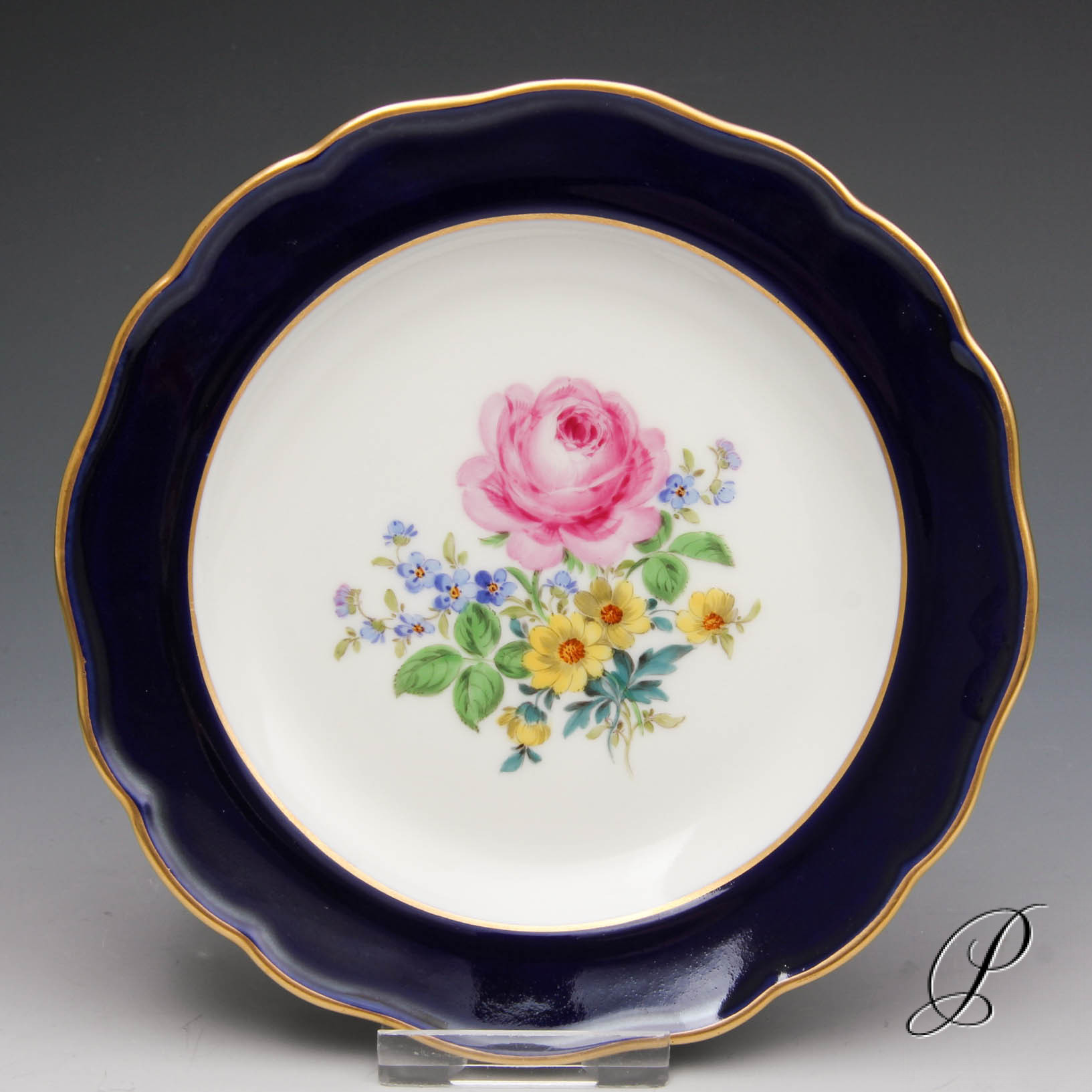 Bemalt im Dekor Blume3 mit kobaltblauem Reifen und Goldrand.