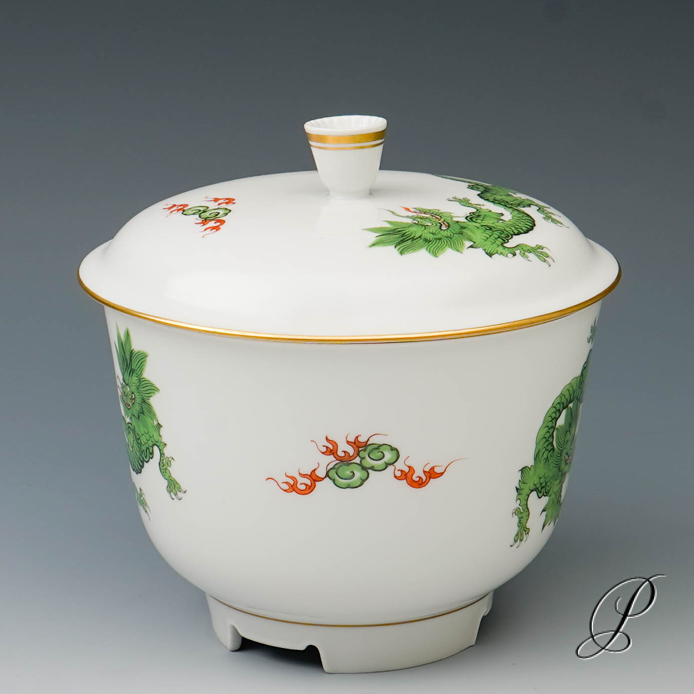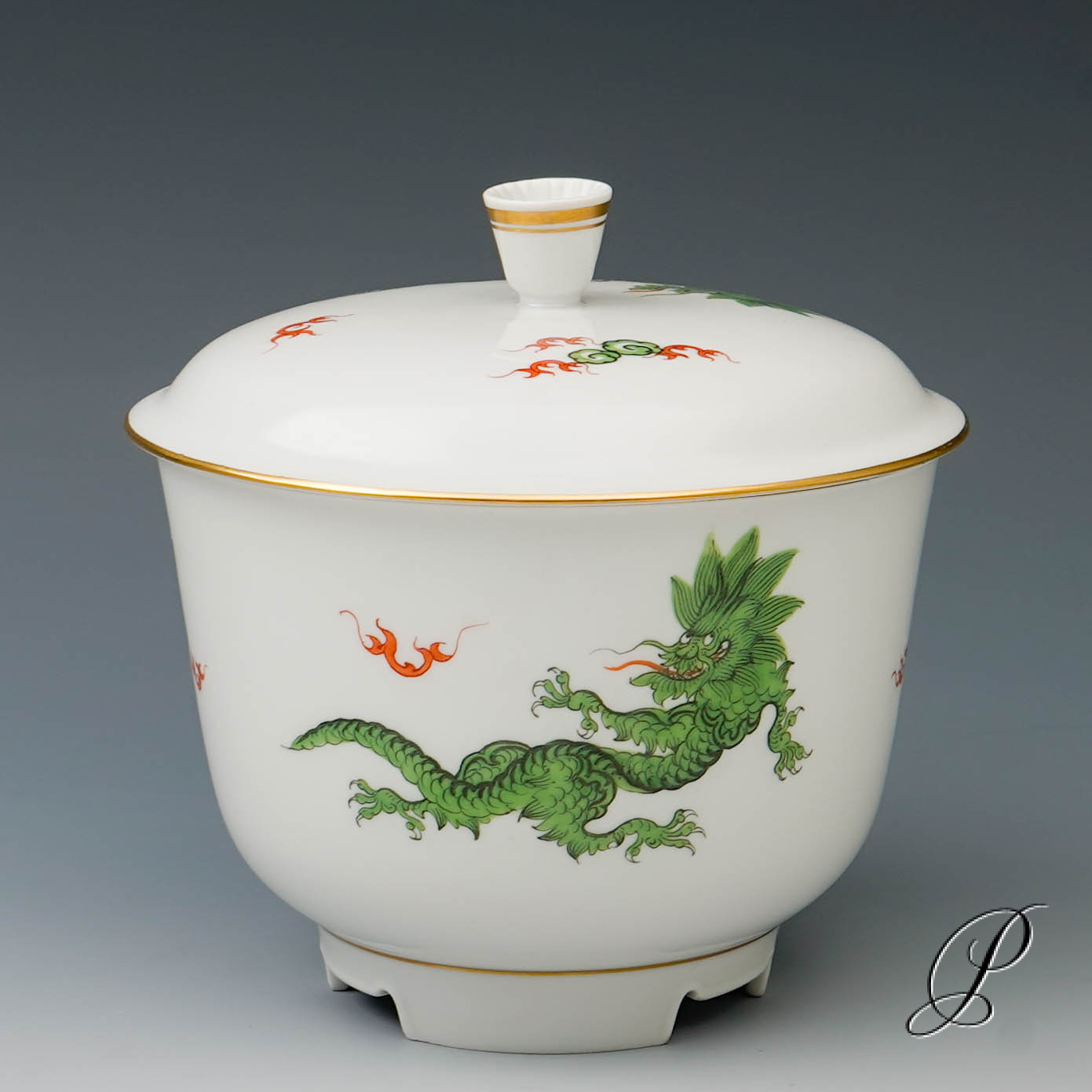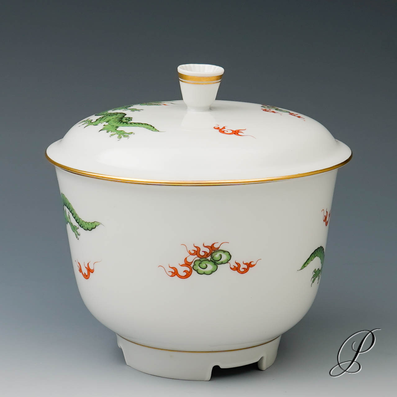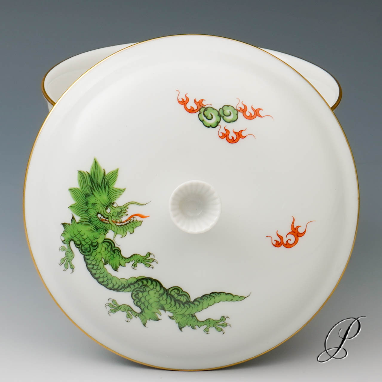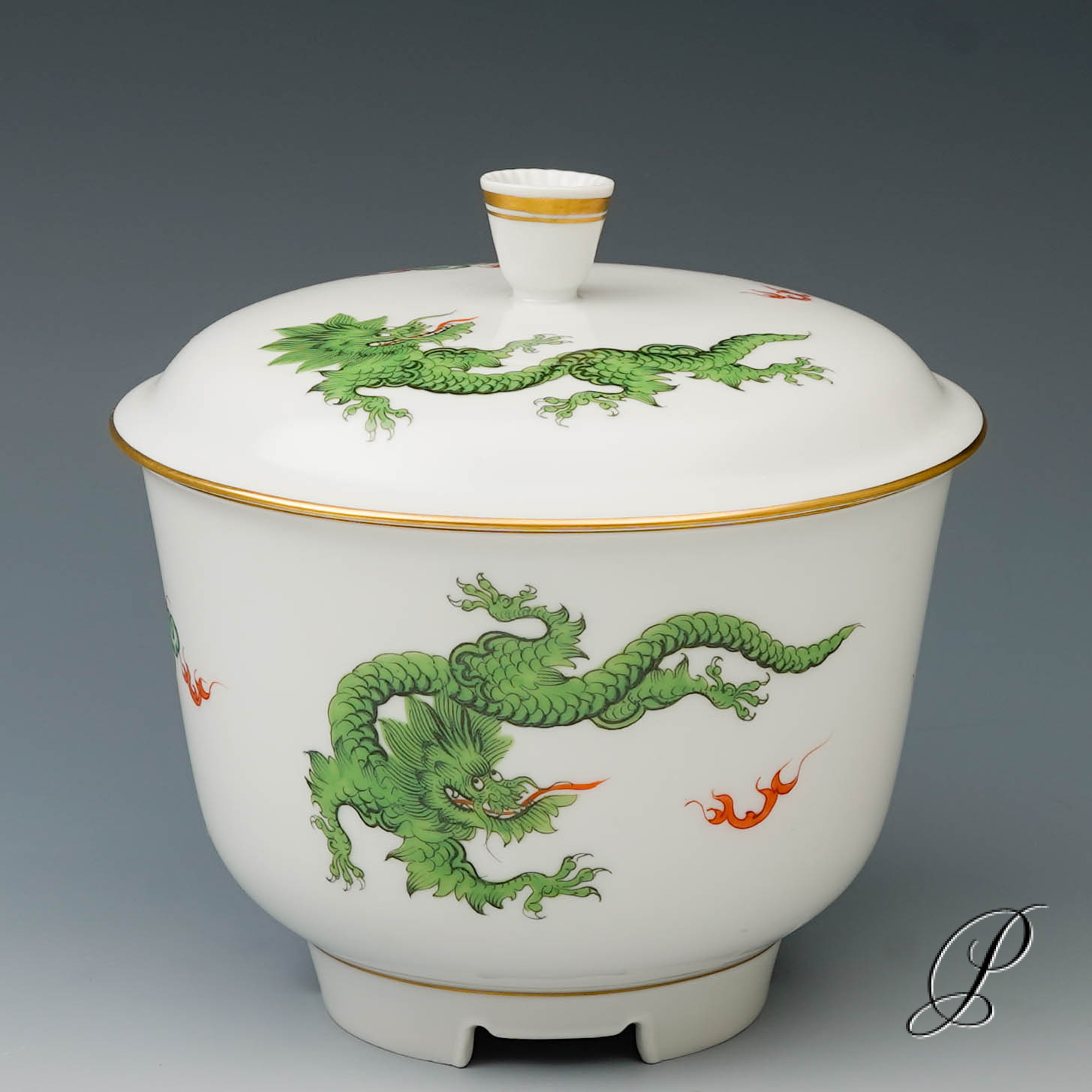 große Bonboniere / Keksdose Meissen 1.Wahl Mingdrache grün – Art Deco –