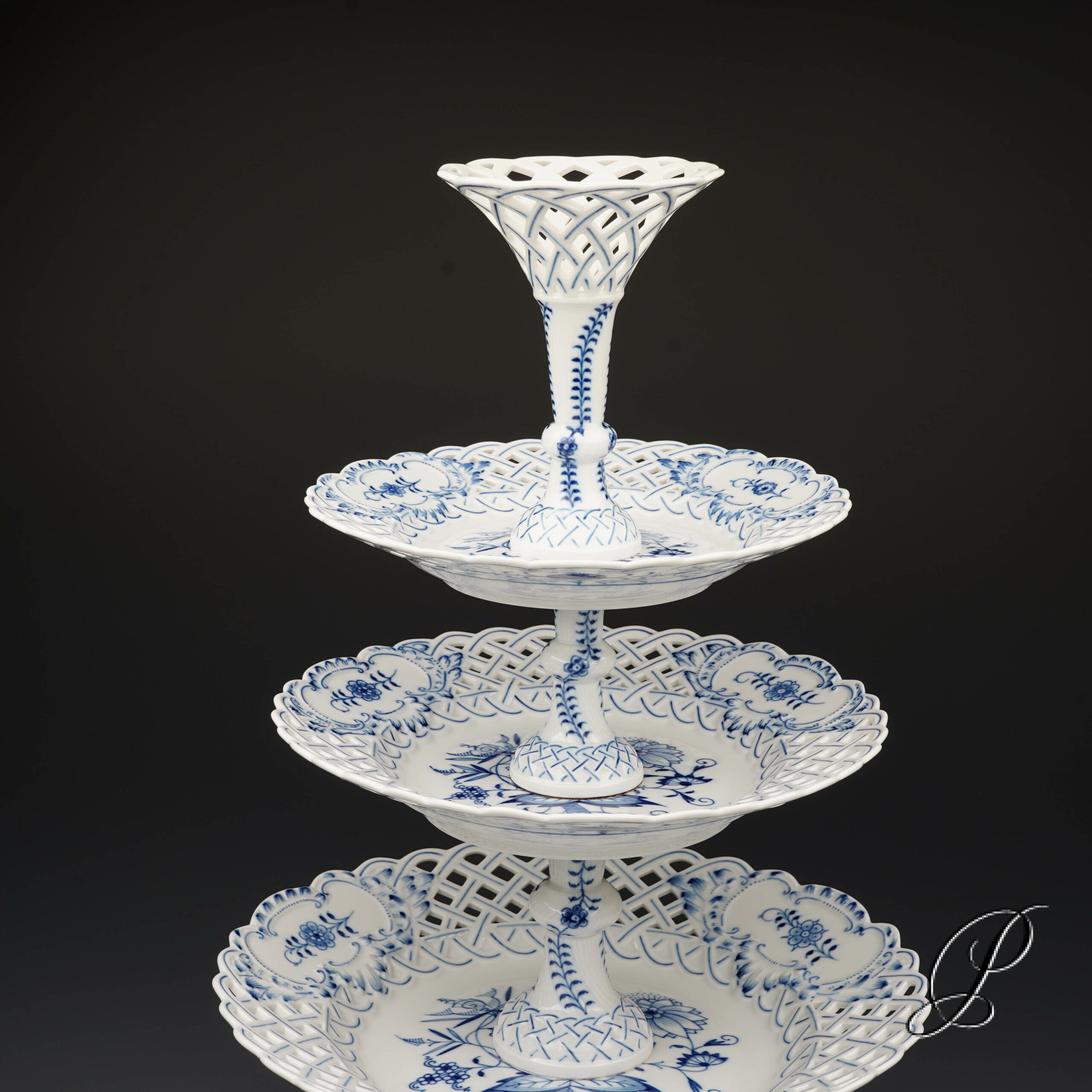 Angeboten wird eine große Etagere aus Meissner Porzellan.