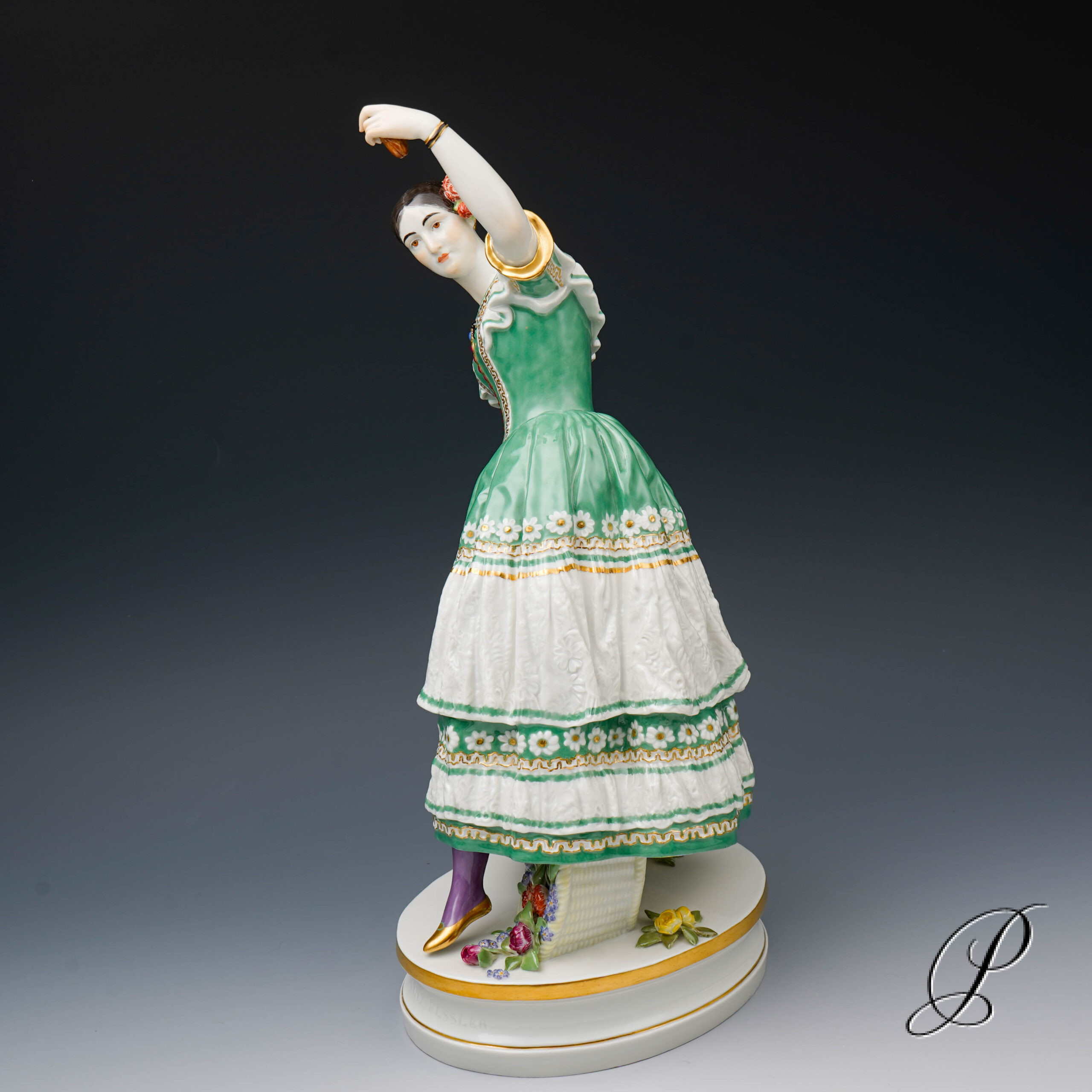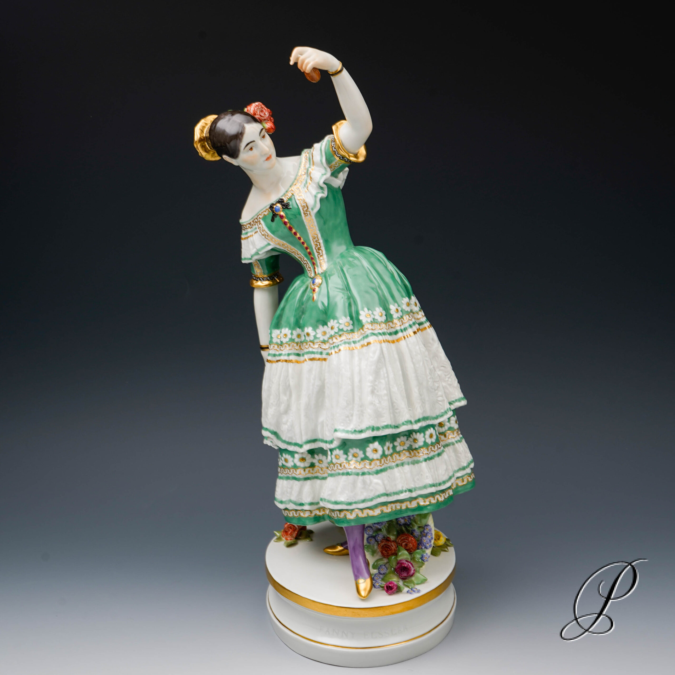 Jean Auguste Barre (1811 Paris -1896 Paris) Bildhauer und Maler. Studierte an der Akademie in Paris. Arbeitete in Bronze, Marmor und Elfenbein. Für Meissen schuf er zwei Figuren, die Tänzerin Fanny Elssler und die Tänzerin Marie Taglioni.