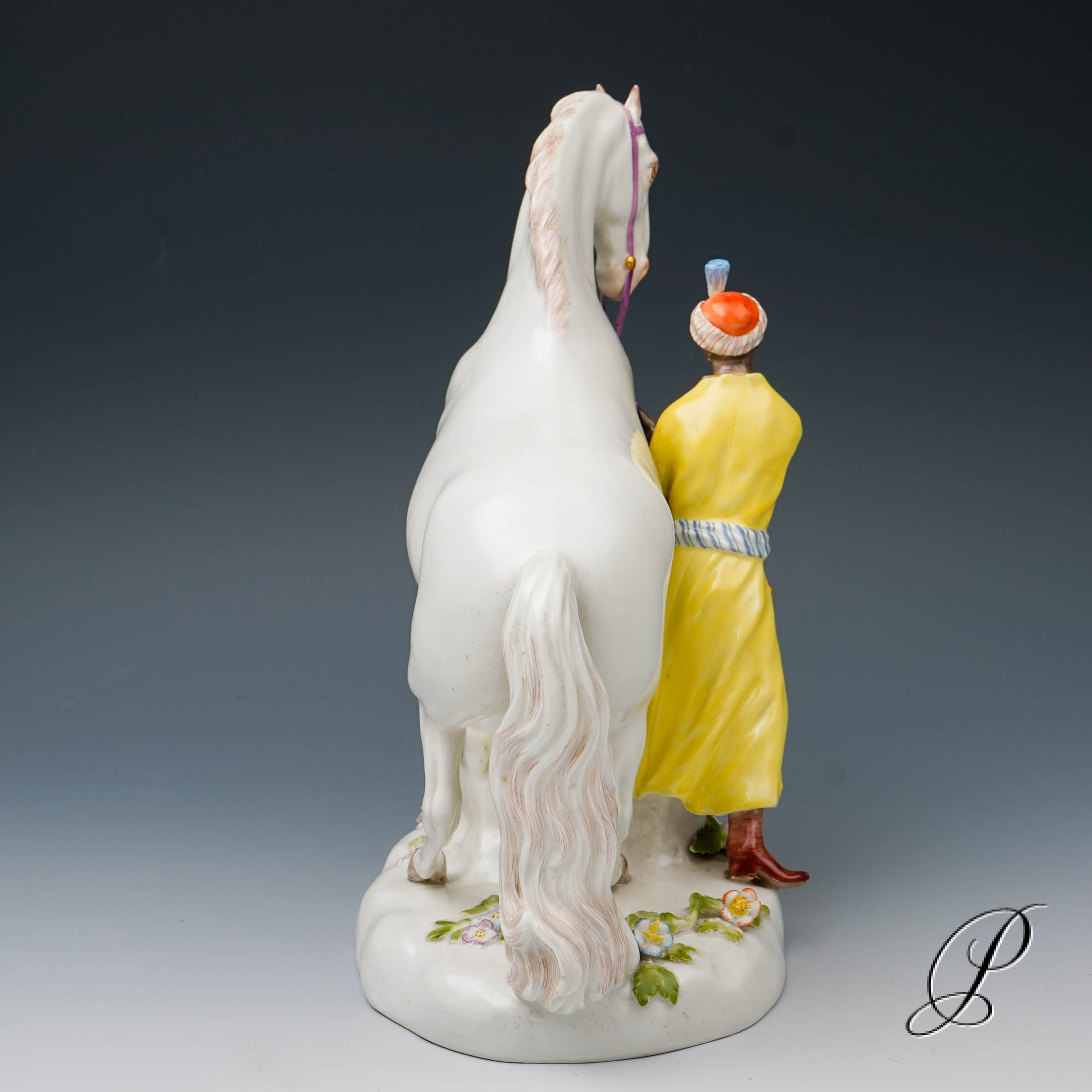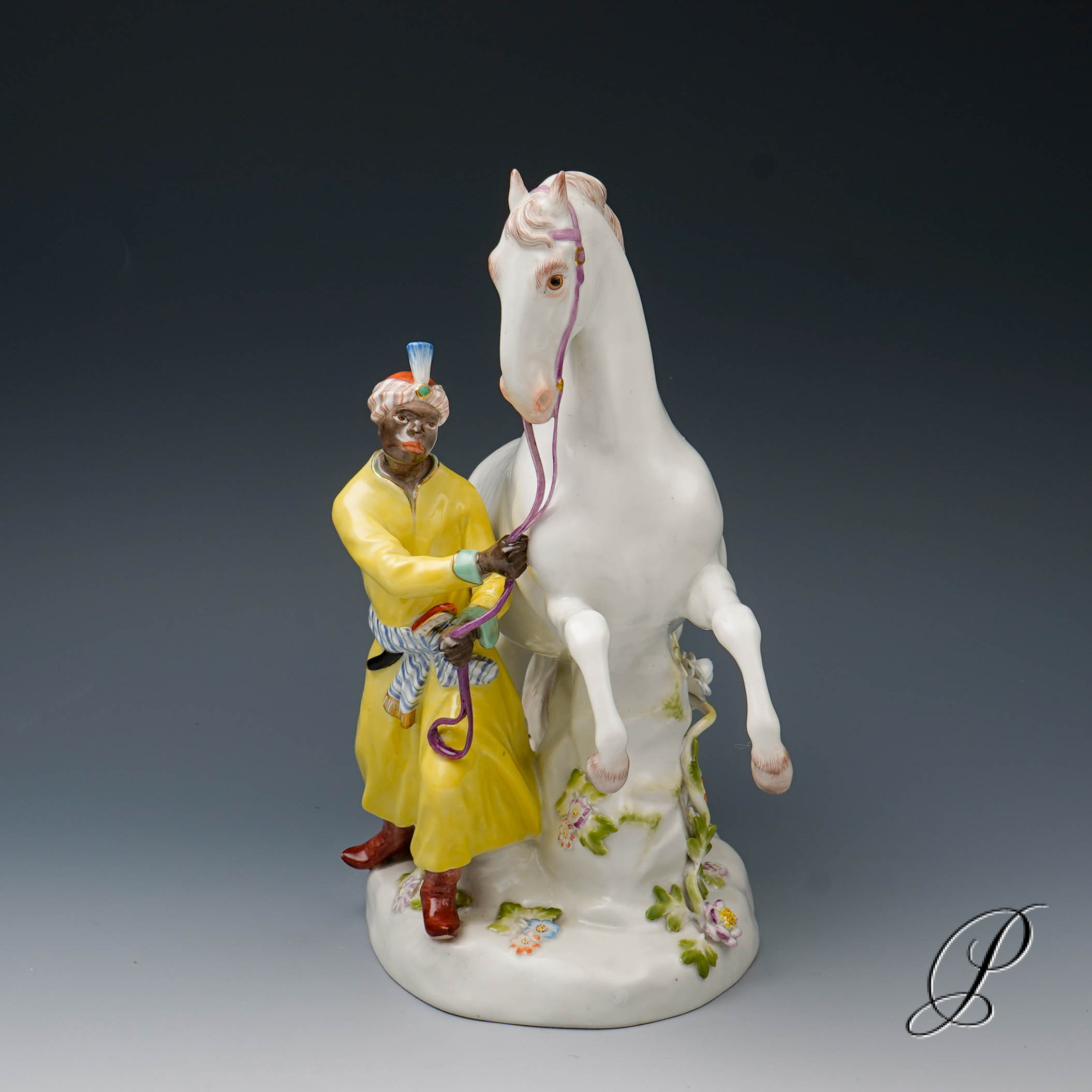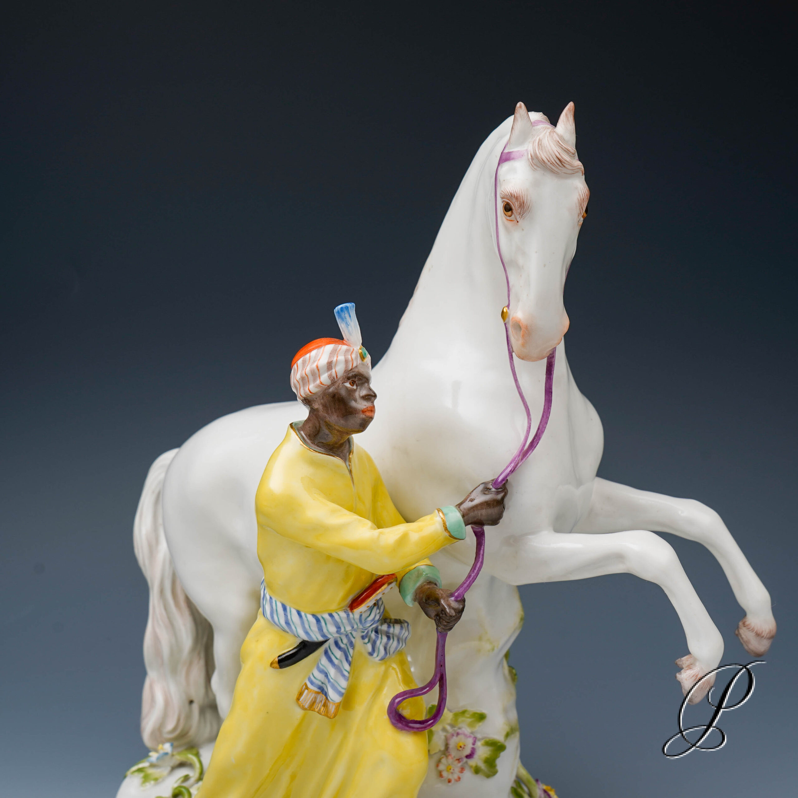 Darstellung: Pferdebändiger – Türke mit Schimmel.