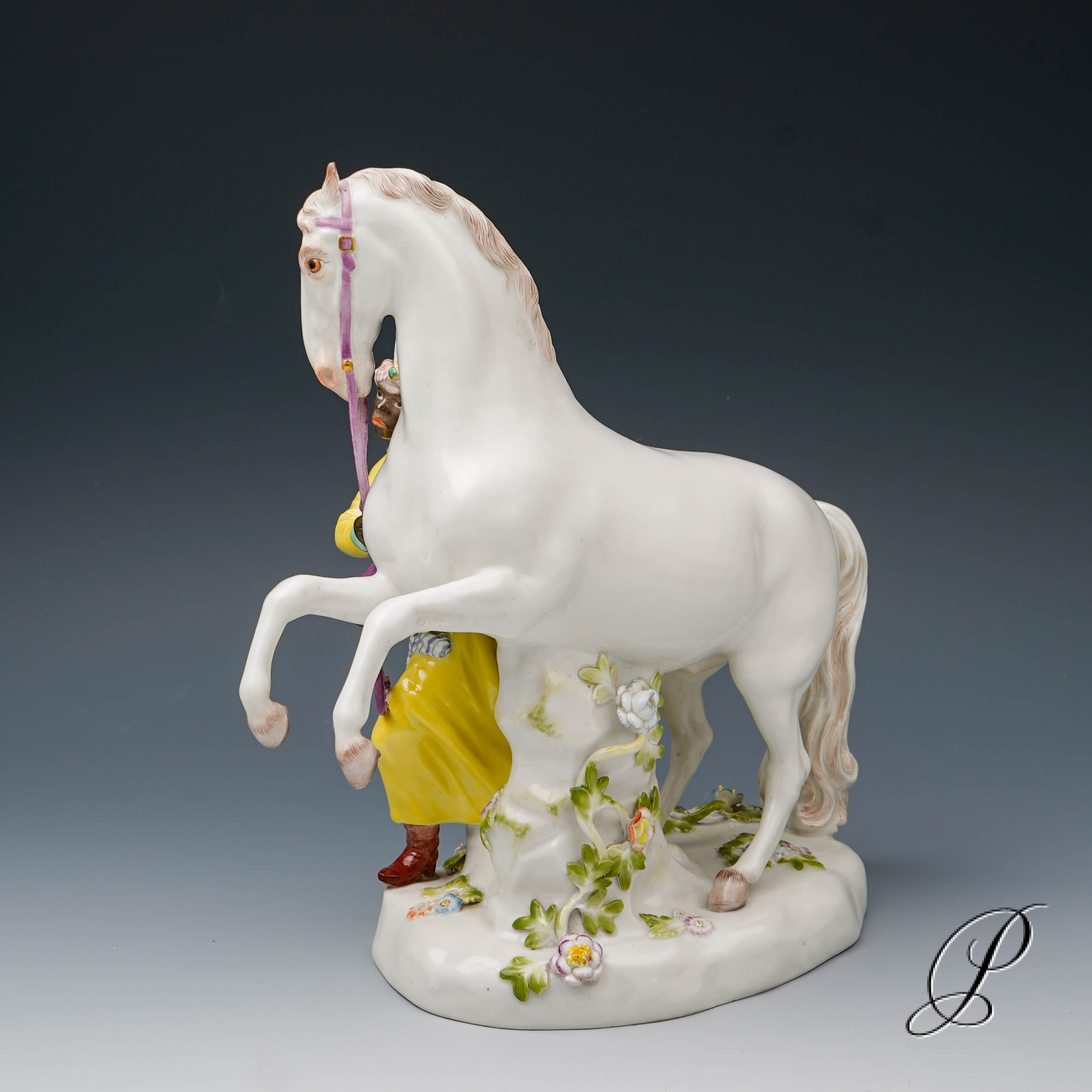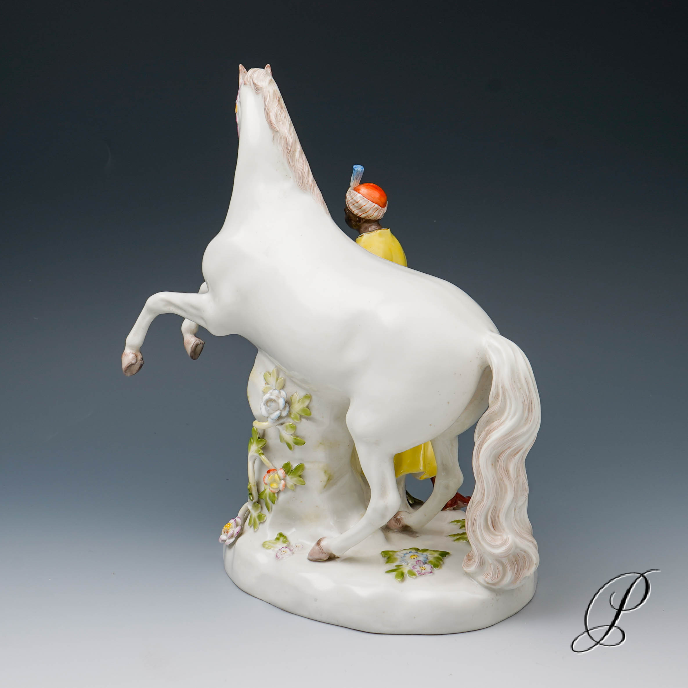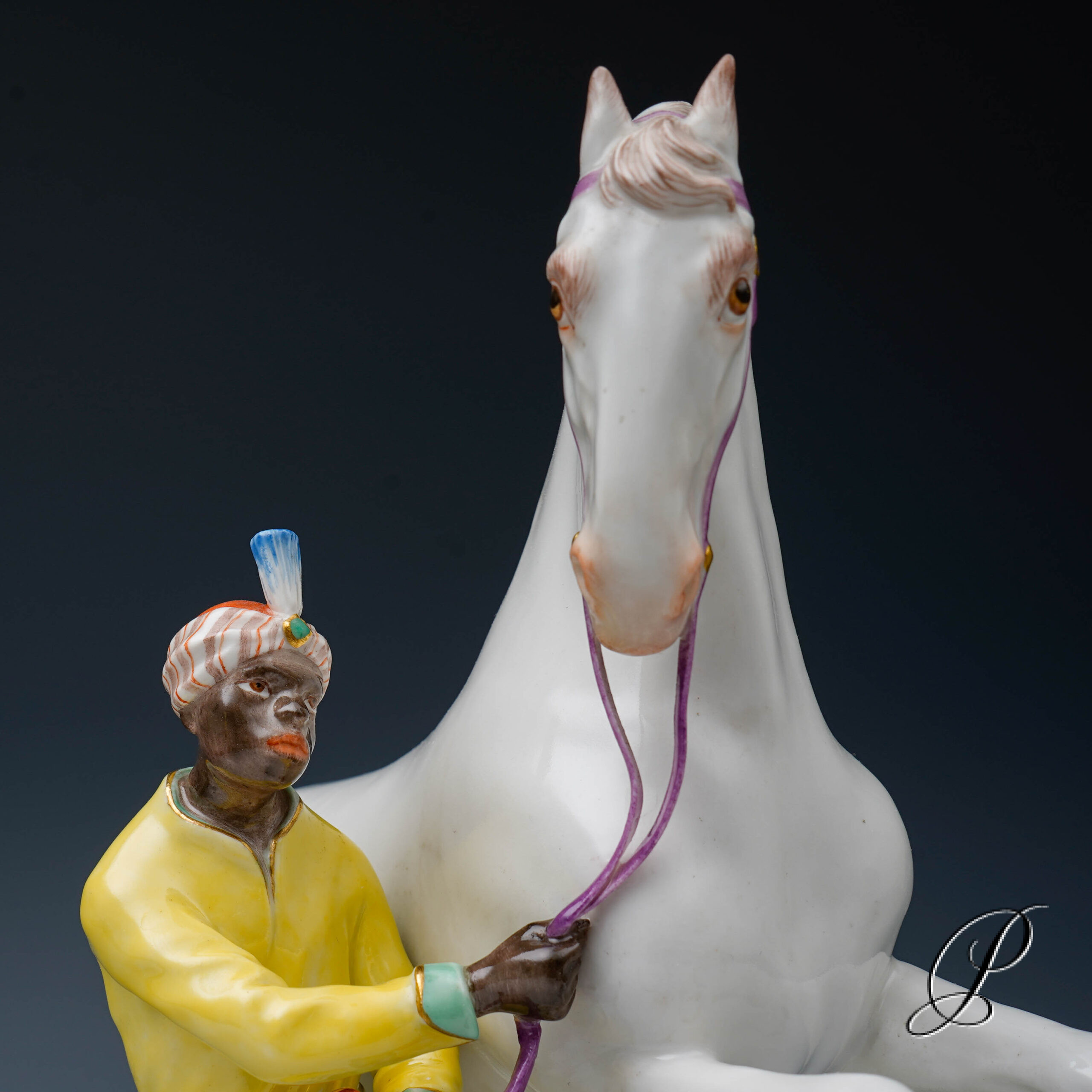 Darstellung: Pferdebändiger – Türke mit Schimmel.