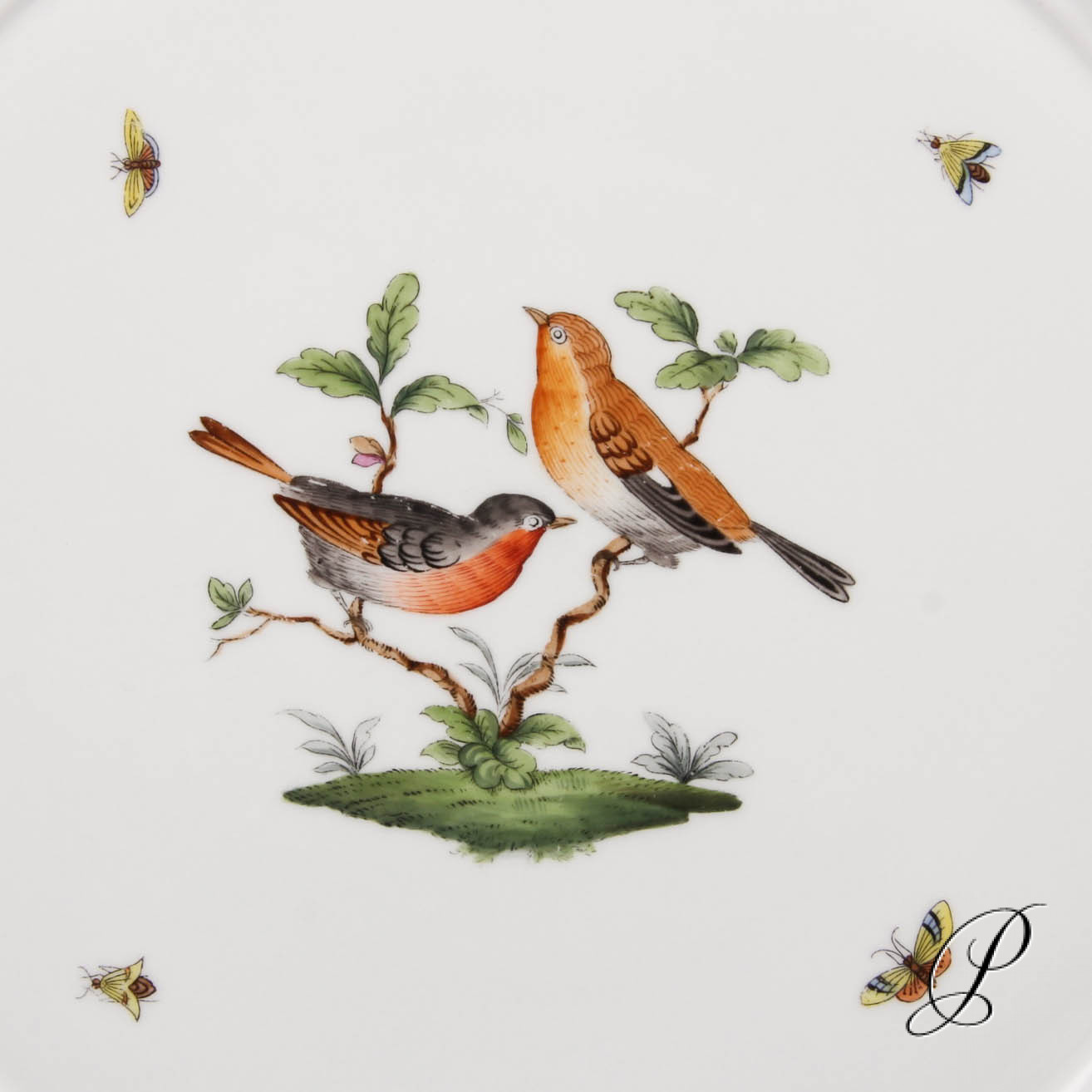 Das Dekor Rothschild strahlt Glück und Harmonie aus. Es beschwört die Stimmung des Frühlingserwachens der Natur herauf. Das Dekor ist mit naturalistisch und farbenprächtig gefiederten Vogelpaaren und Schmetterlingen verziert.