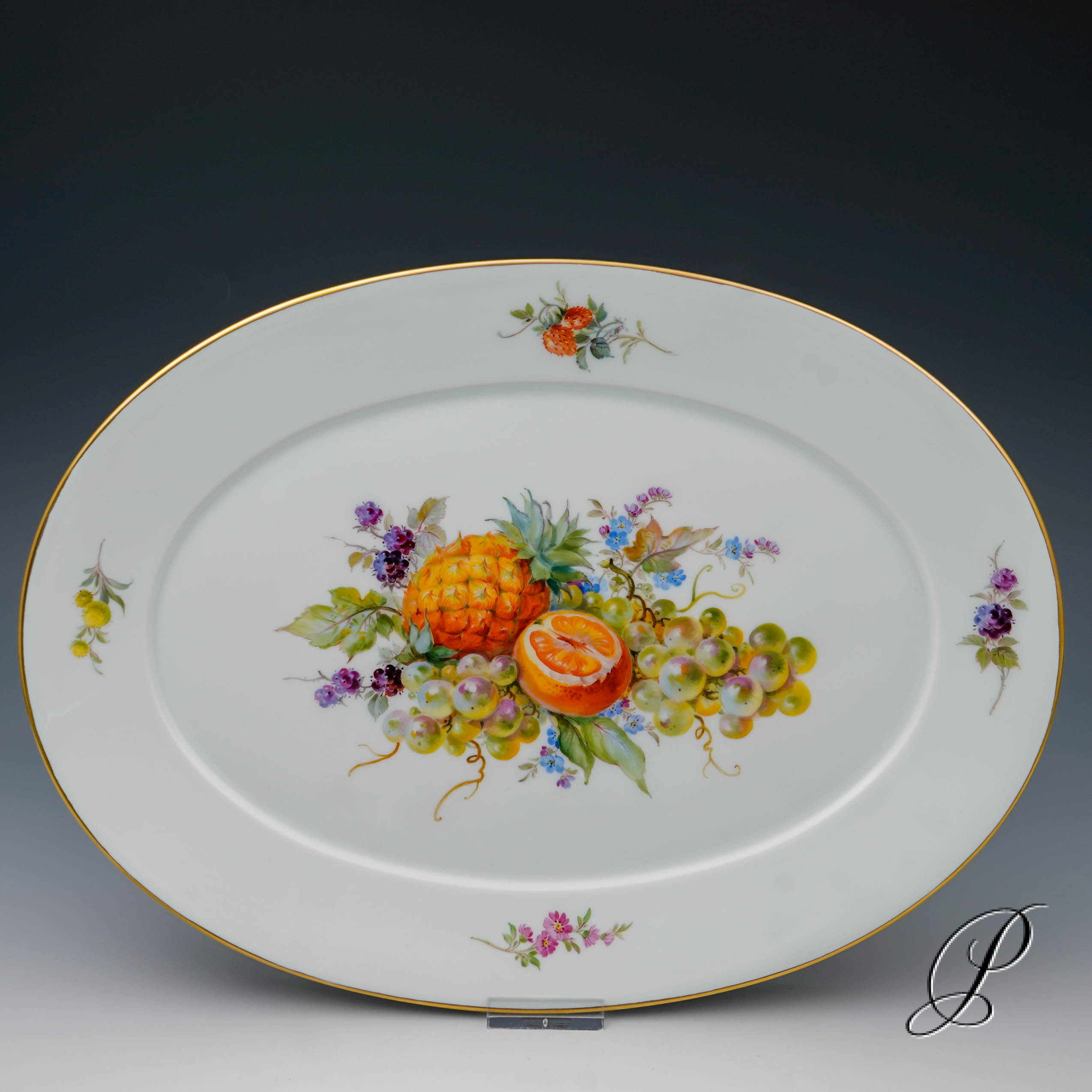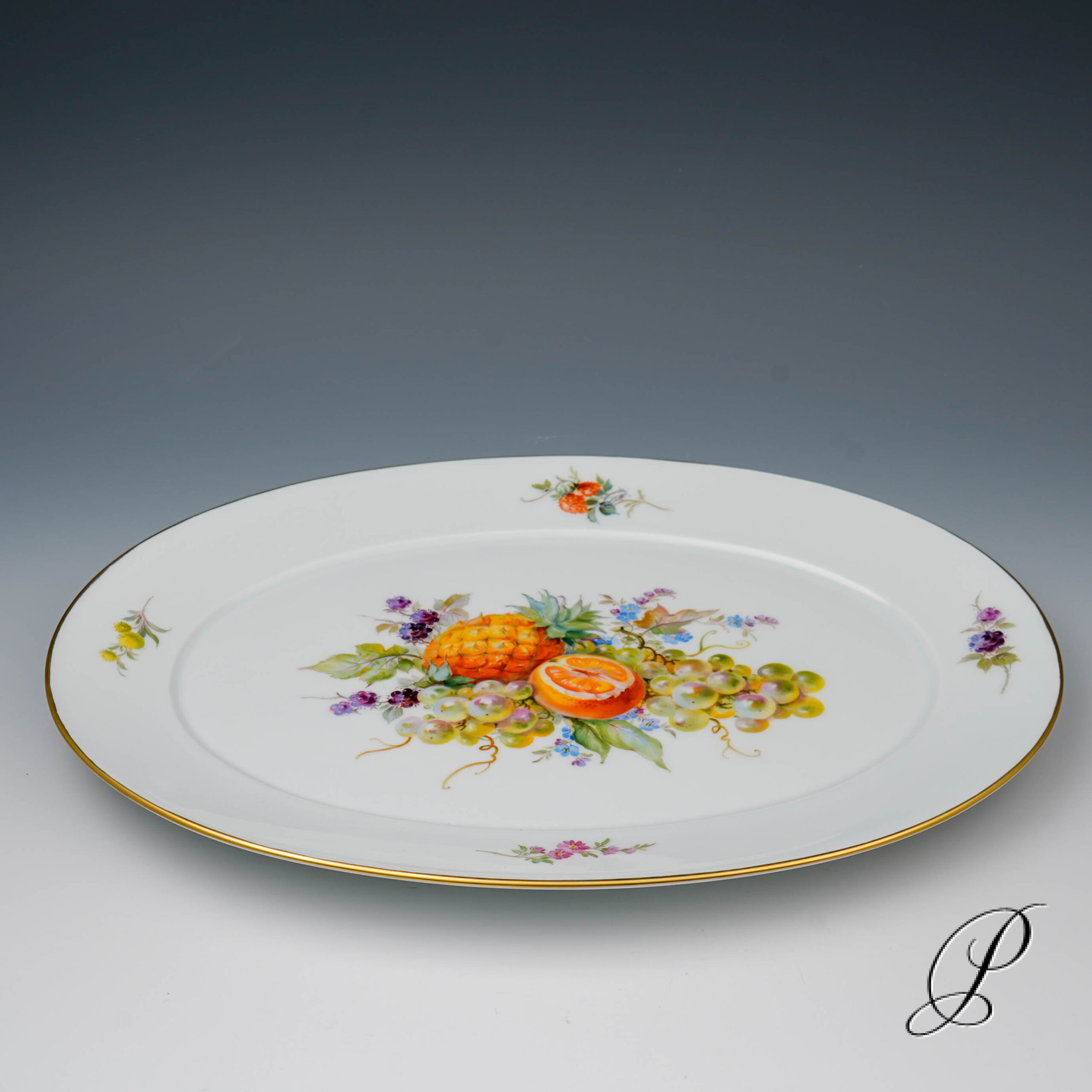 Ins Angebot kommt eine große ovale Platte aus Meissner Porzellan.