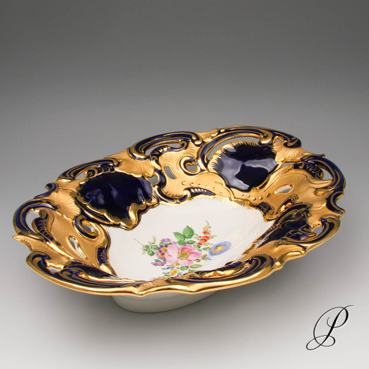 Ein sehr edles Stück mit Prunkvergoldung und kobaltblauer Fondmalerei.