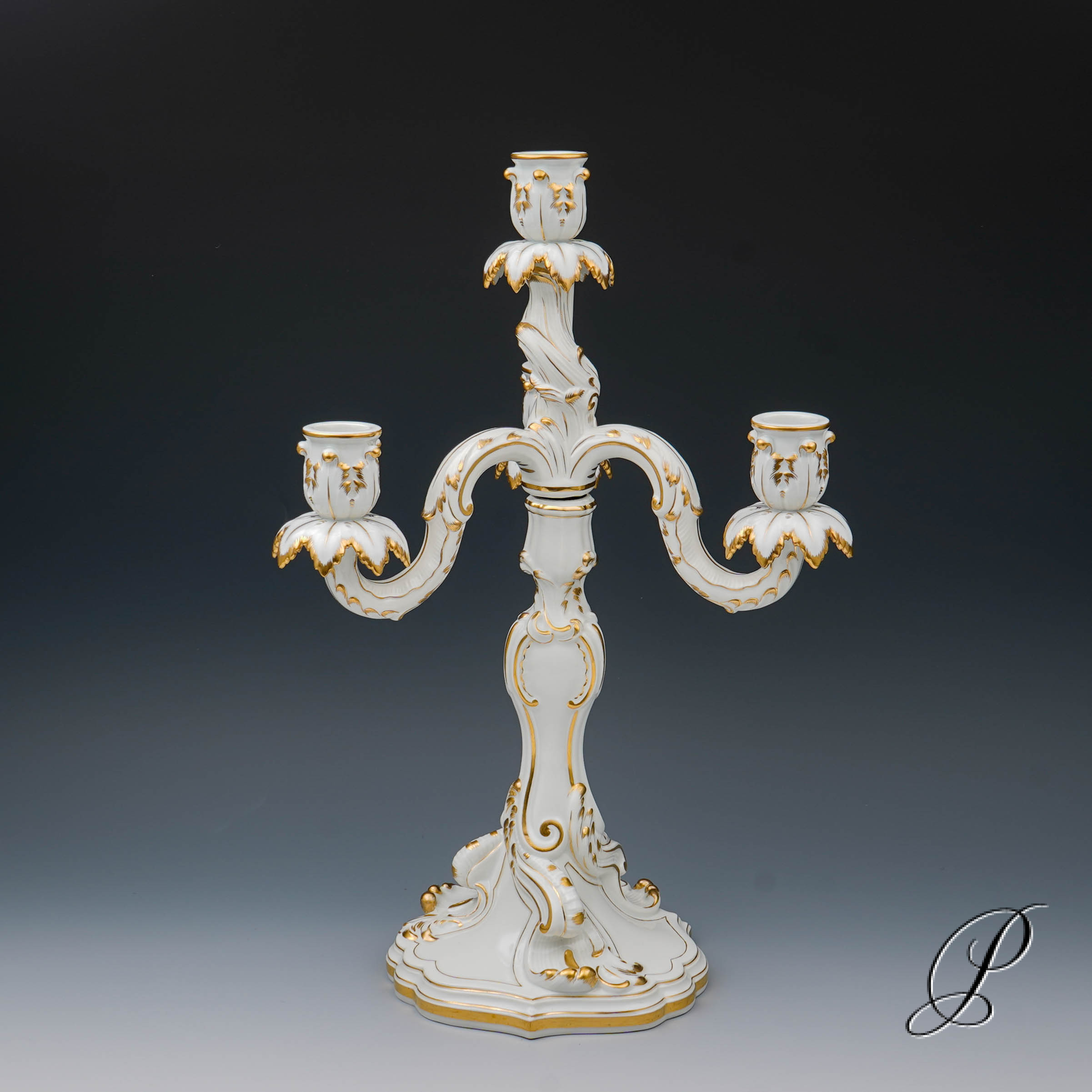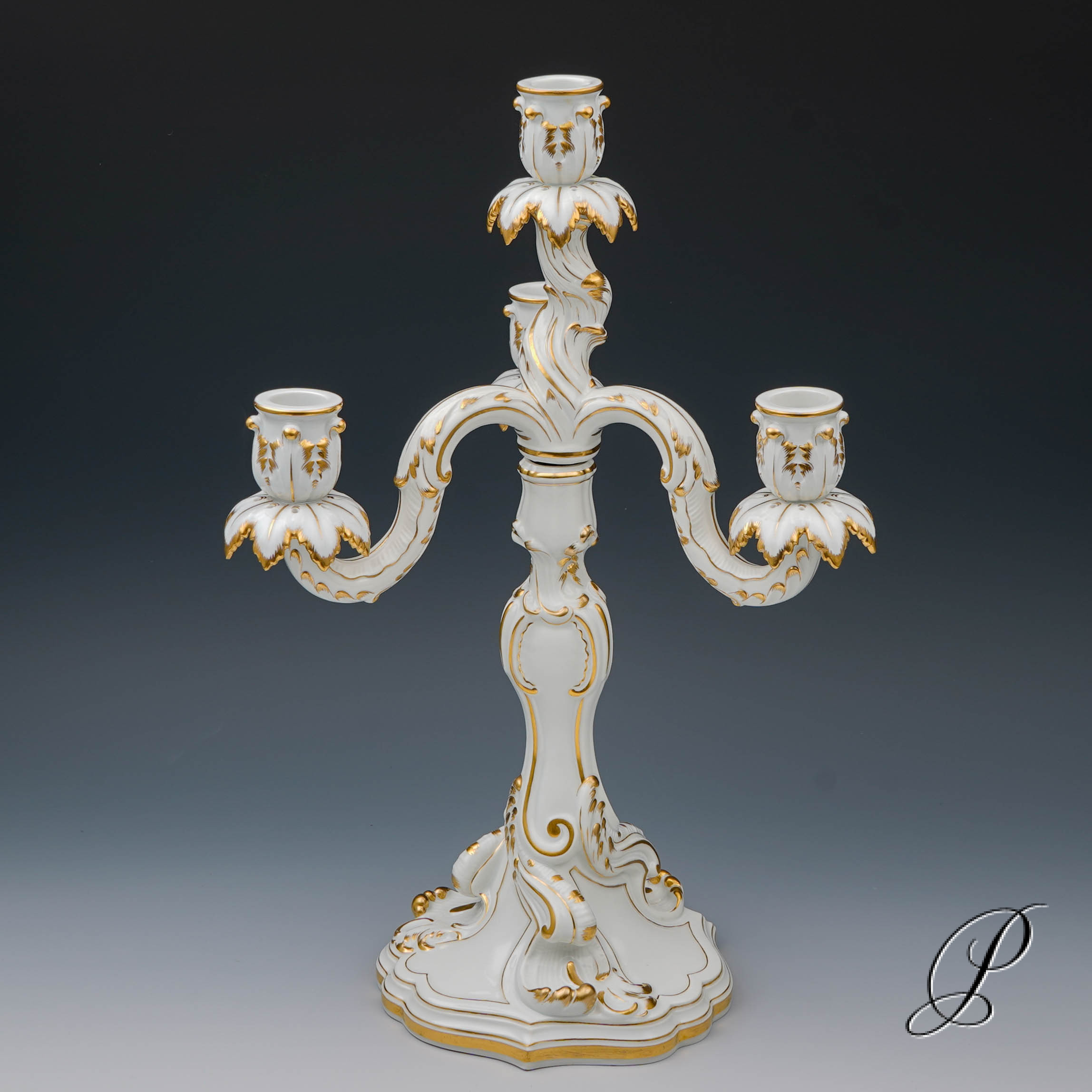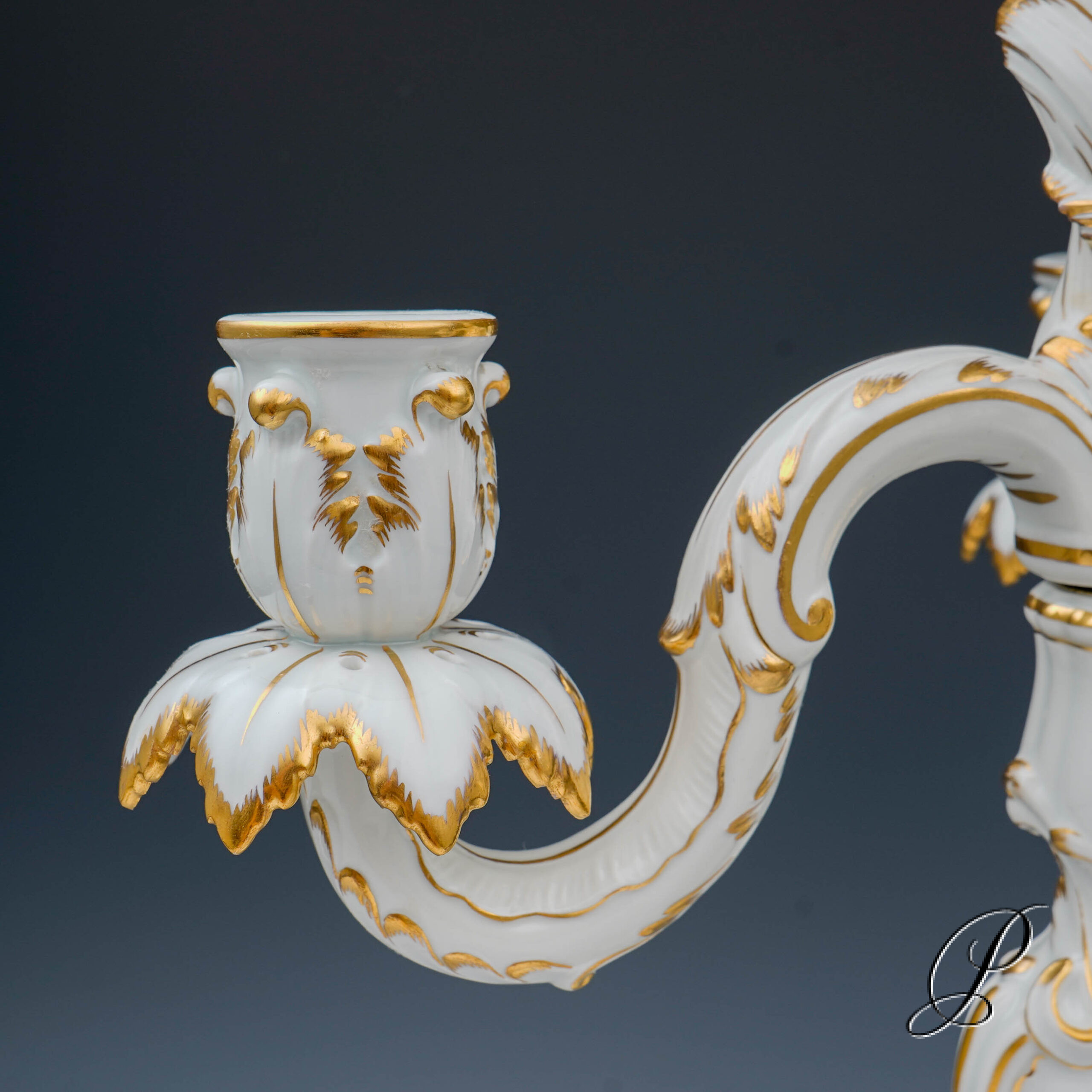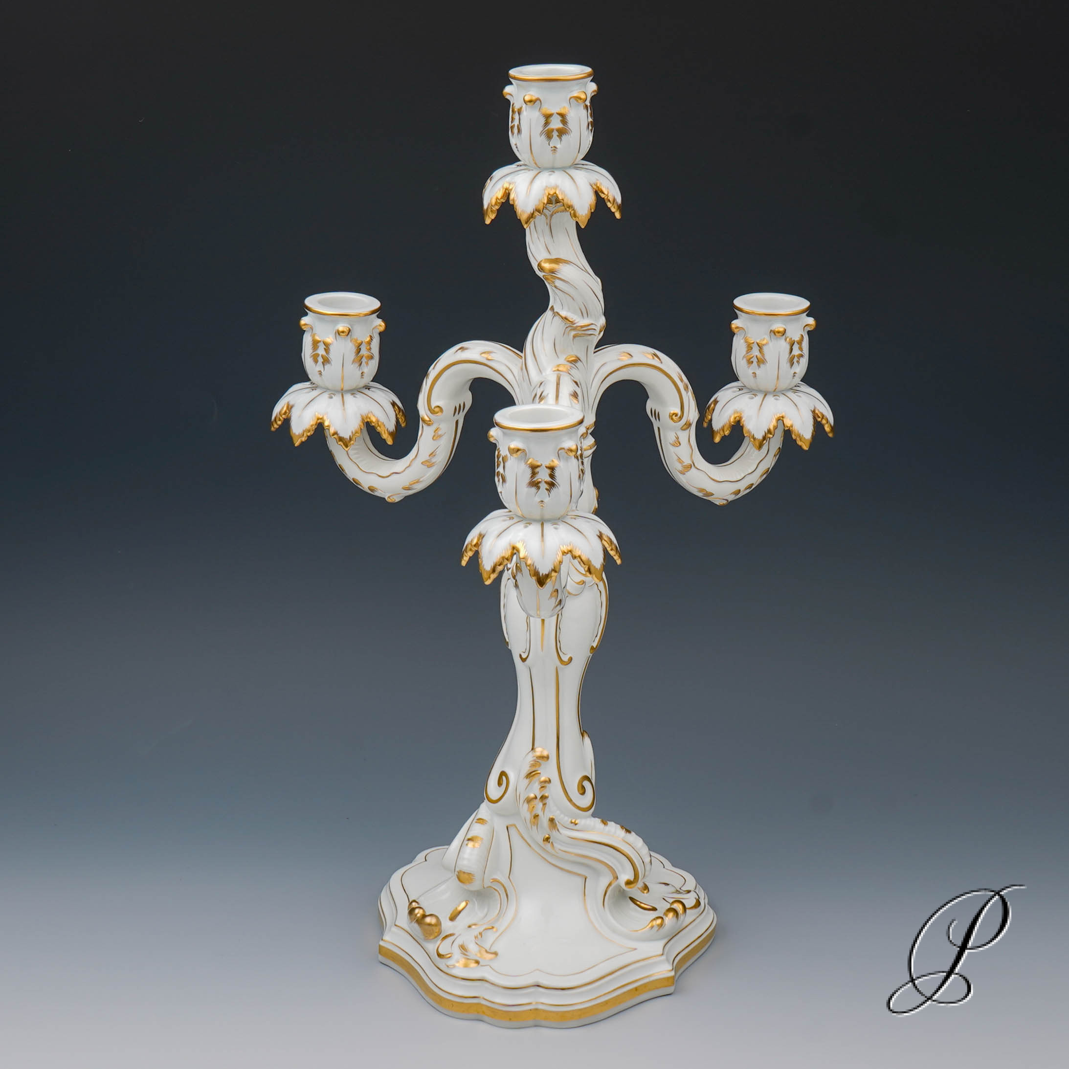 Angeboten wird ein vierflammiger Leuchter aus Meissner Porzellan.