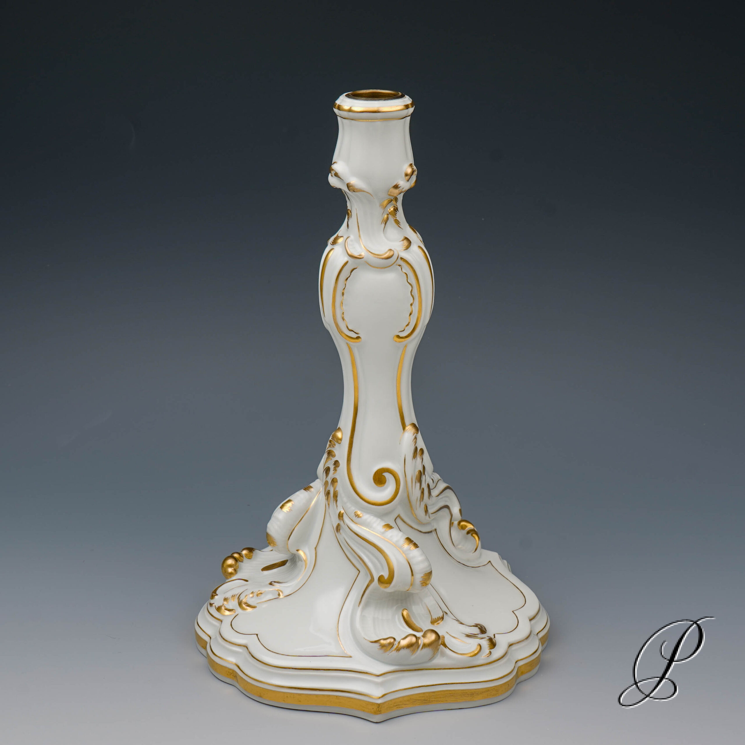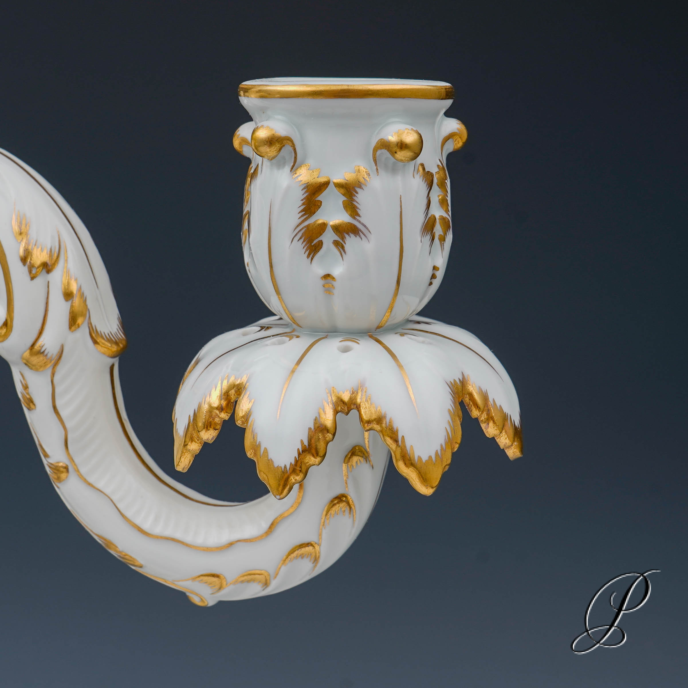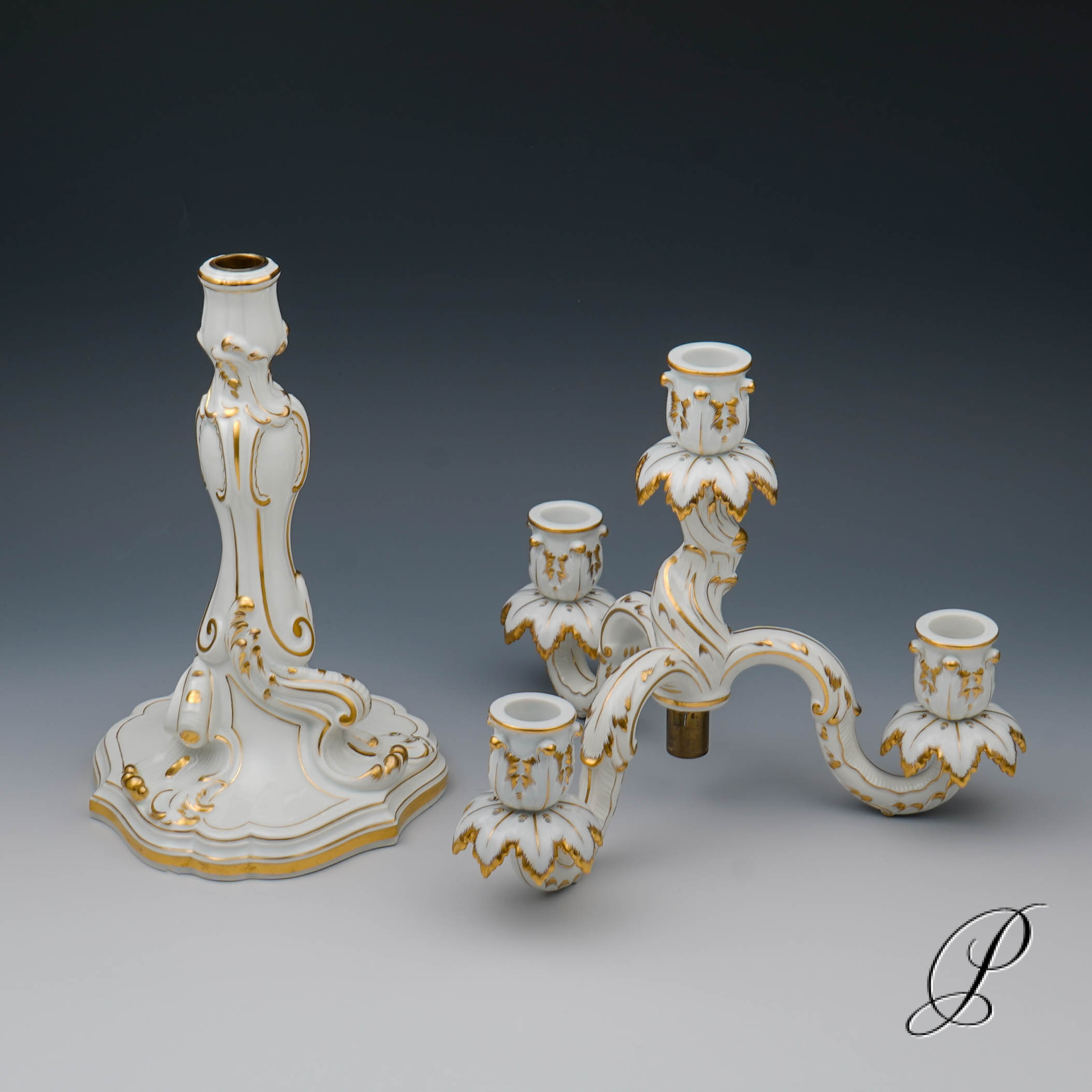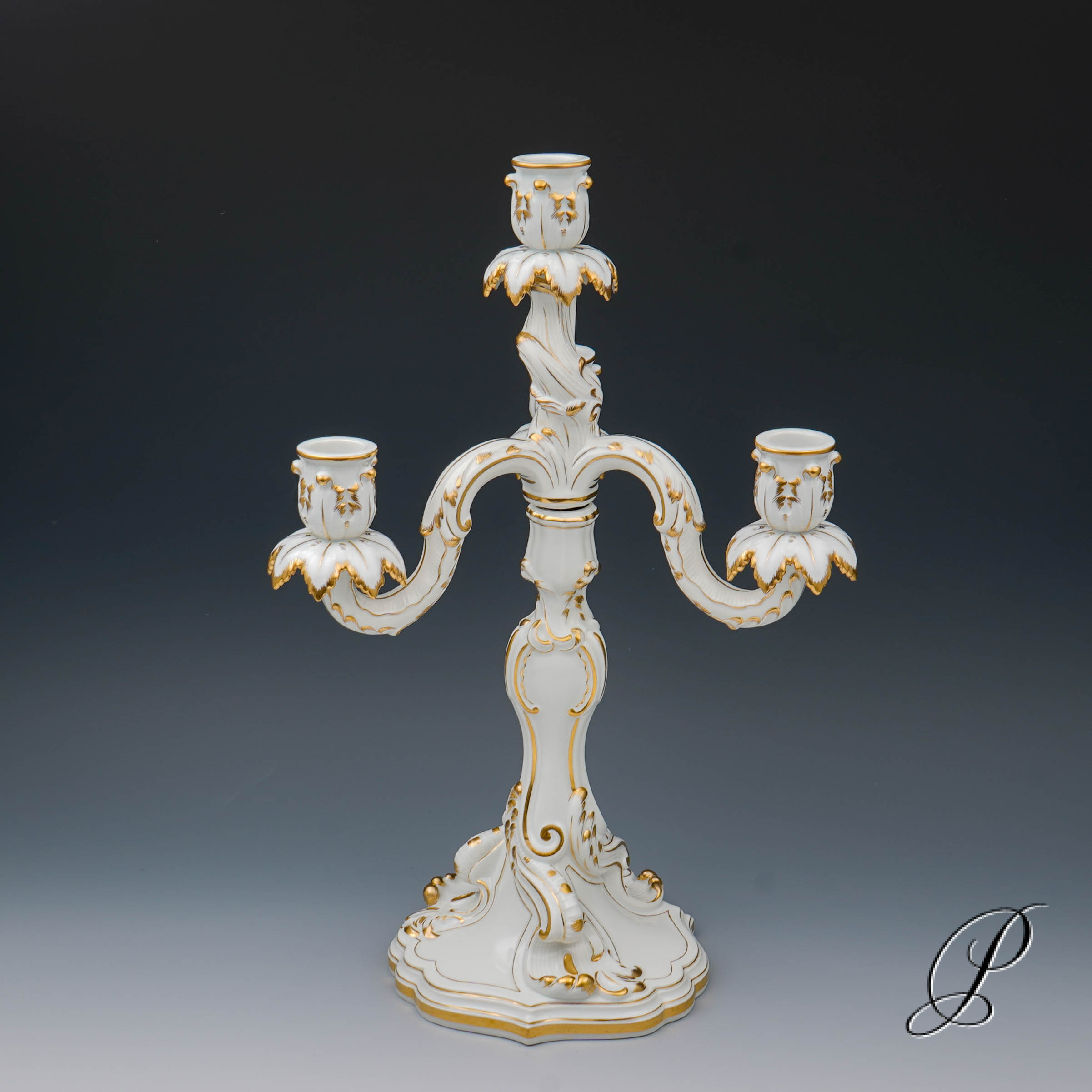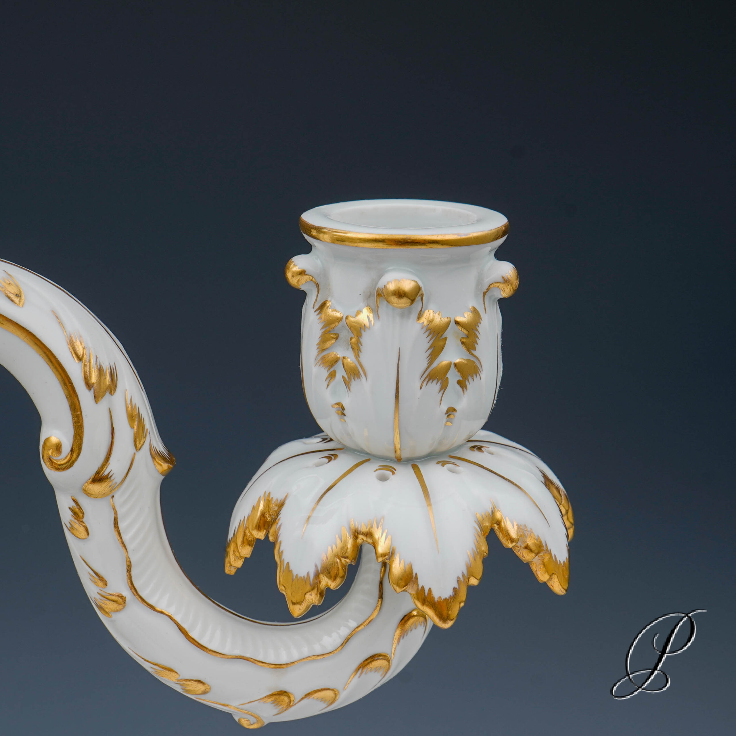 Angeboten wird ein vierflammiger Leuchter aus Meissner Porzellan.