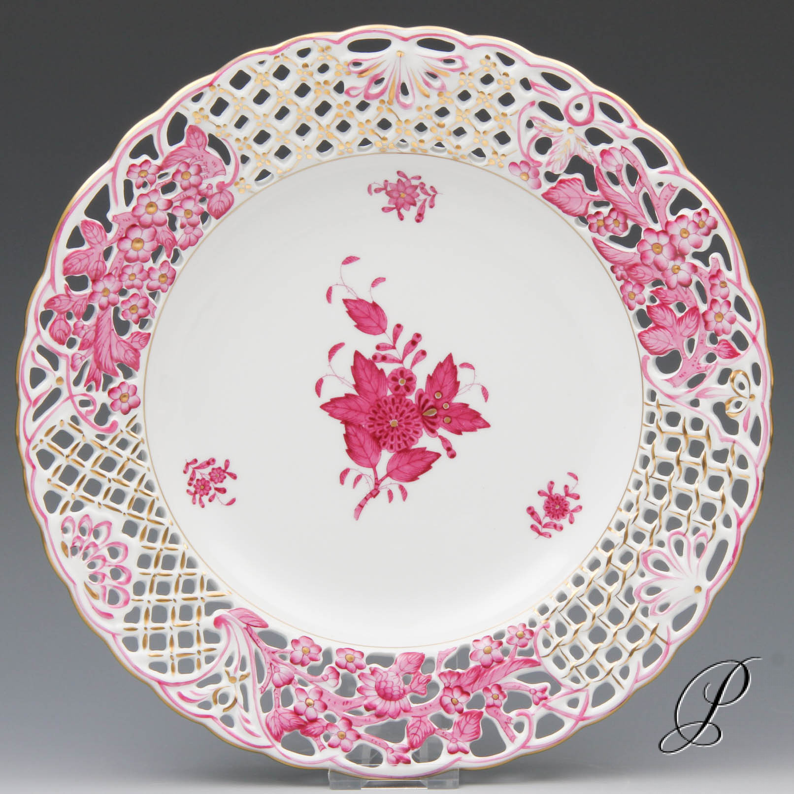 großer Durchbruchteller Herend im Dekor Apponyi purpur