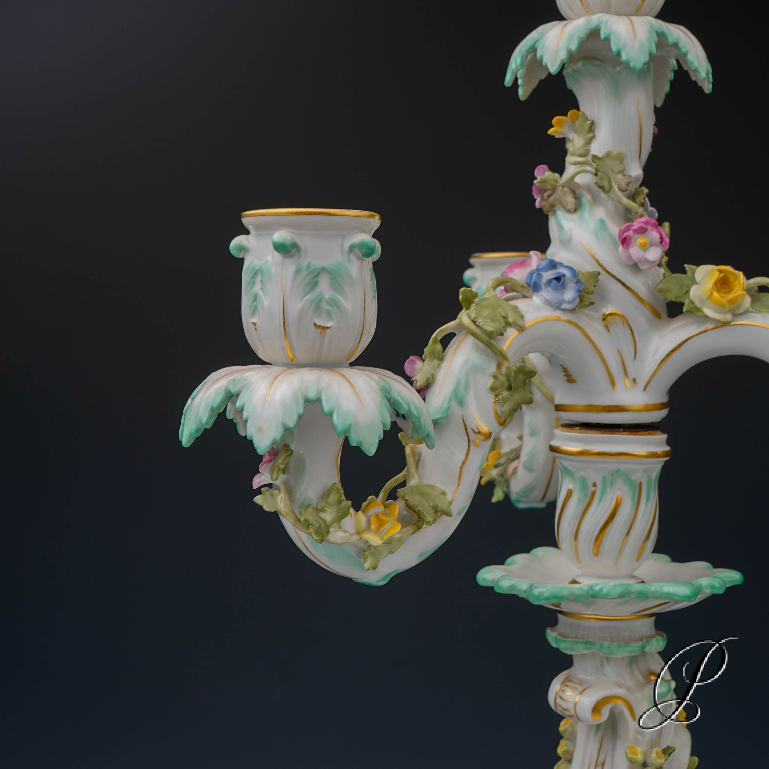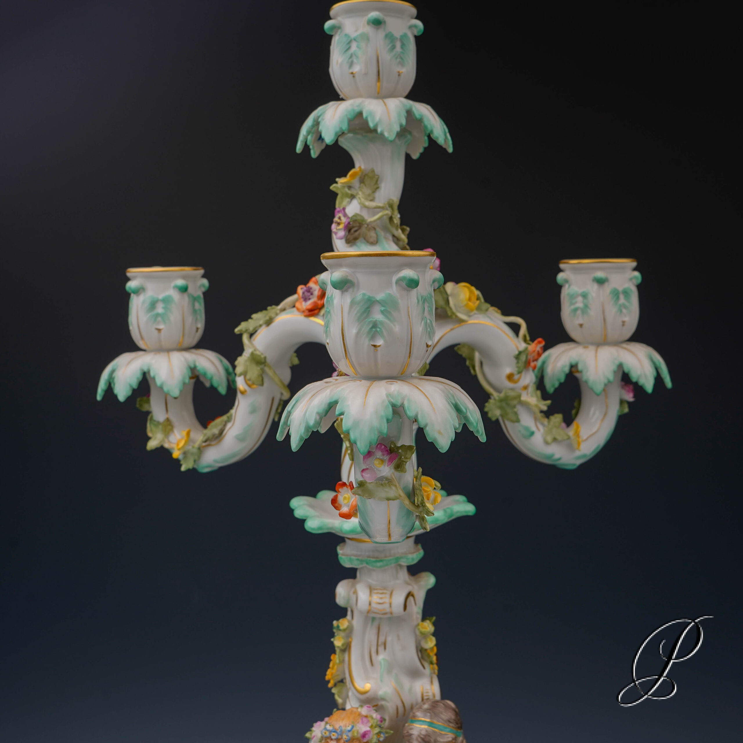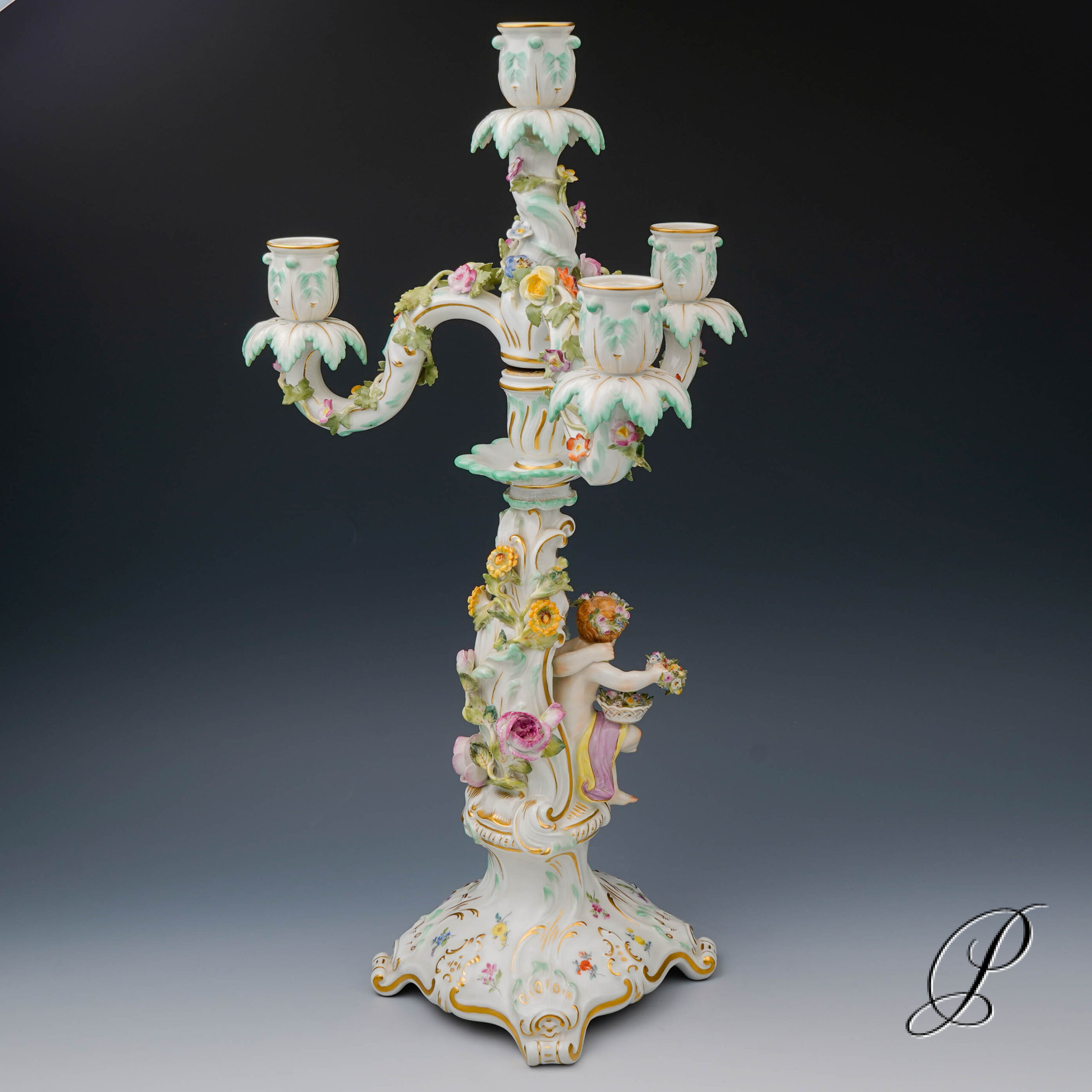 Ins Angebot kommt ein großer 4 flammiger Leuchter von Meissen.