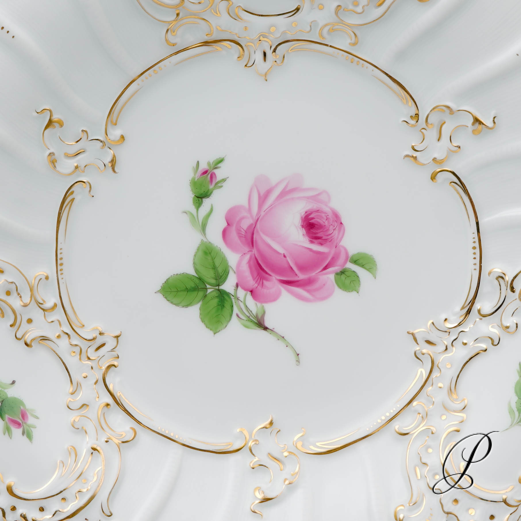 Mittig bemalt mit der roten Rose und wunderschön vergoldeten Ornamenten.