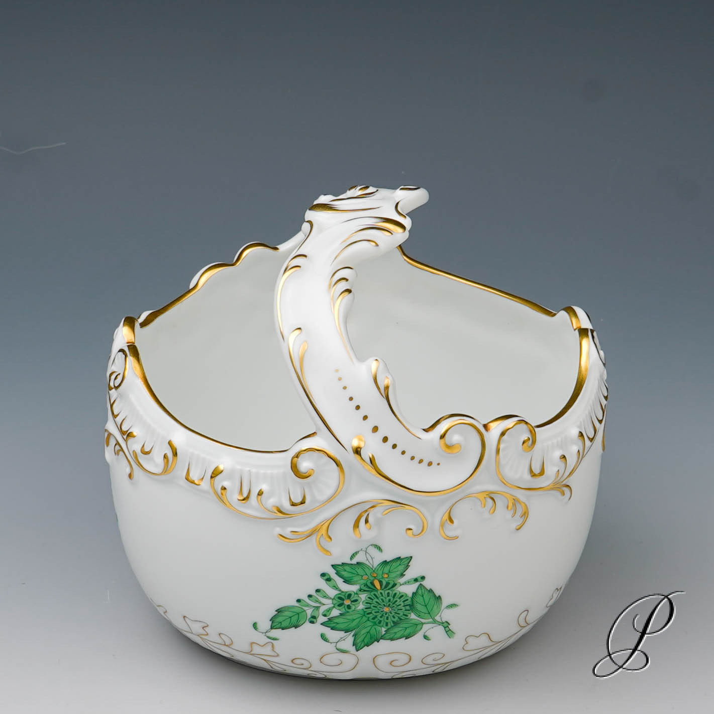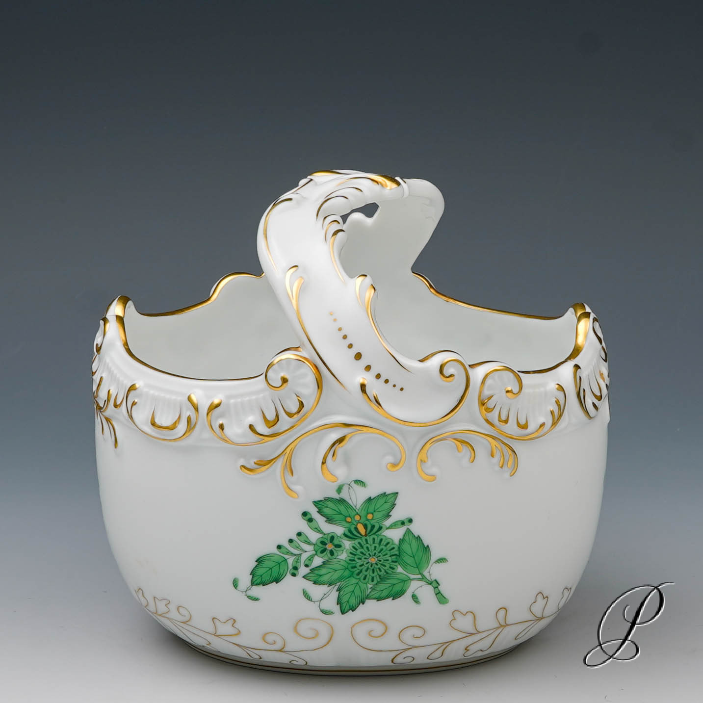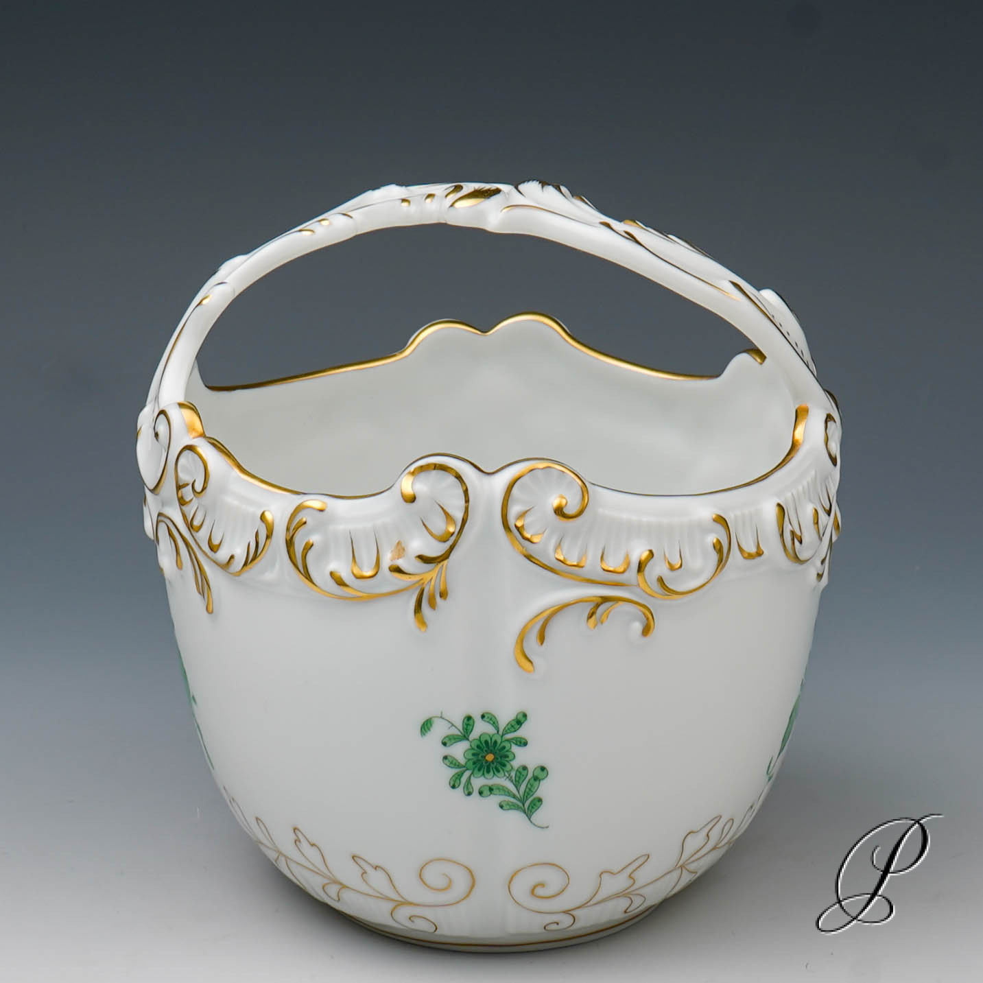 Angeboten wird ein Henkelkorb aus Herend.