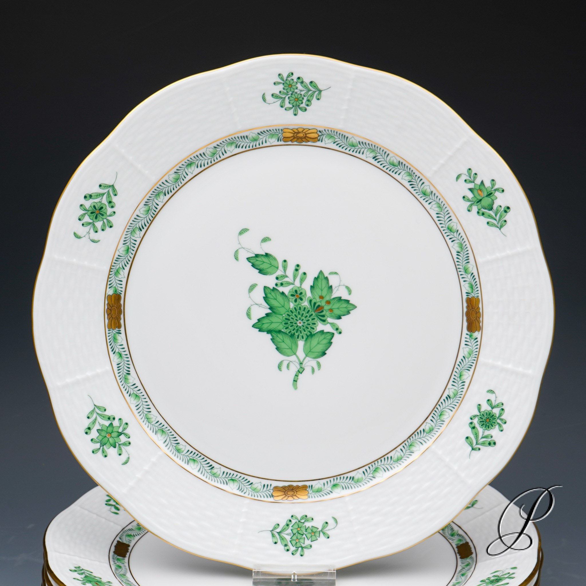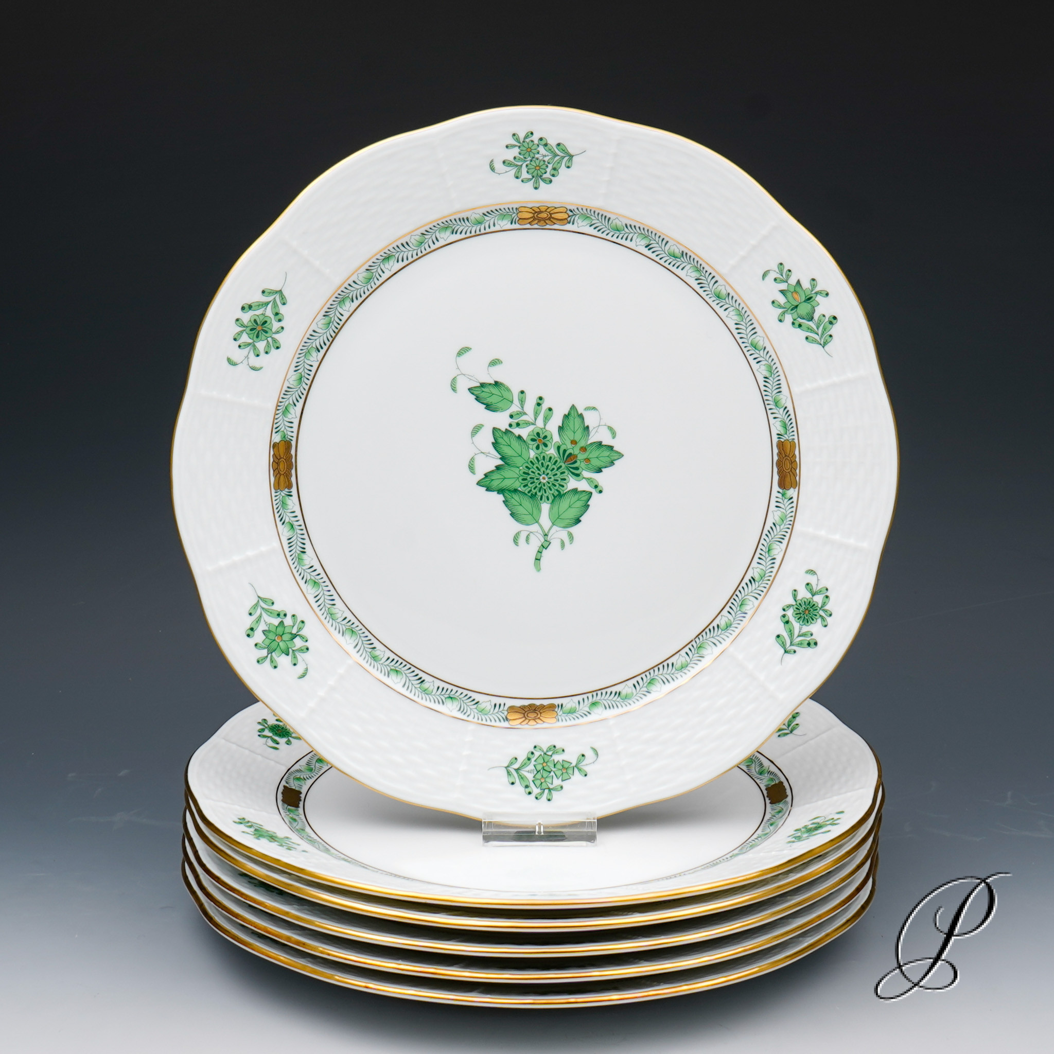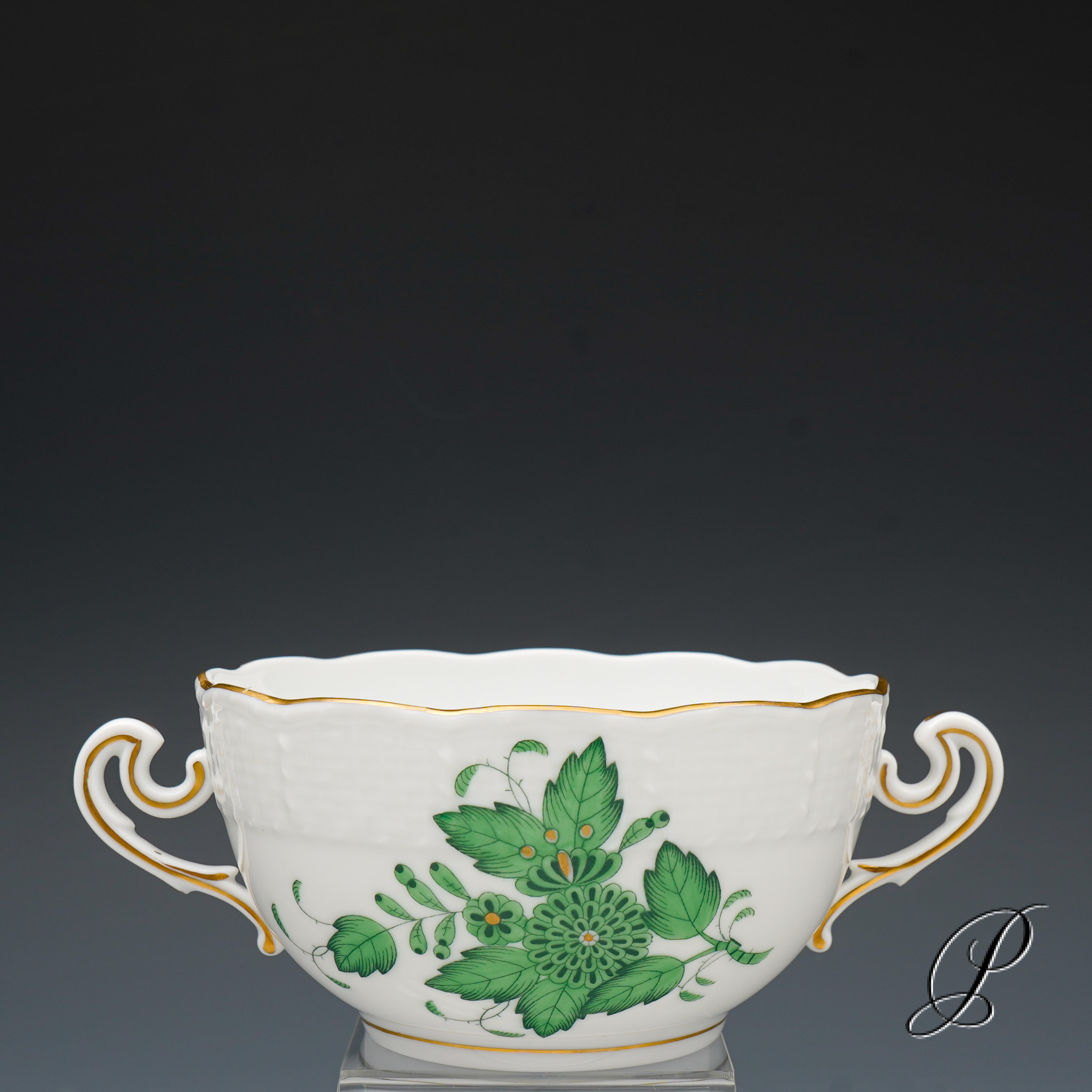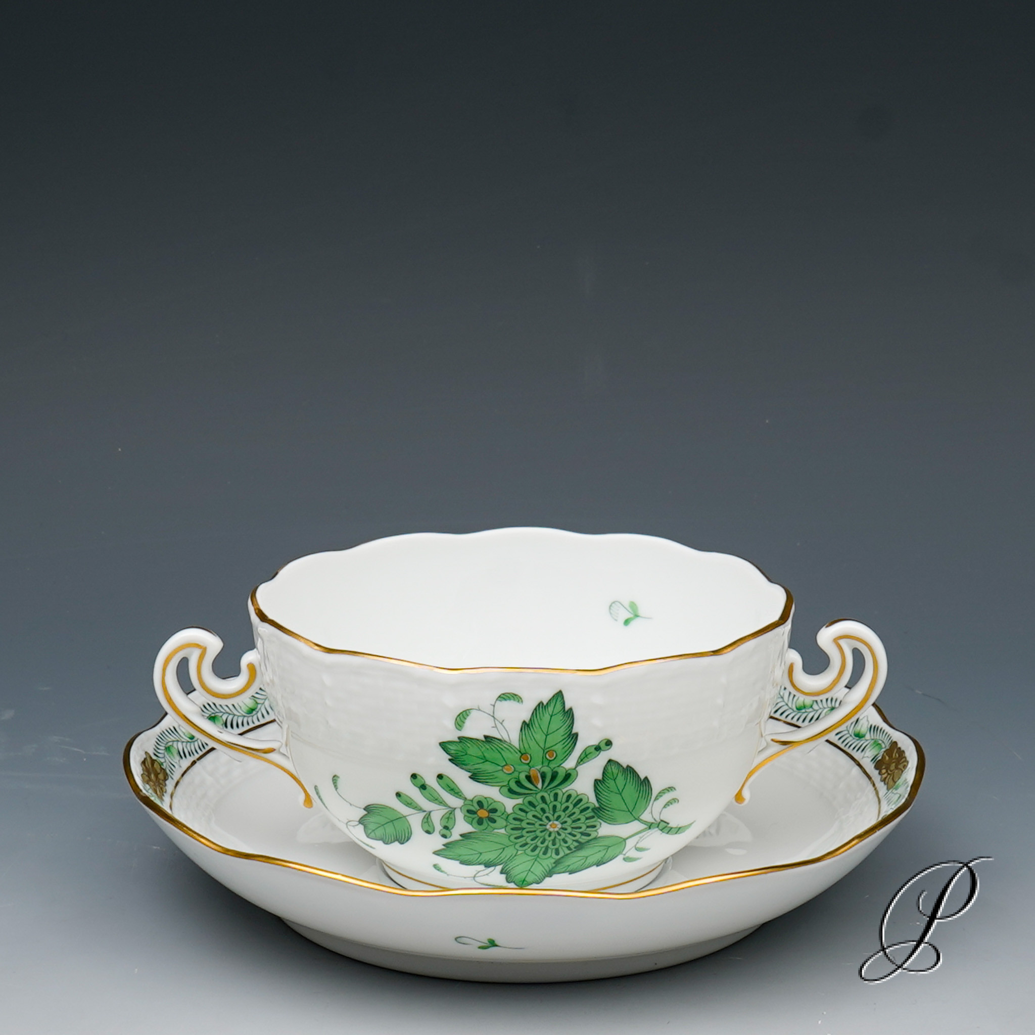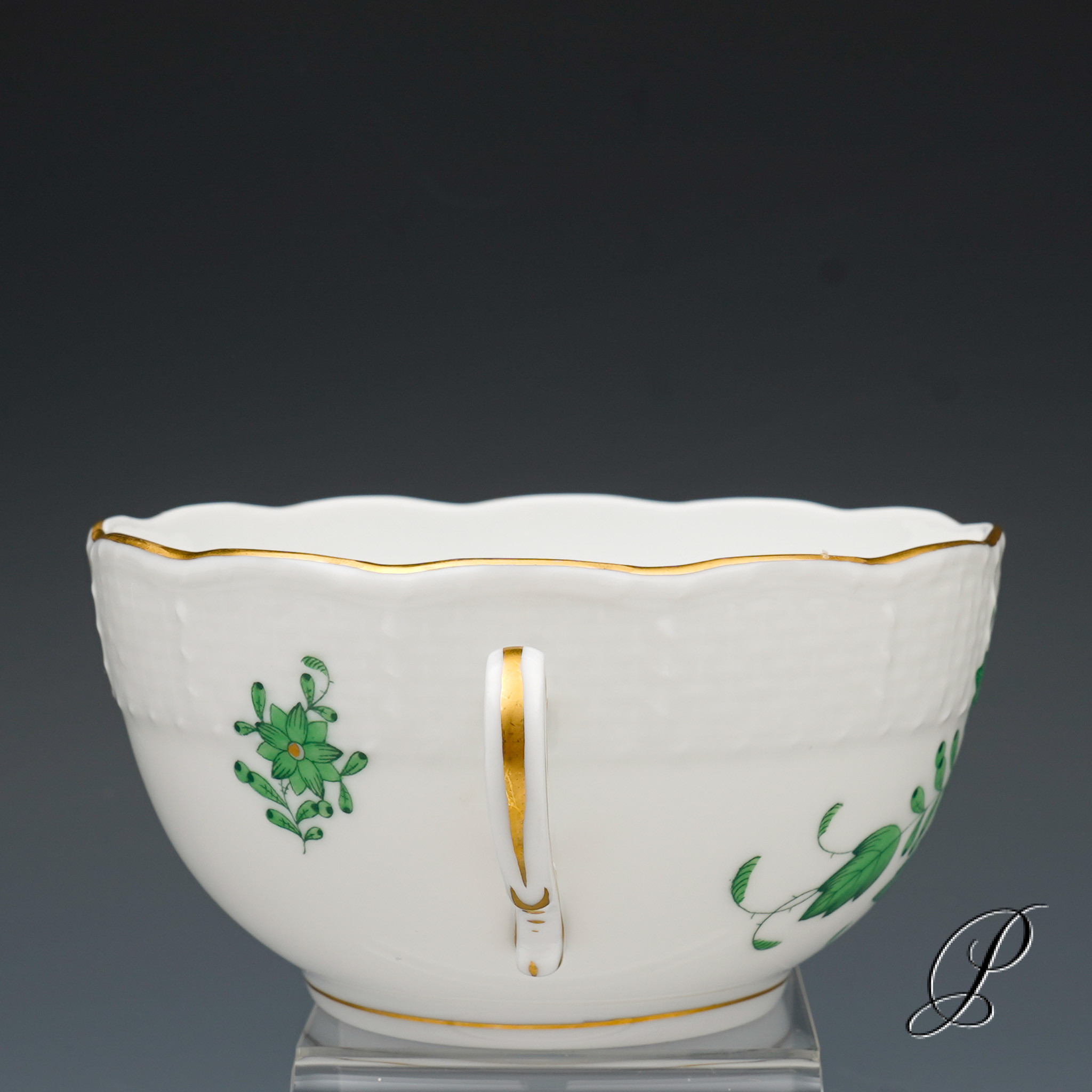 Das Dekor Apponyi gibt es in verschiedenen Farbvarianten. Der Name verbindet sich mit dem Grafen Albert Apponyi, der dieses Motiv in der Herend Manufaktur bestellte. Das Dekor wurde in Anlehnung an das fernöstliche Motiv „Indischer Blumenkorb“ entworfen. Eine stilisierte Pfingstrose in Konturmalerei welche von 6 Streumotiven und einer Girlande aus stilisierten Blättern umgeben ist.