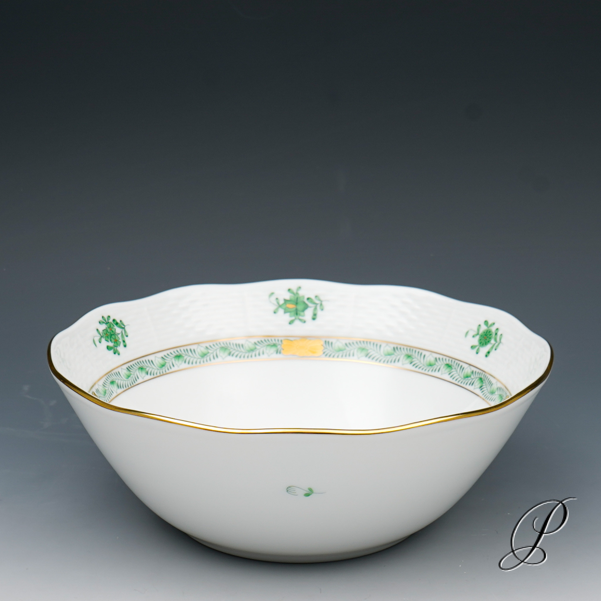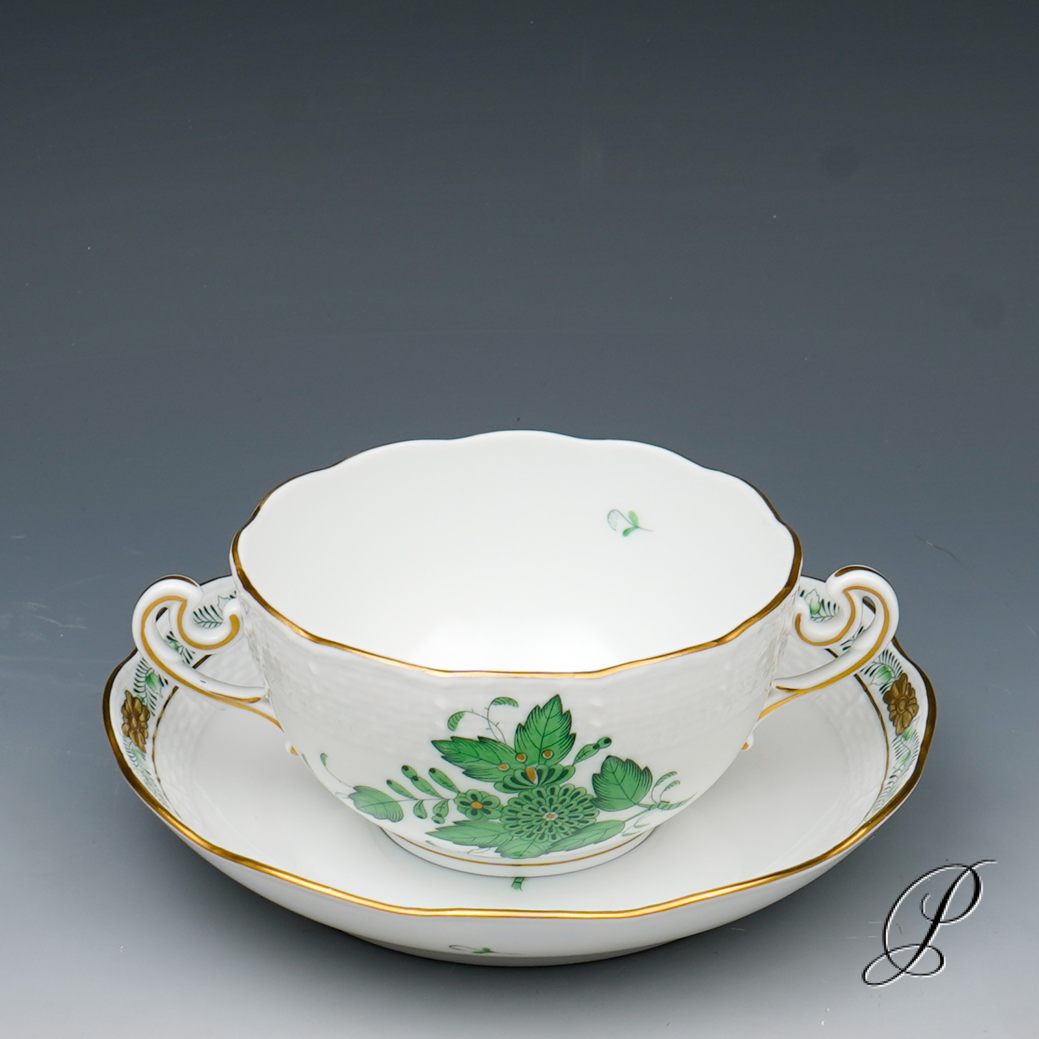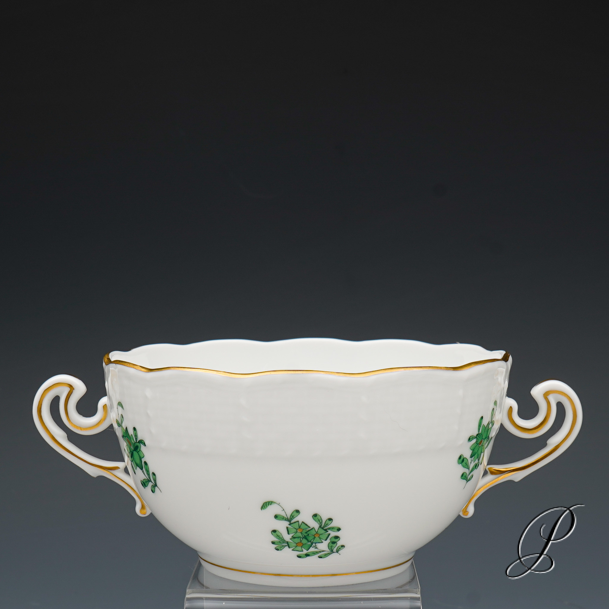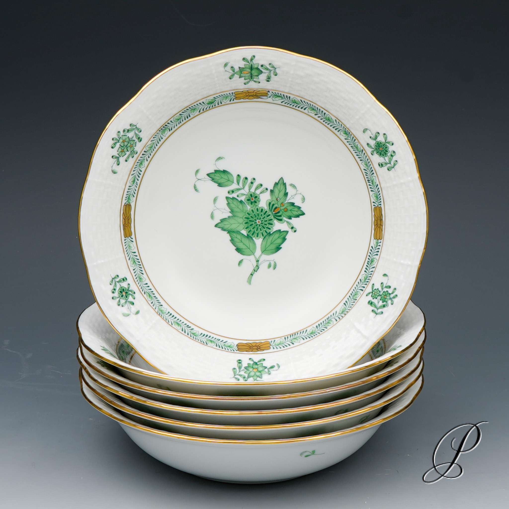 Das Dekor Apponyi gibt es in verschiedenen Farbvarianten. Der Name verbindet sich mit dem Grafen Albert Apponyi, der dieses Motiv in der Herend Manufaktur bestellte. Das Dekor wurde in Anlehnung an das fernöstliche Motiv „Indischer Blumenkorb“ entworfen. Eine stilisierte Pfingstrose in Konturmalerei welche von 6 Streumotiven und einer Girlande aus stilisierten Blättern umgeben ist.