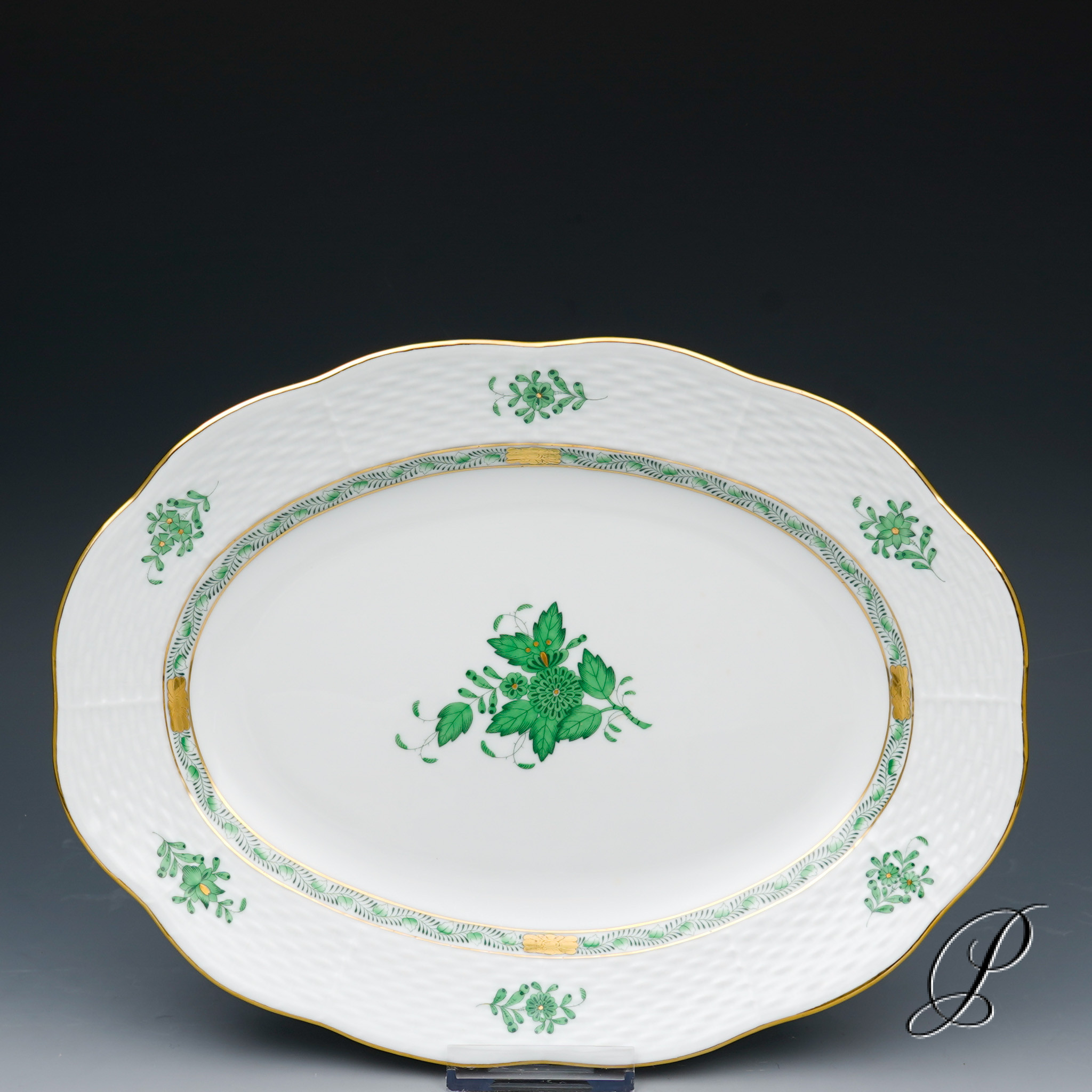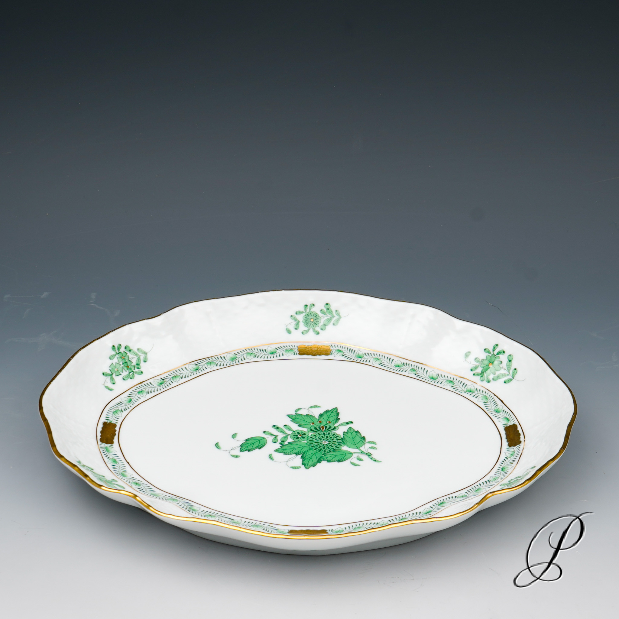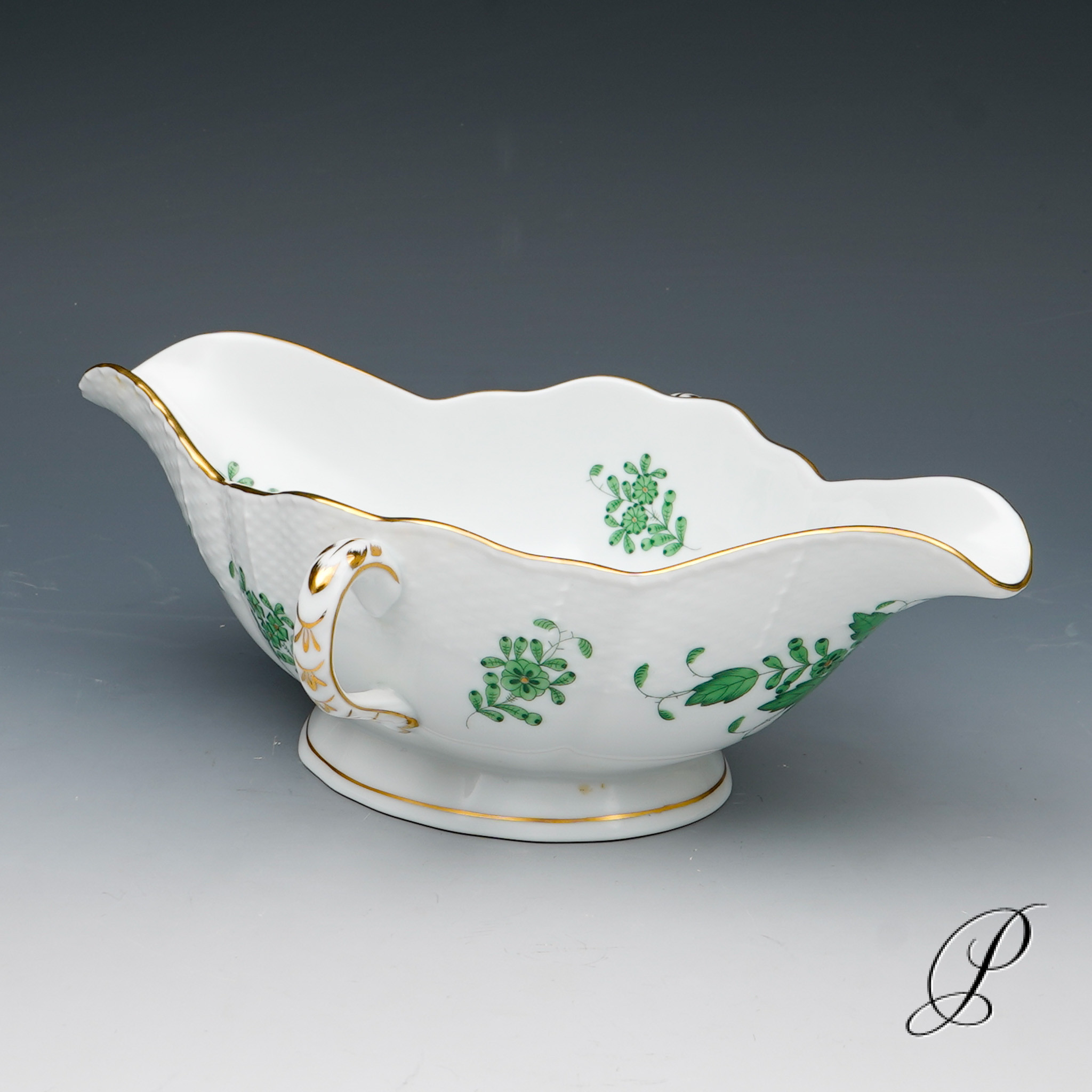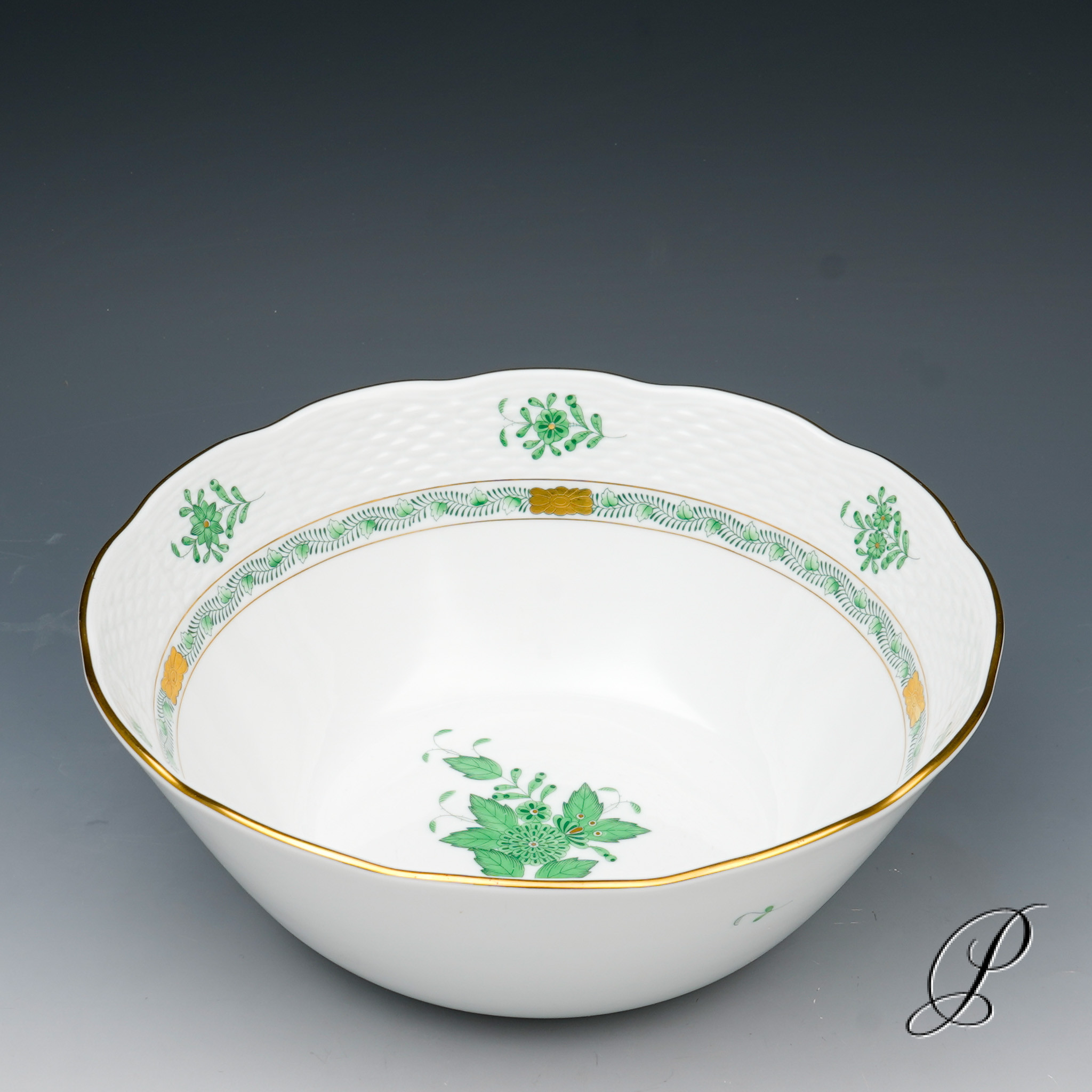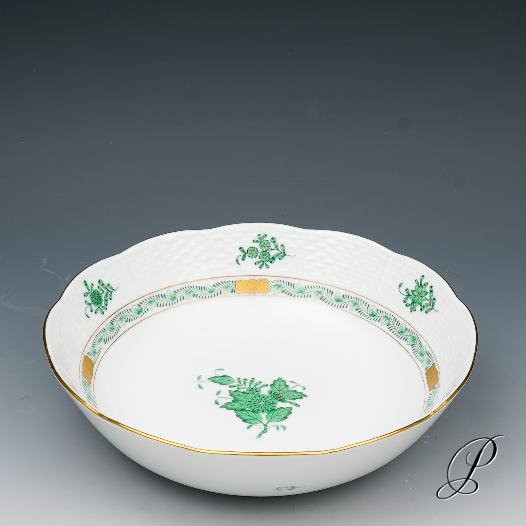 Das Dekor Apponyi gibt es in verschiedenen Farbvarianten. Der Name verbindet sich mit dem Grafen Albert Apponyi, der dieses Motiv in der Herend Manufaktur bestellte. Das Dekor wurde in Anlehnung an das fernöstliche Motiv „Indischer Blumenkorb“ entworfen. Eine stilisierte Pfingstrose in Konturmalerei welche von 6 Streumotiven und einer Girlande aus stilisierten Blättern umgeben ist.