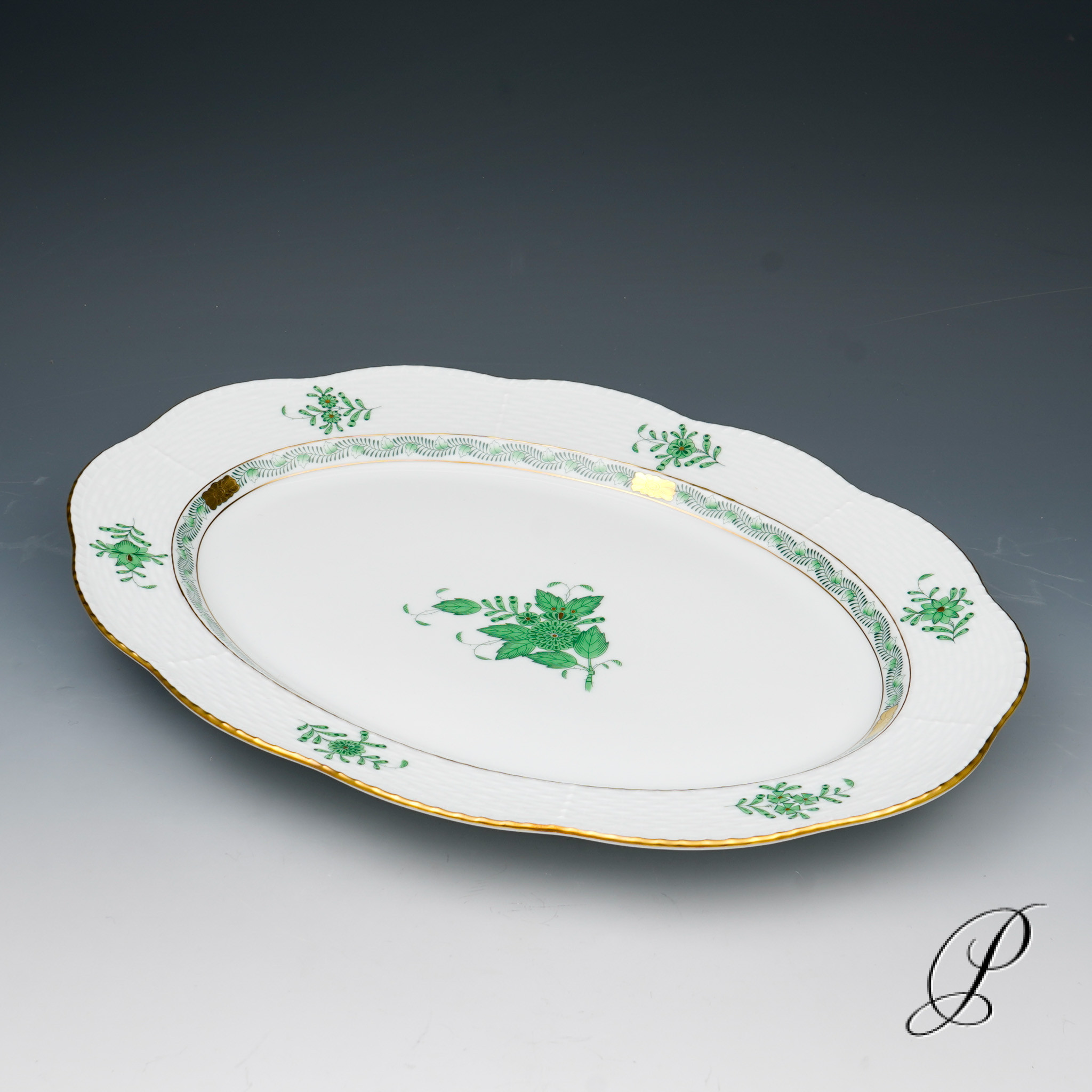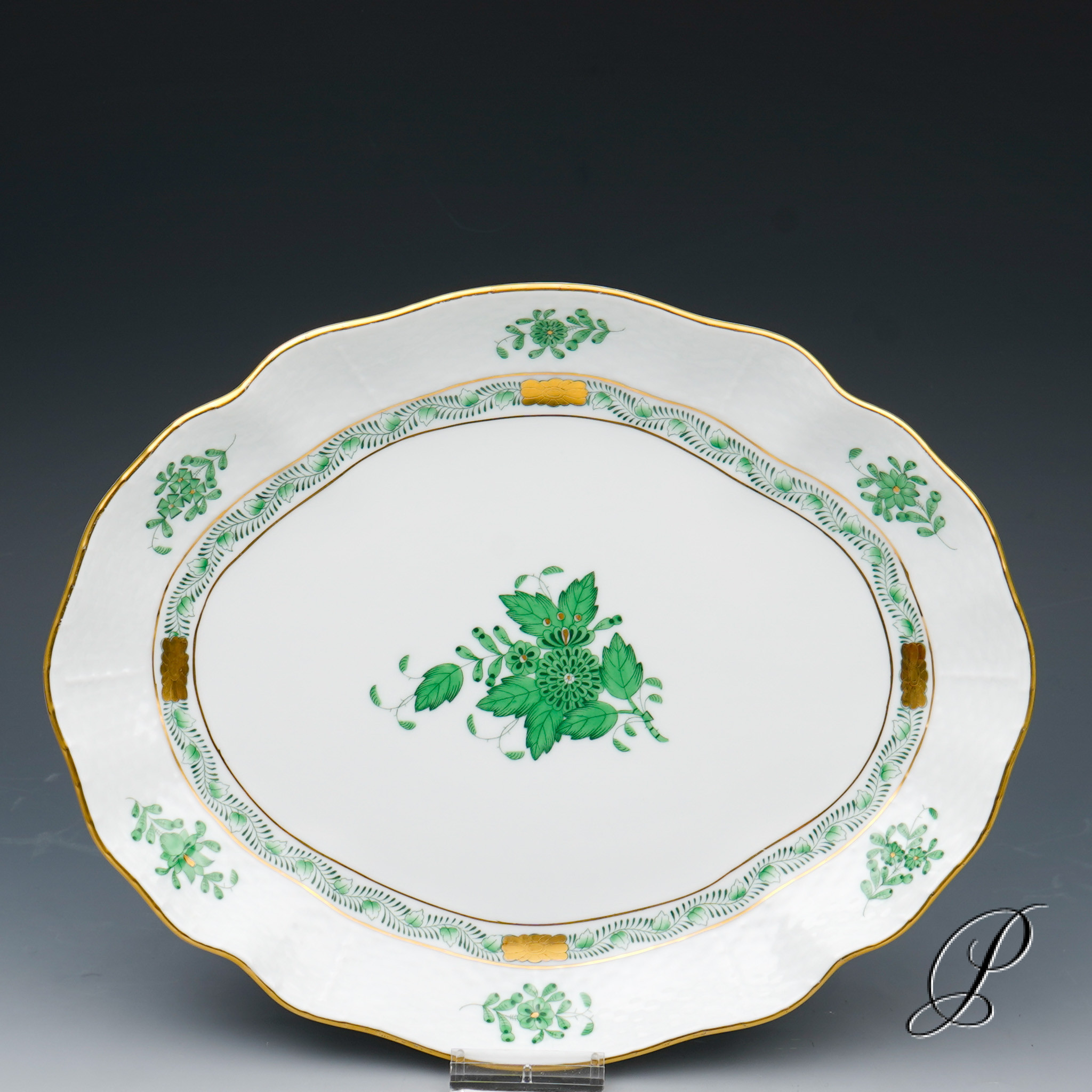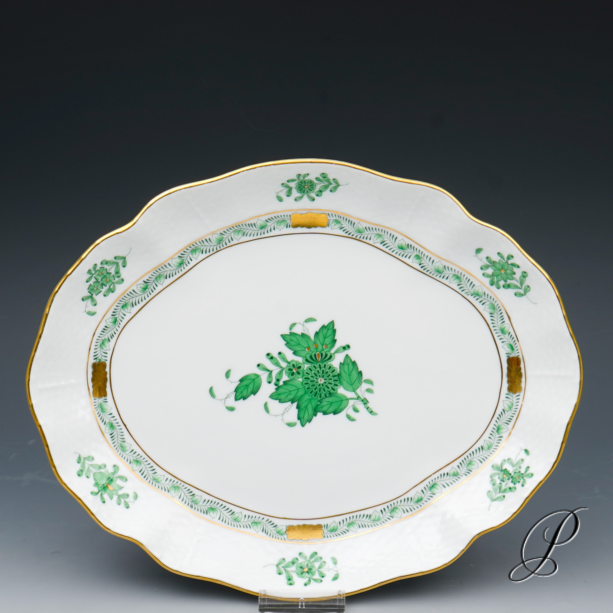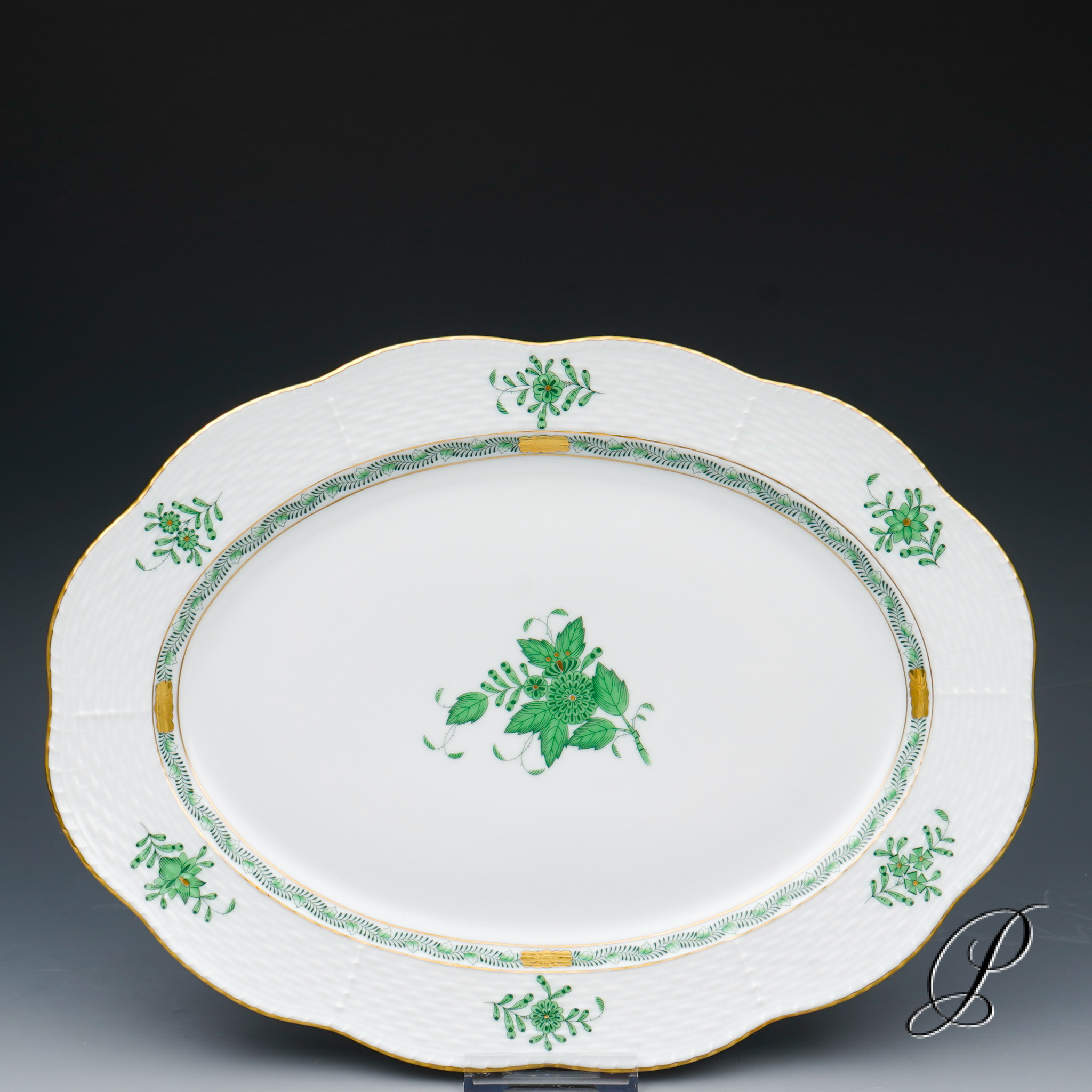 Das Dekor Apponyi gibt es in verschiedenen Farbvarianten. Der Name verbindet sich mit dem Grafen Albert Apponyi, der dieses Motiv in der Herend Manufaktur bestellte. Das Dekor wurde in Anlehnung an das fernöstliche Motiv „Indischer Blumenkorb“ entworfen. Eine stilisierte Pfingstrose in Konturmalerei welche von 6 Streumotiven und einer Girlande aus stilisierten Blättern umgeben ist.