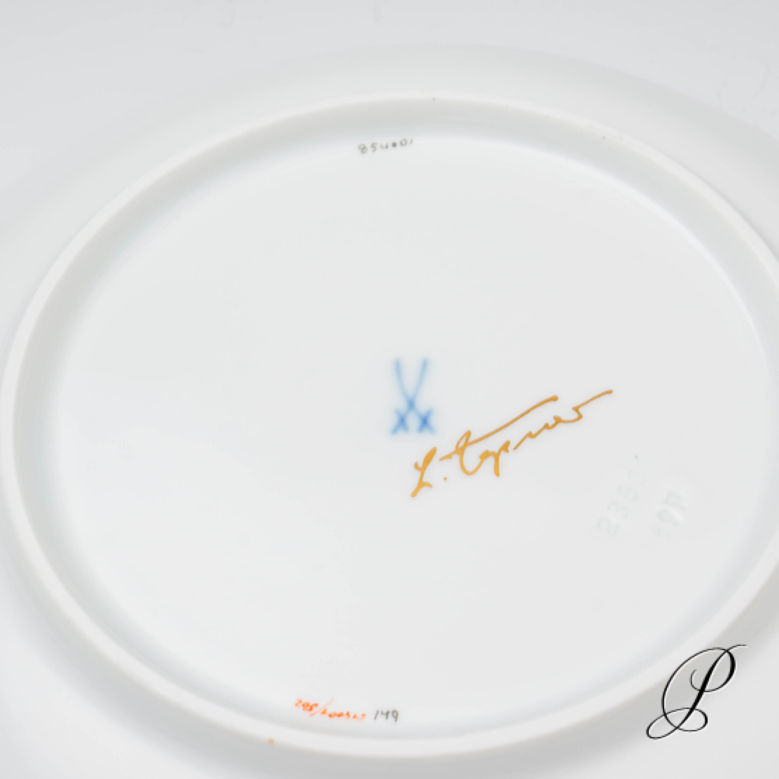 Unterglasurblaue Schwertmarken Meissen 1.Wahl. Untertasse mit einem Schleifstrich unter der Marke.