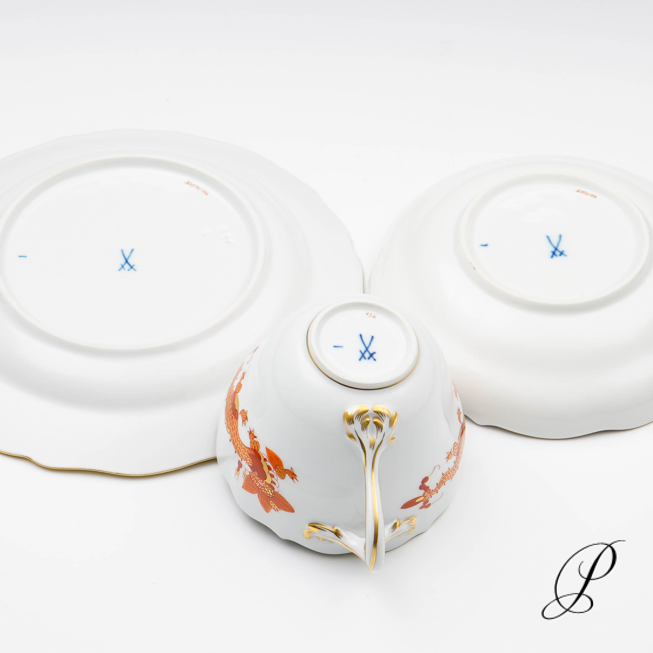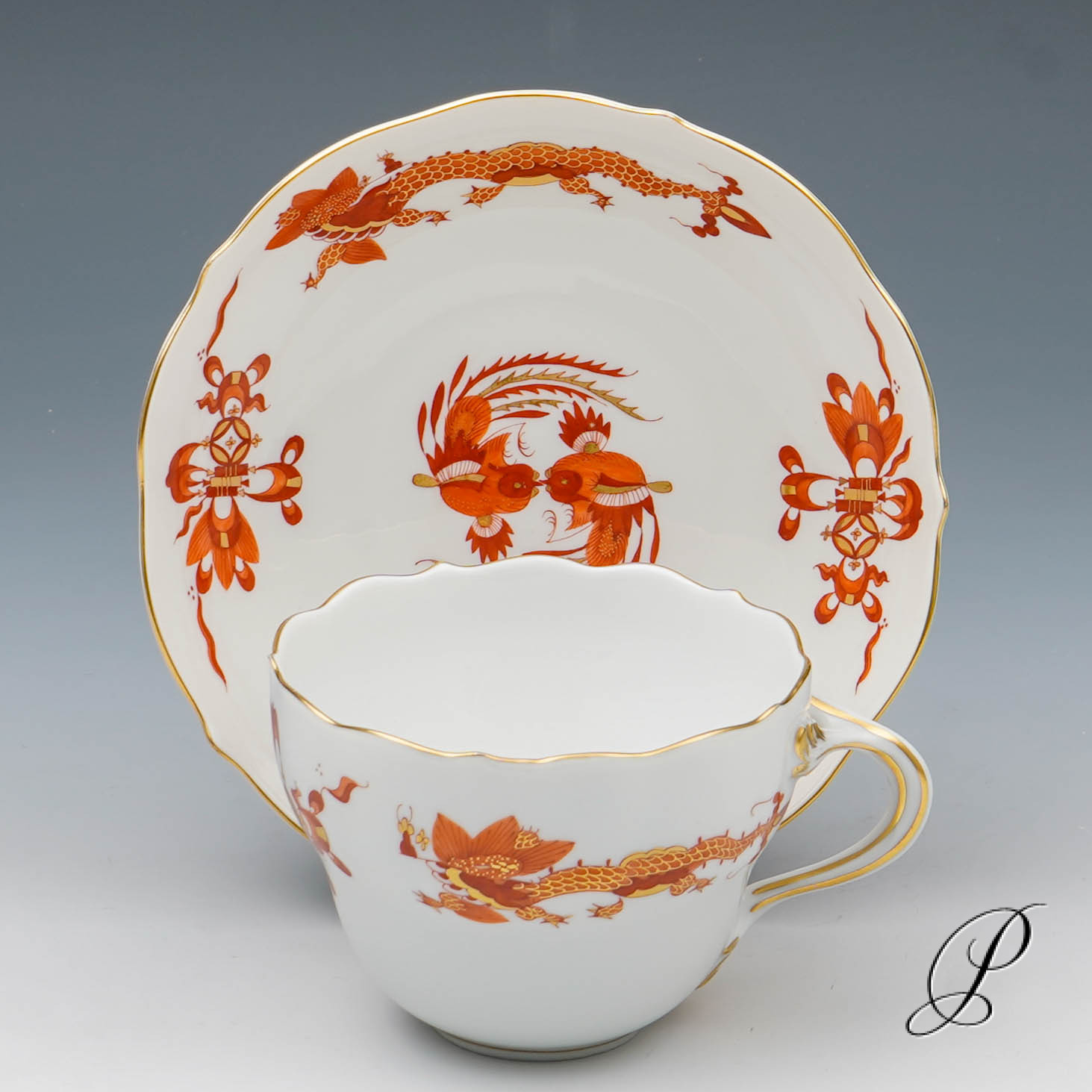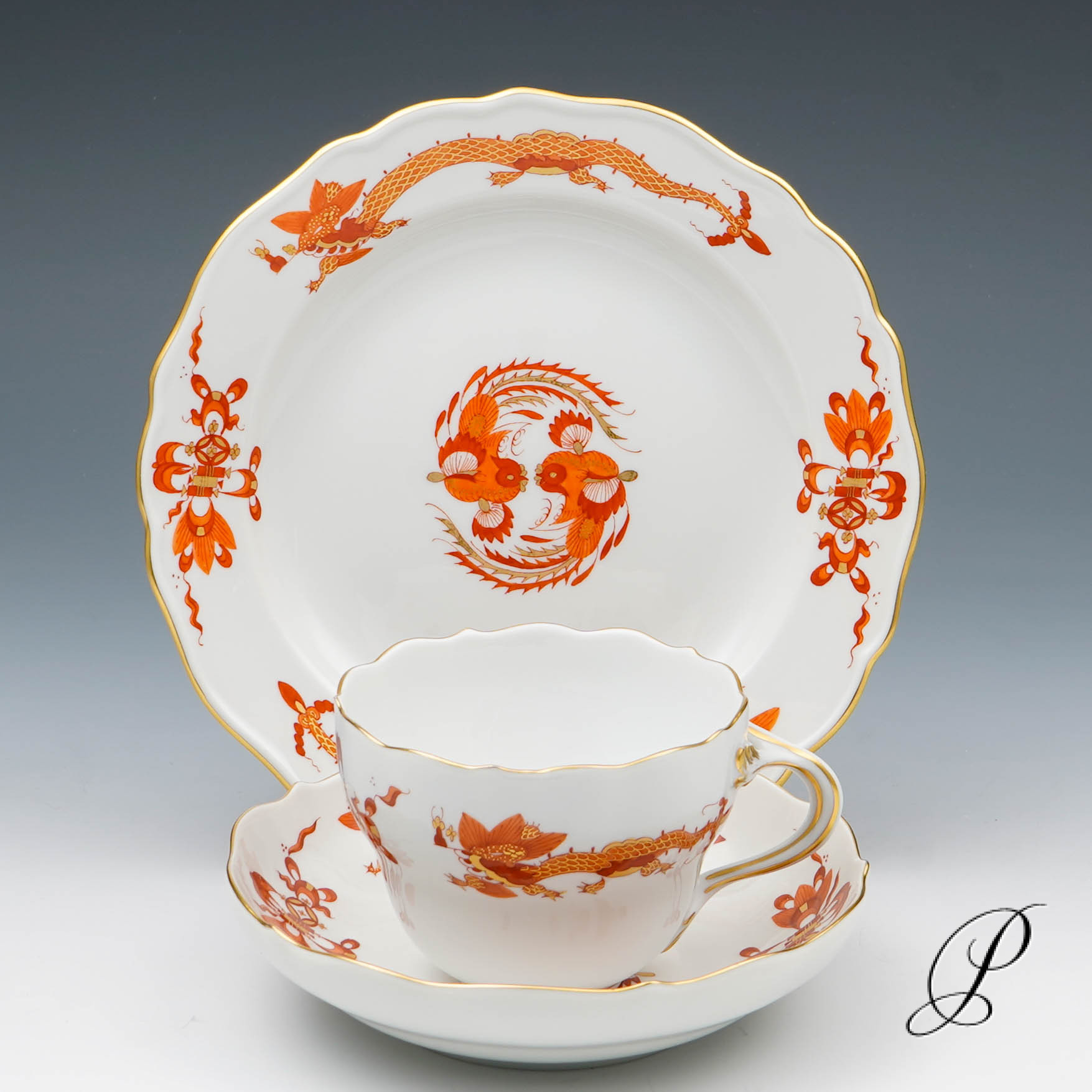 Dekor: Reicher Drache rot, goldschattiert mit Goldrand.
