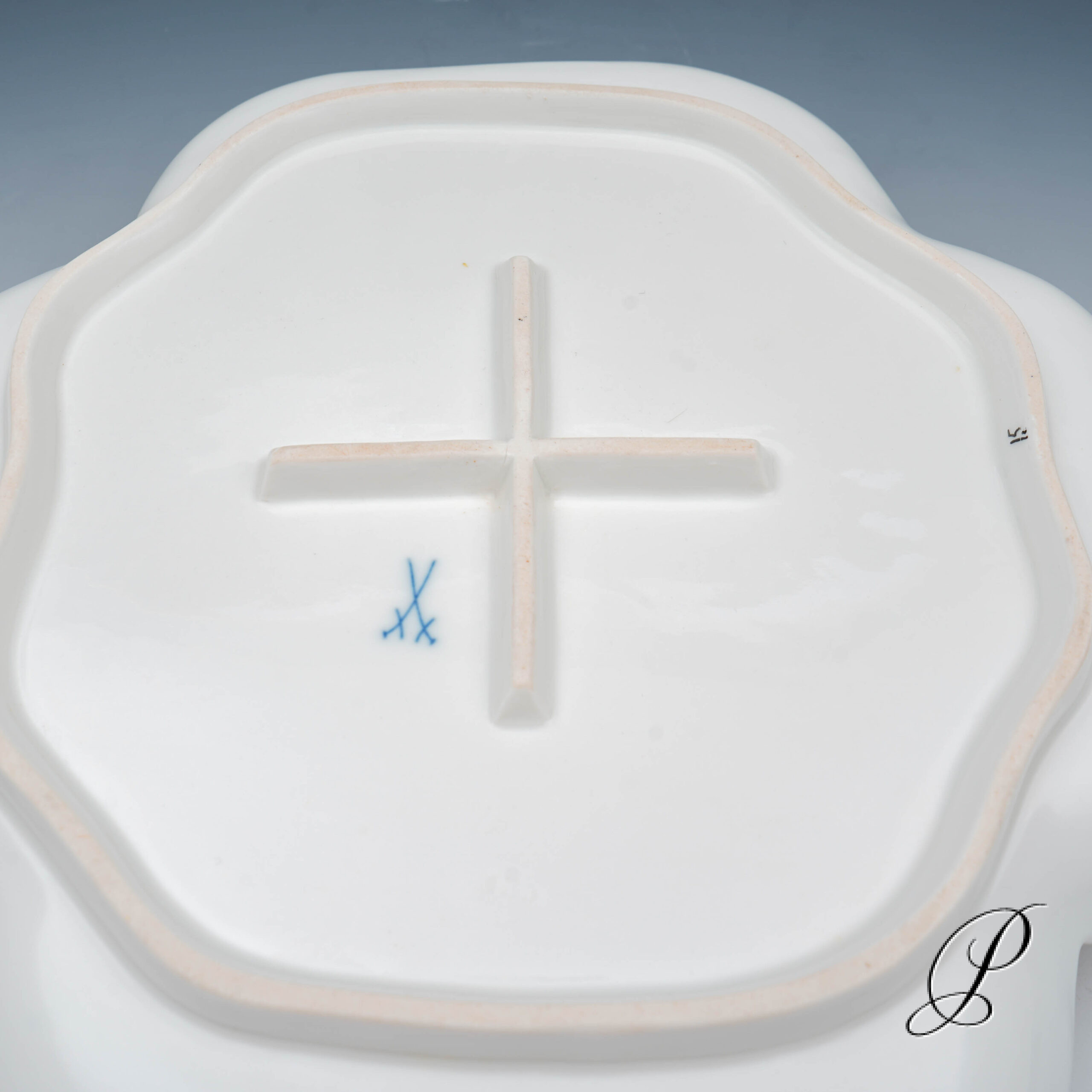 Unterglasurblaue Schwertmarke ohne Schleifstriche.