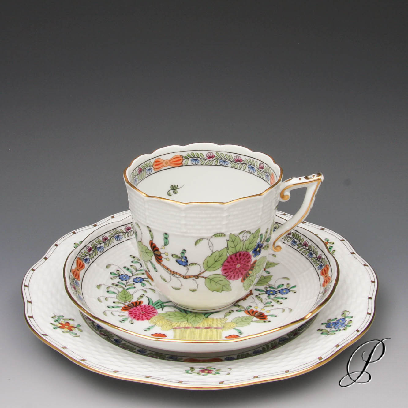 Angeboten wird ein Kaffeegedeck aus Herend Porzellan.