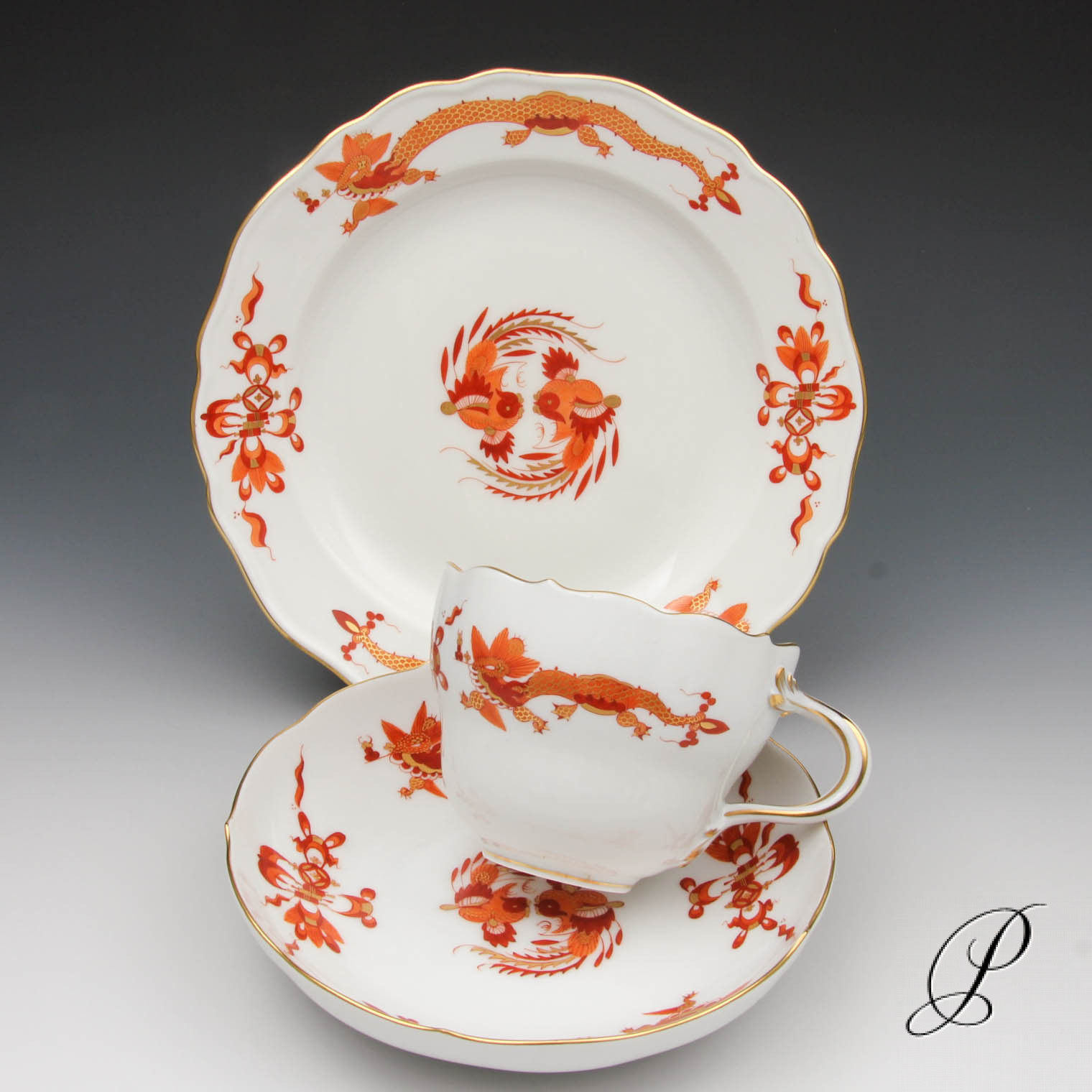 Reicher Drache rot,Königlicher Hofdrache, Kaffeegedeck Meissen,