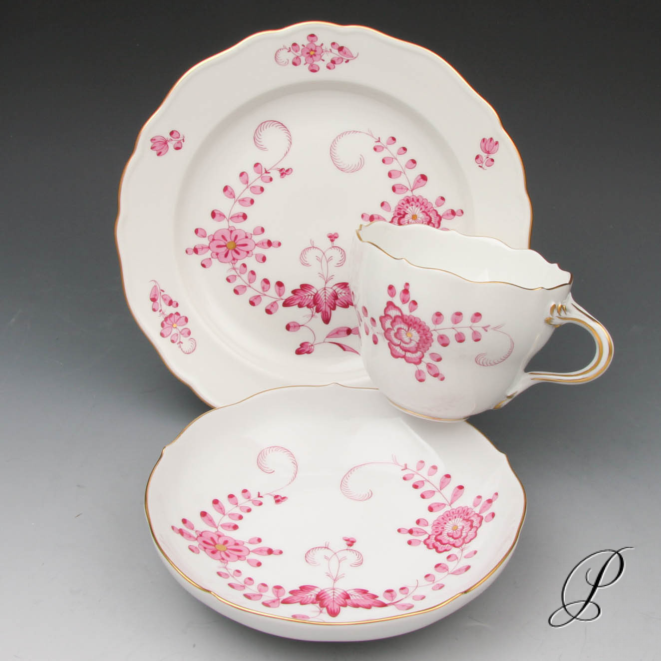 Dekor: Indische Malerei1, ohne Kante, purpur, Goldpunkte und Goldrand. Aktuelle Dekornummer 309410
